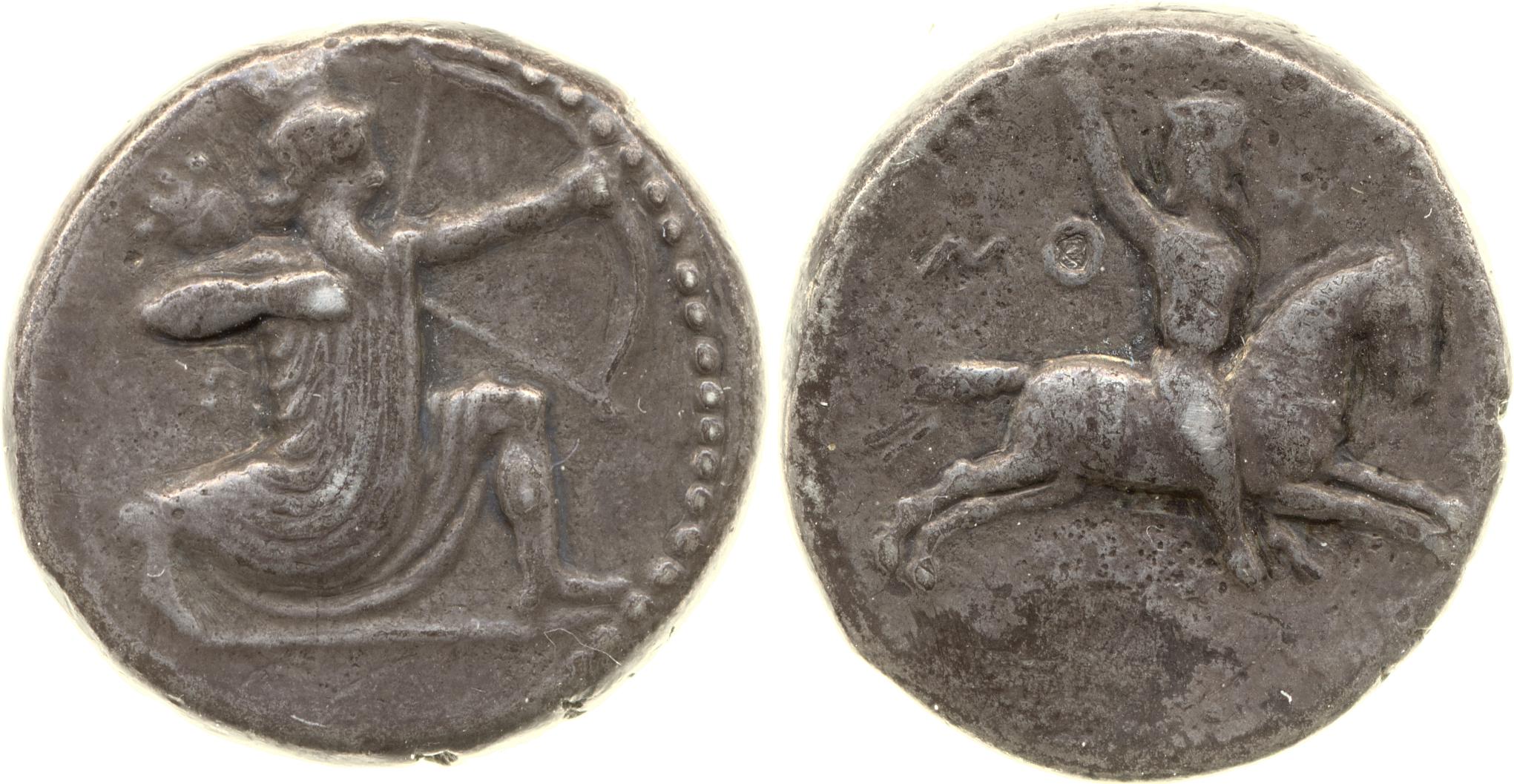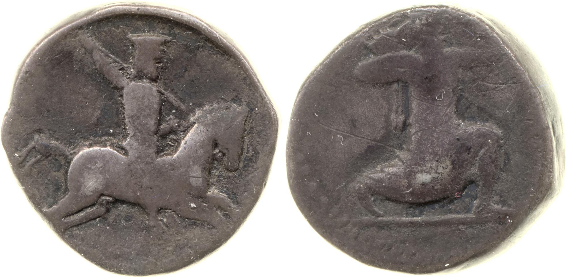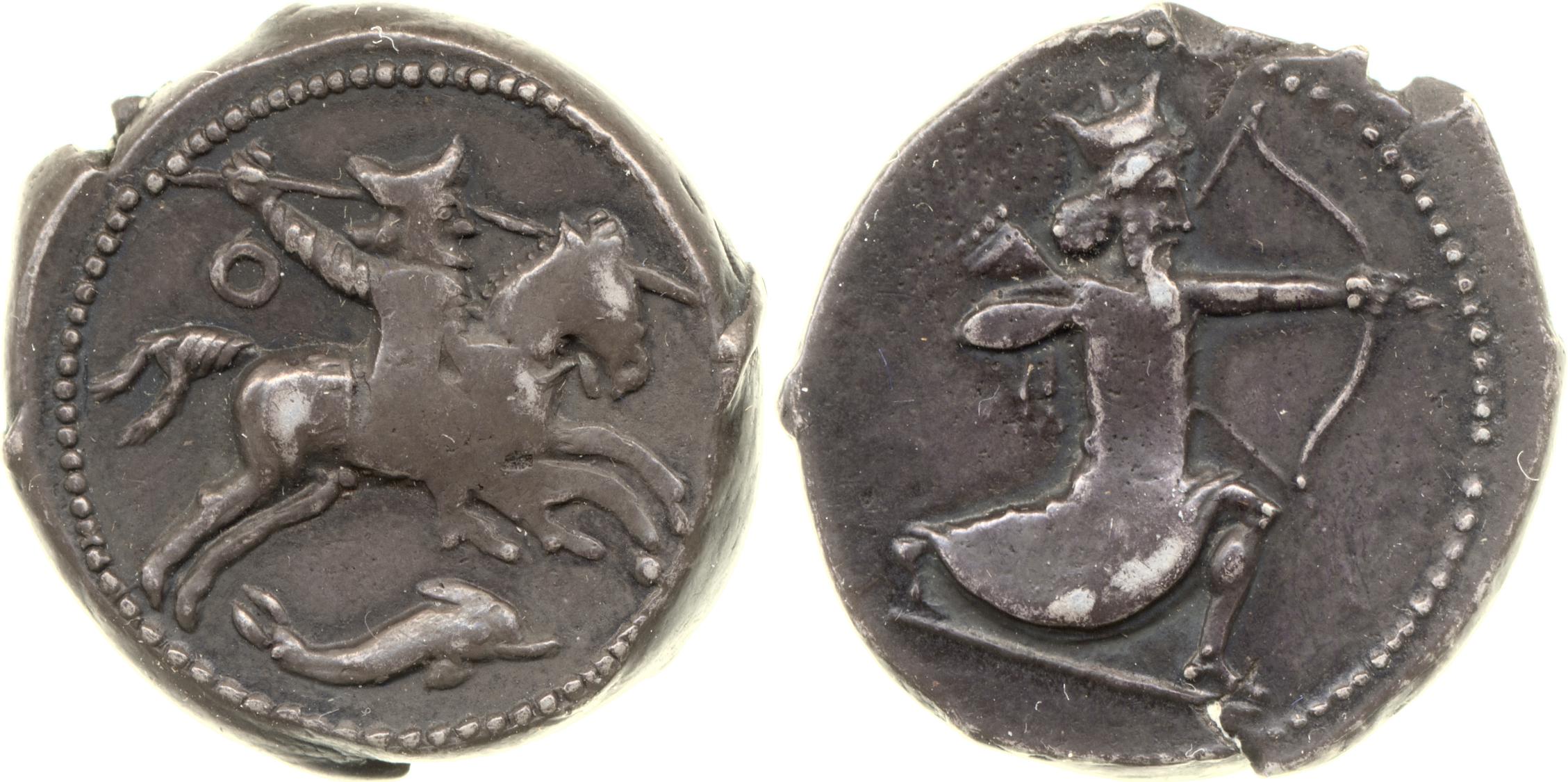 Horseman wearing a satrapal cap and a tunic brandishing a spear -[en]