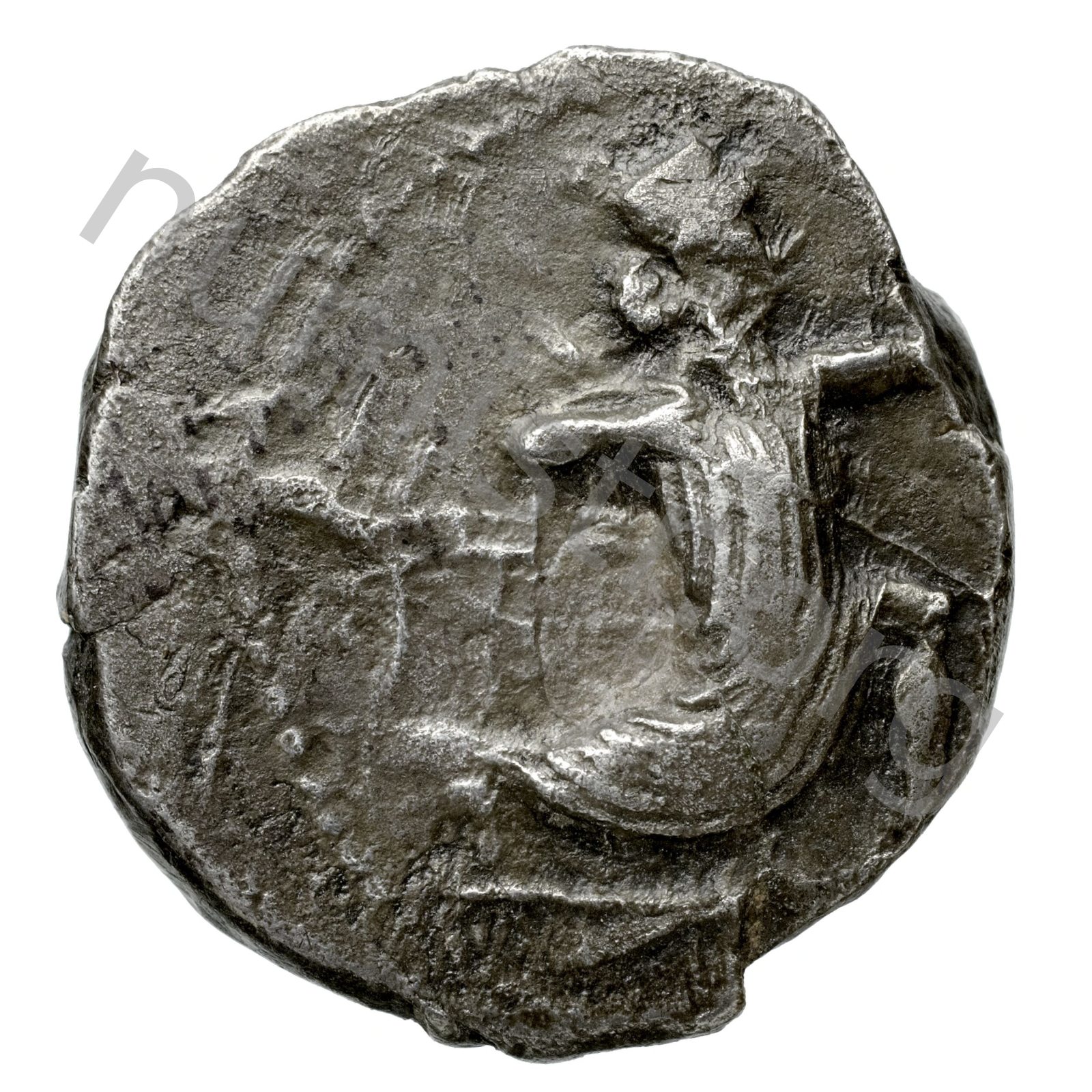 Persian Great king kneeling wearing Persian kydaris (serrated crown) and Persian kandys (Persian tunic) bending a bow -[en]