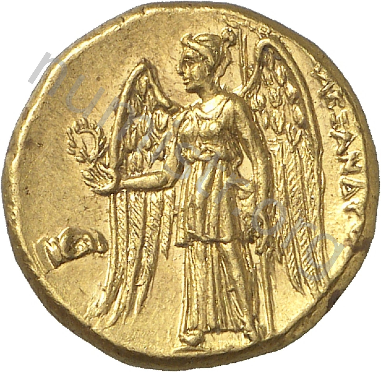 Nike standing left holding wreath in right hand and stylis in her left hand -[en]