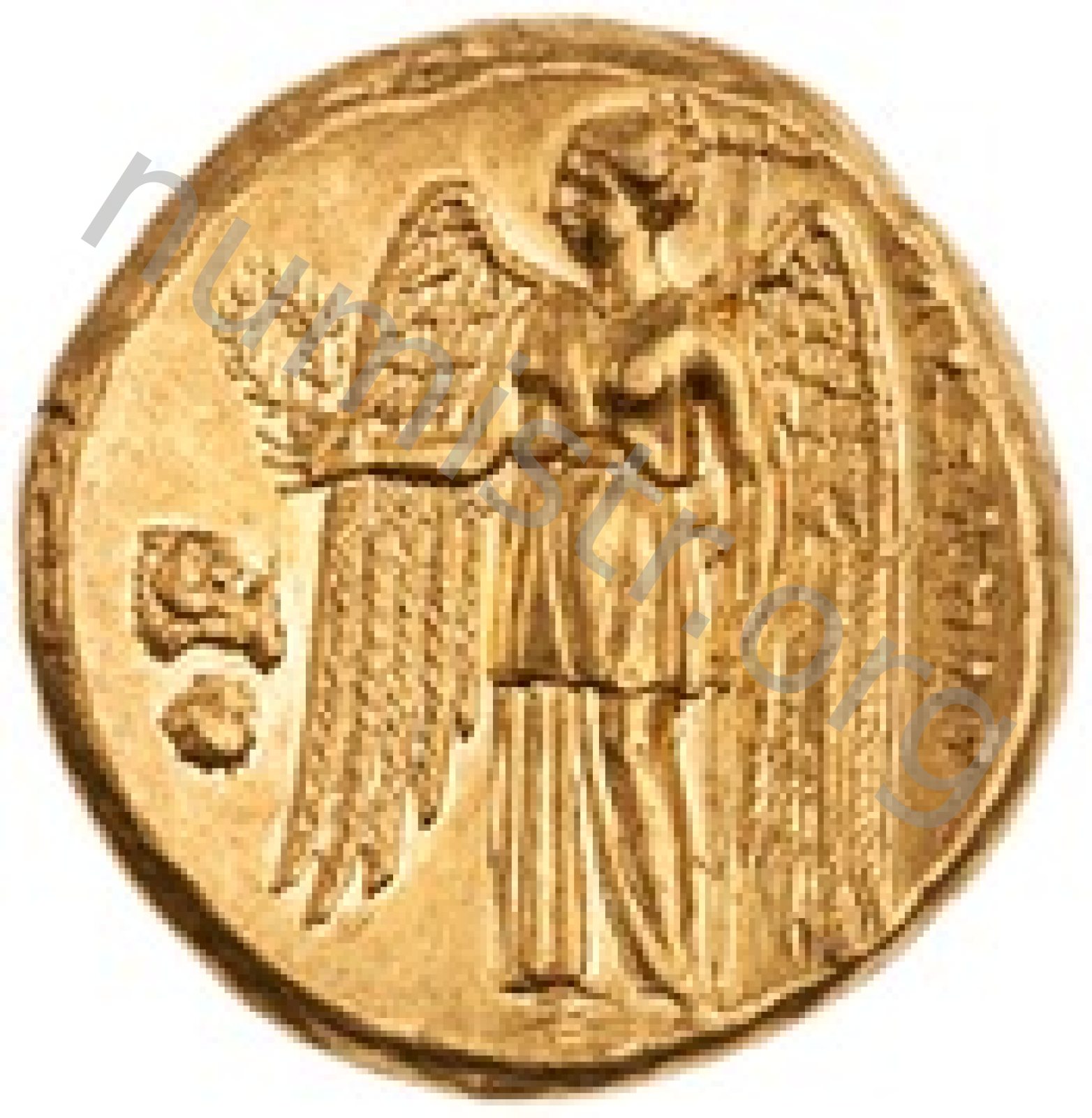 Nike standing left holding wreath in right hand and stylis in her left hand -[en]