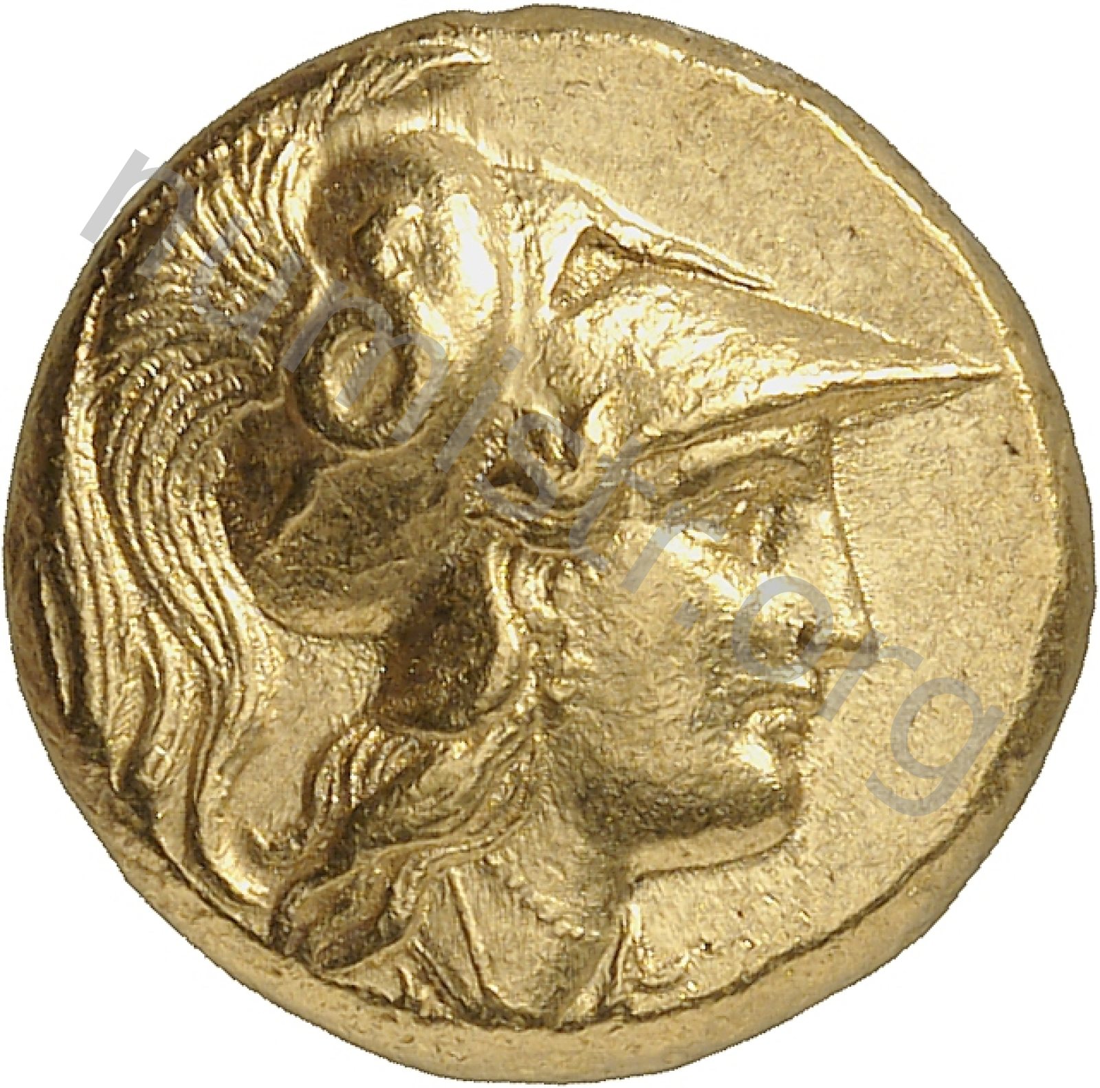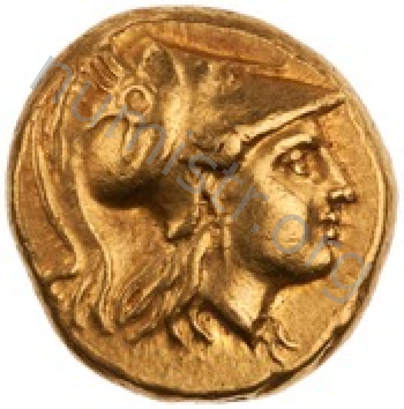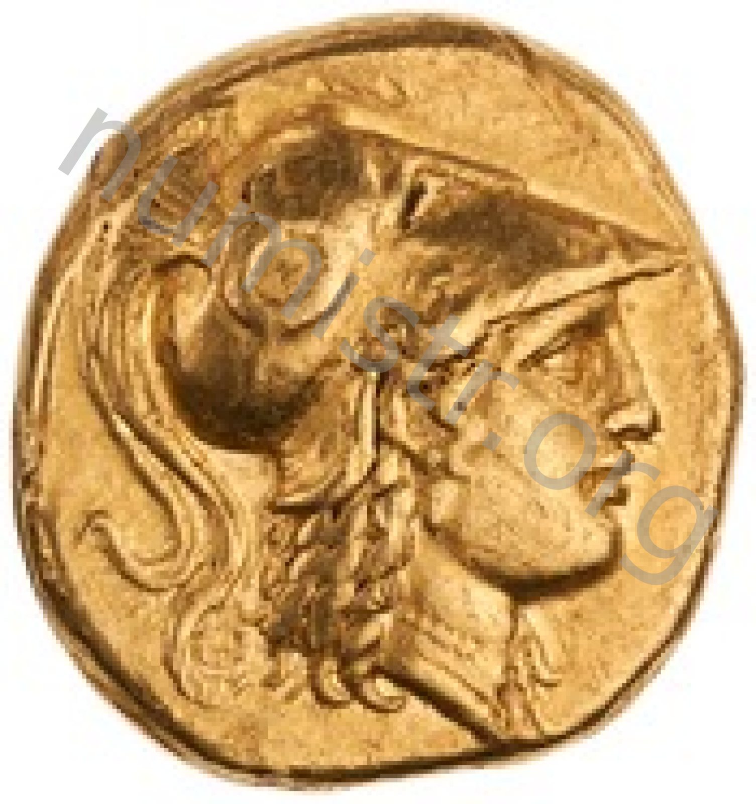 Sağda armalı Korint miğferi takan Athena başı