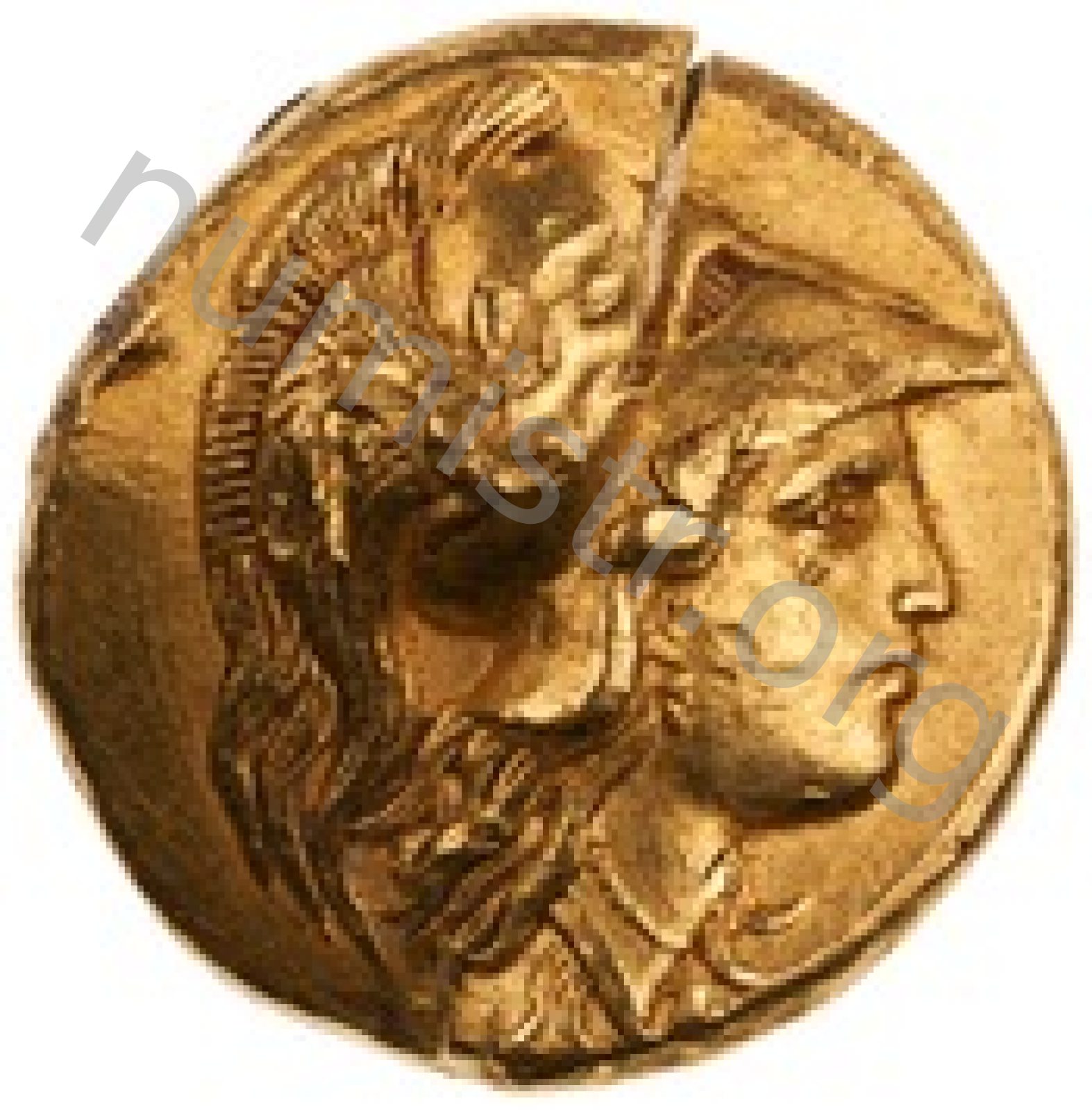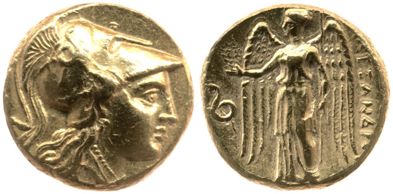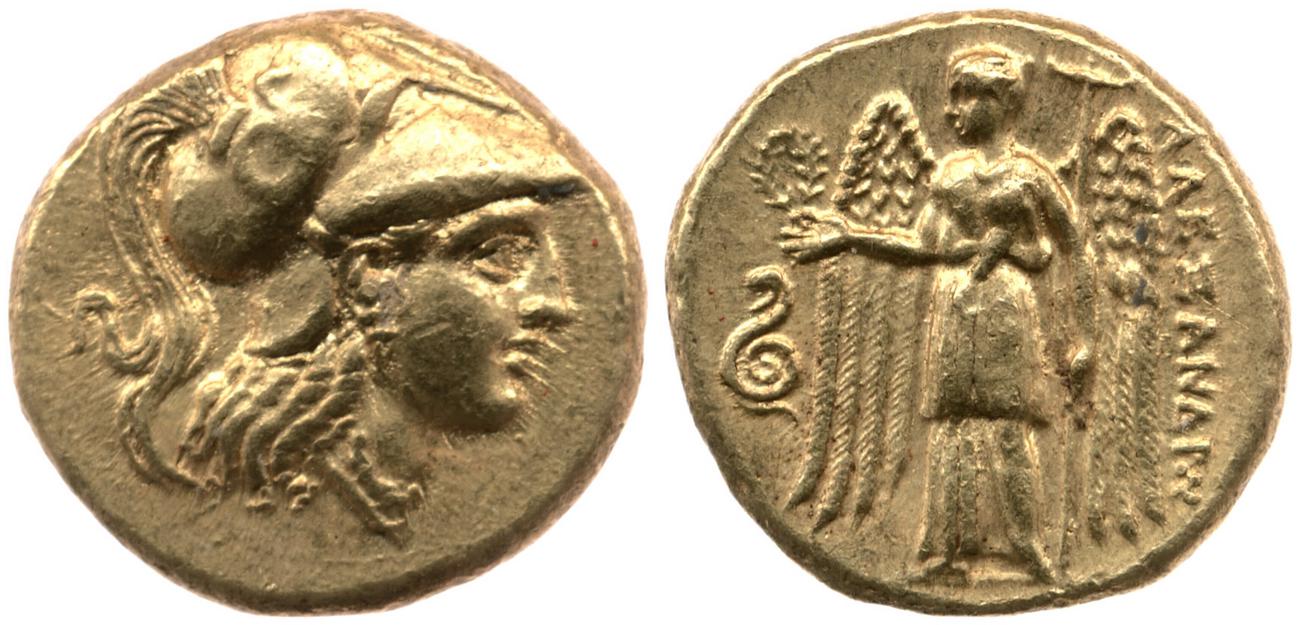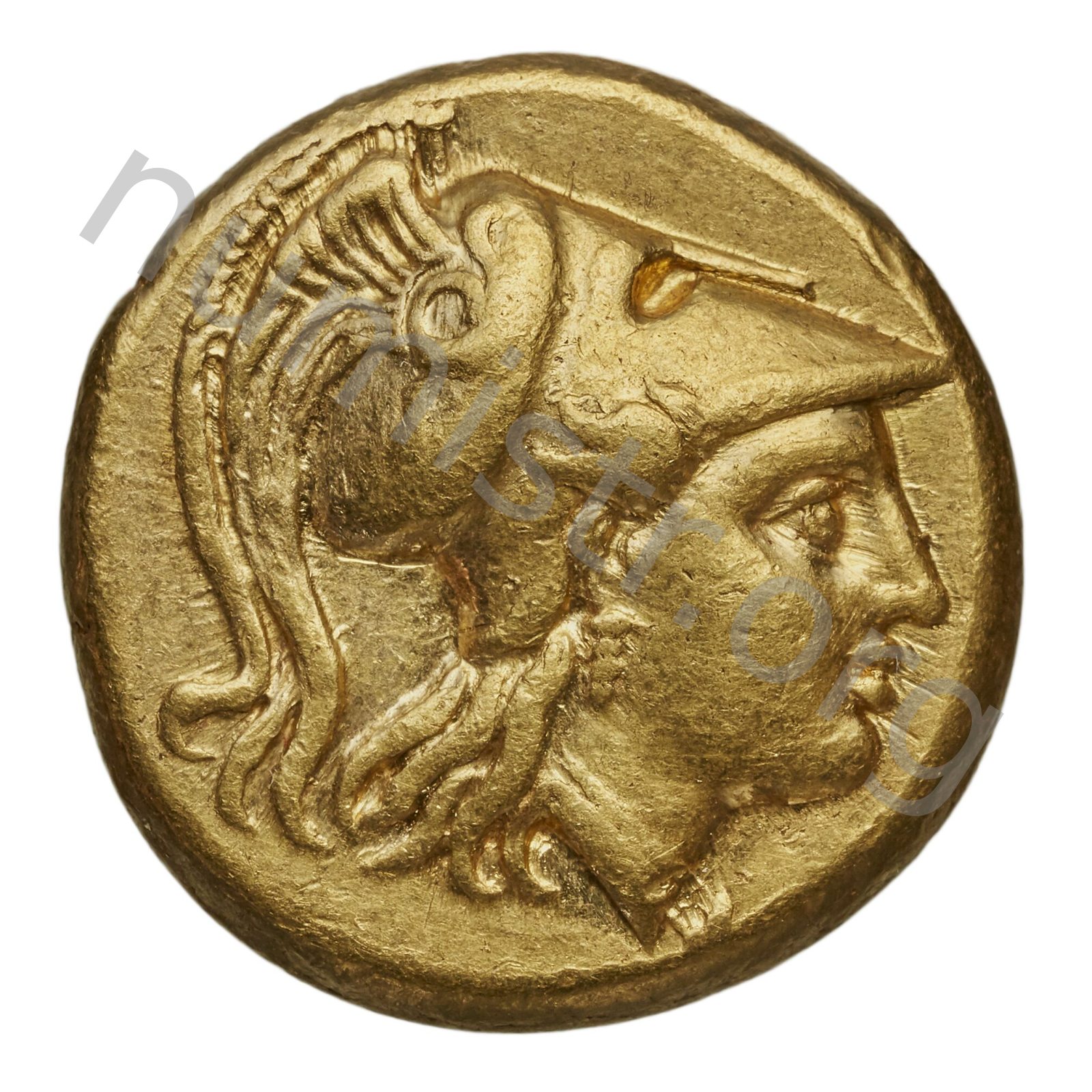 Sağda armalı Korint miğferi takan Athena başı