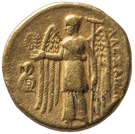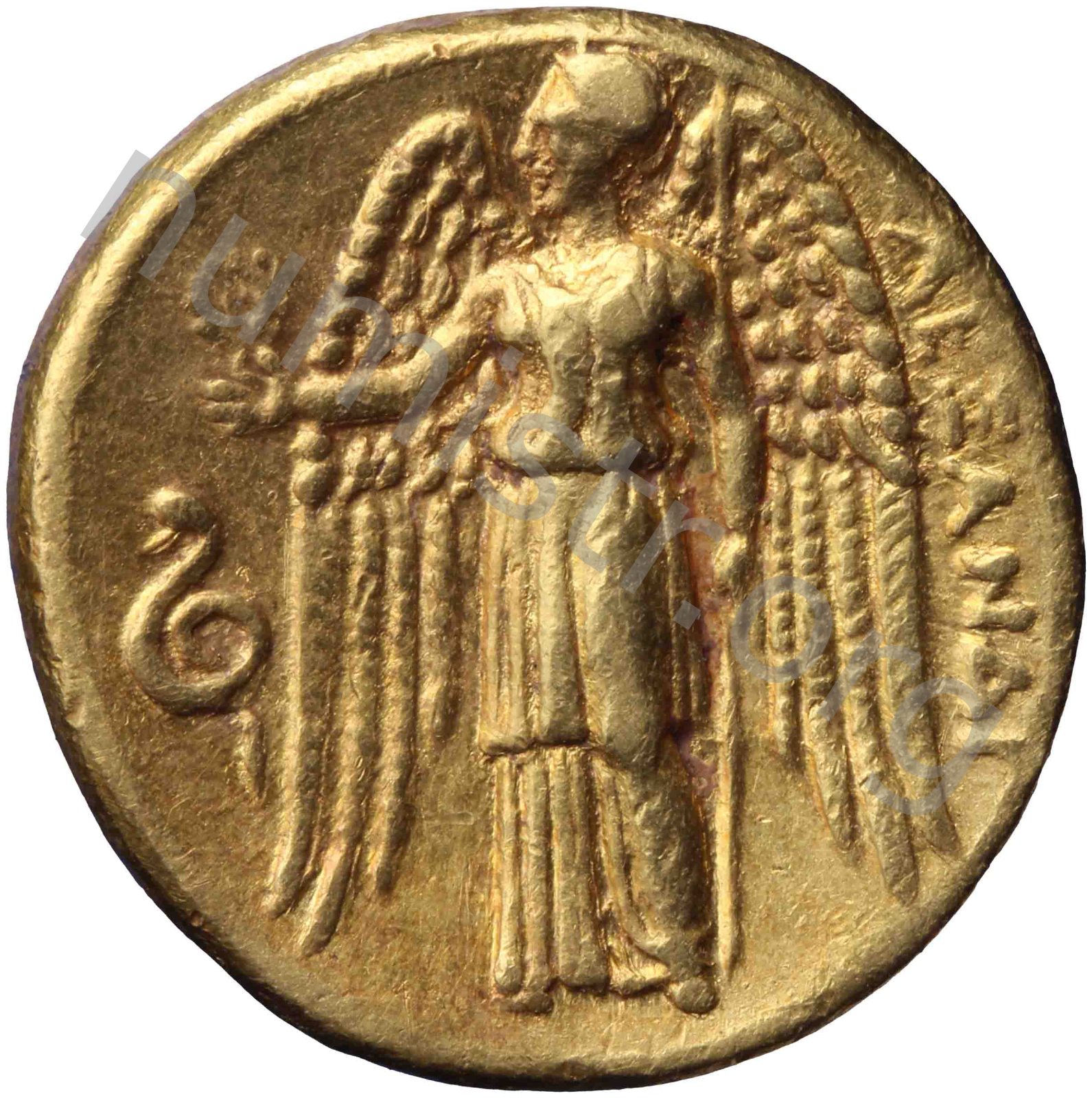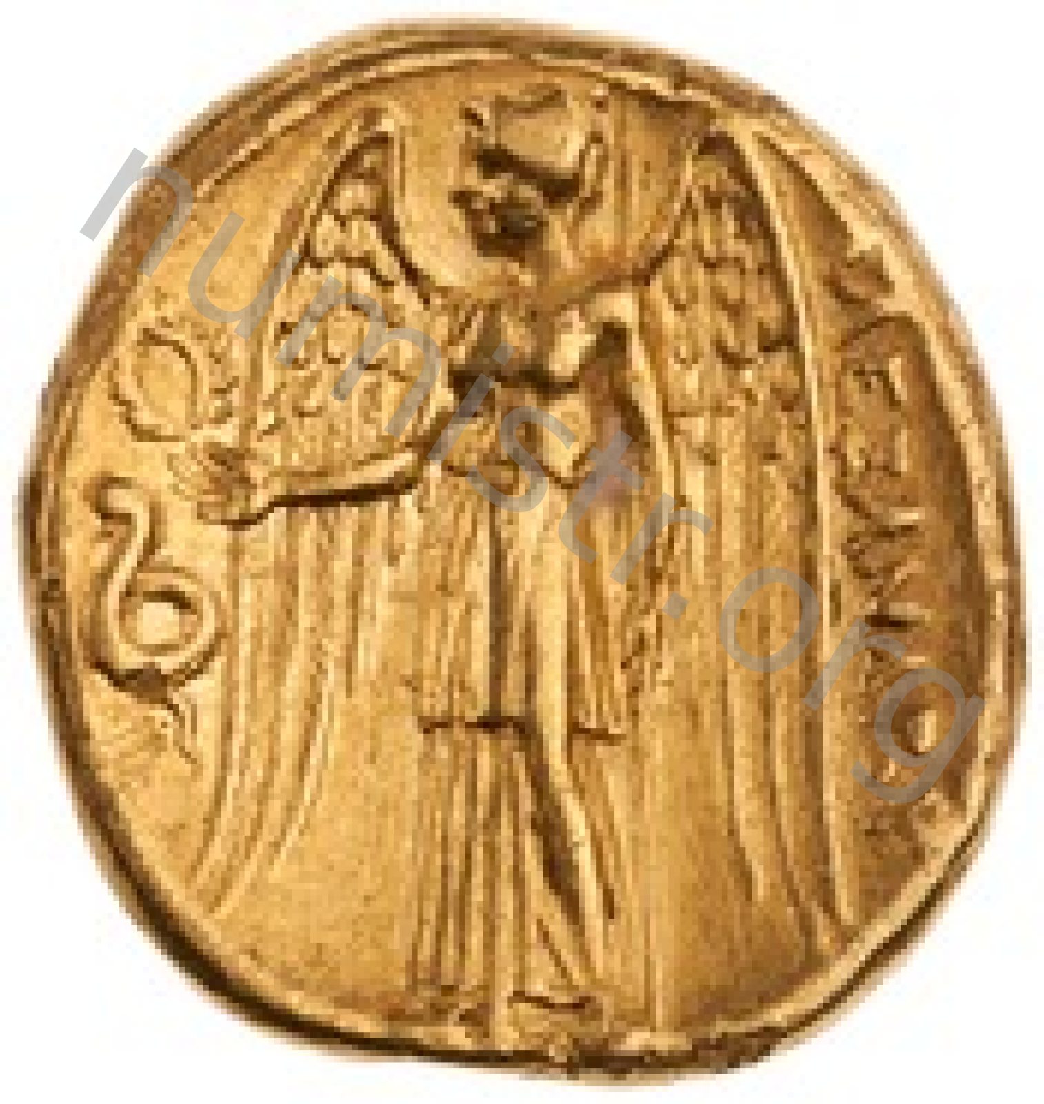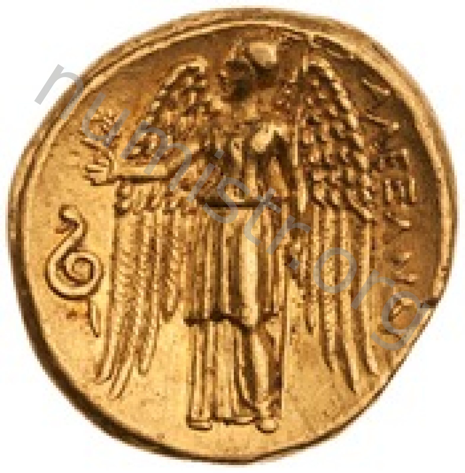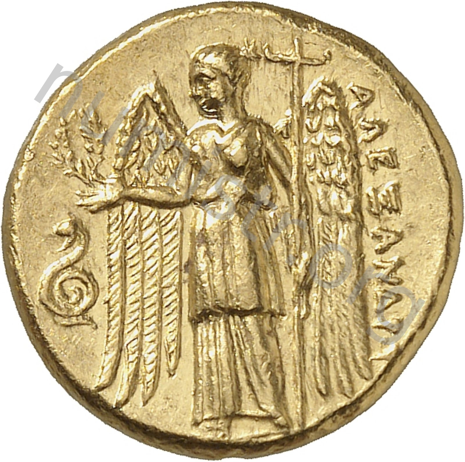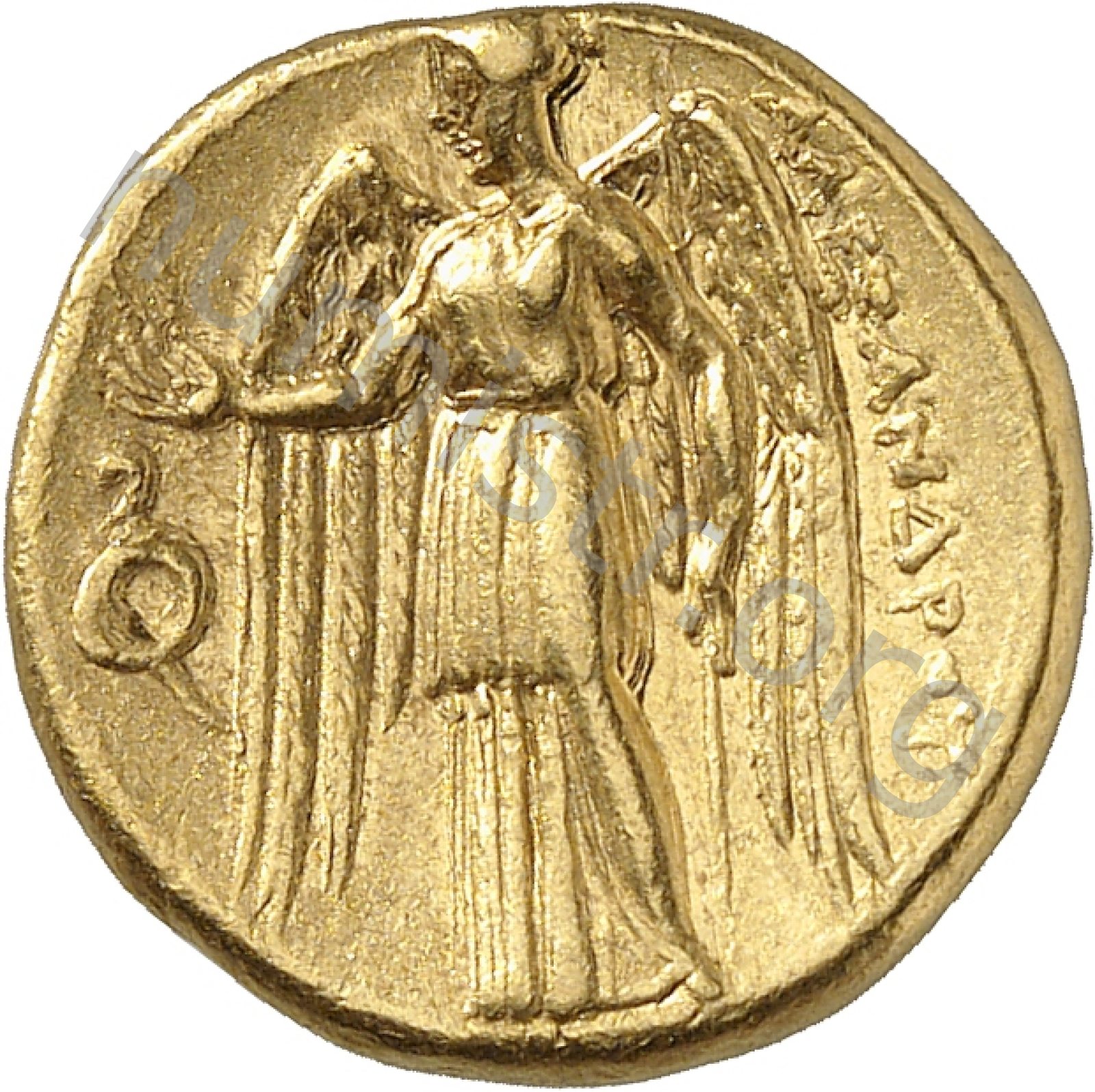 Nike standing left holding wreath in right hand and stylis in her left hand -[en]