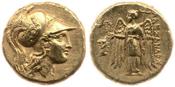 Sağda armalı Korint miğferi takan Athena başı