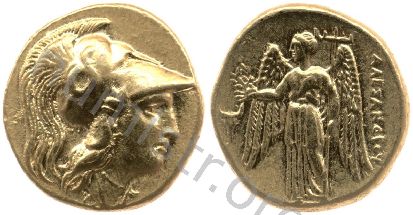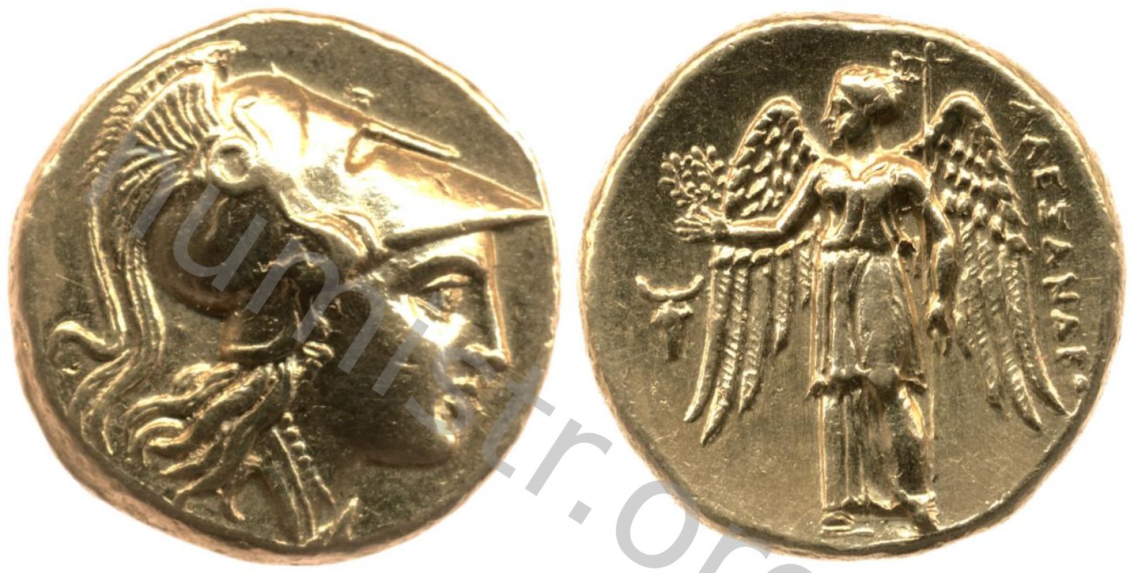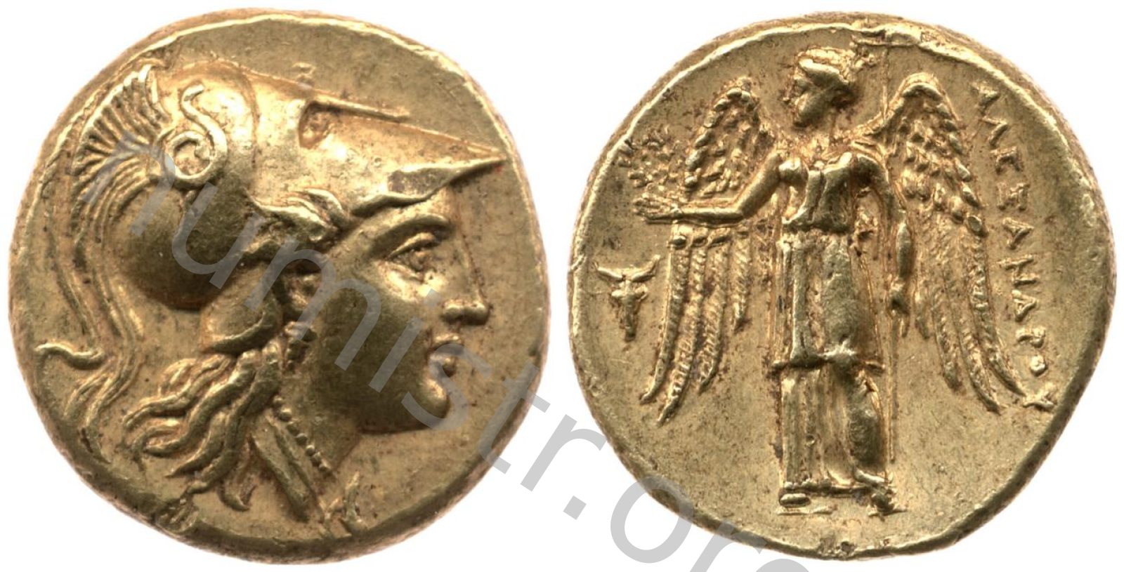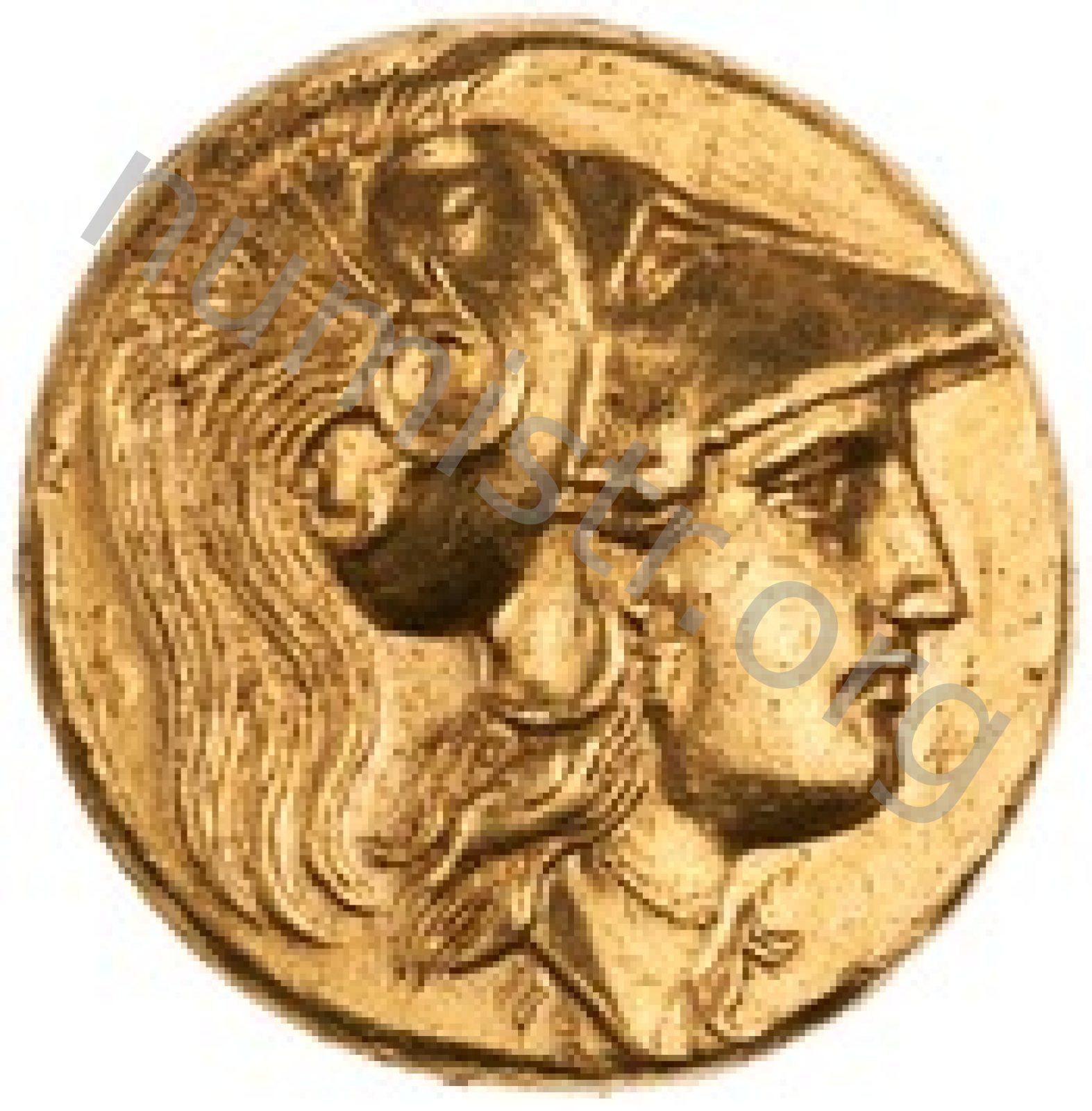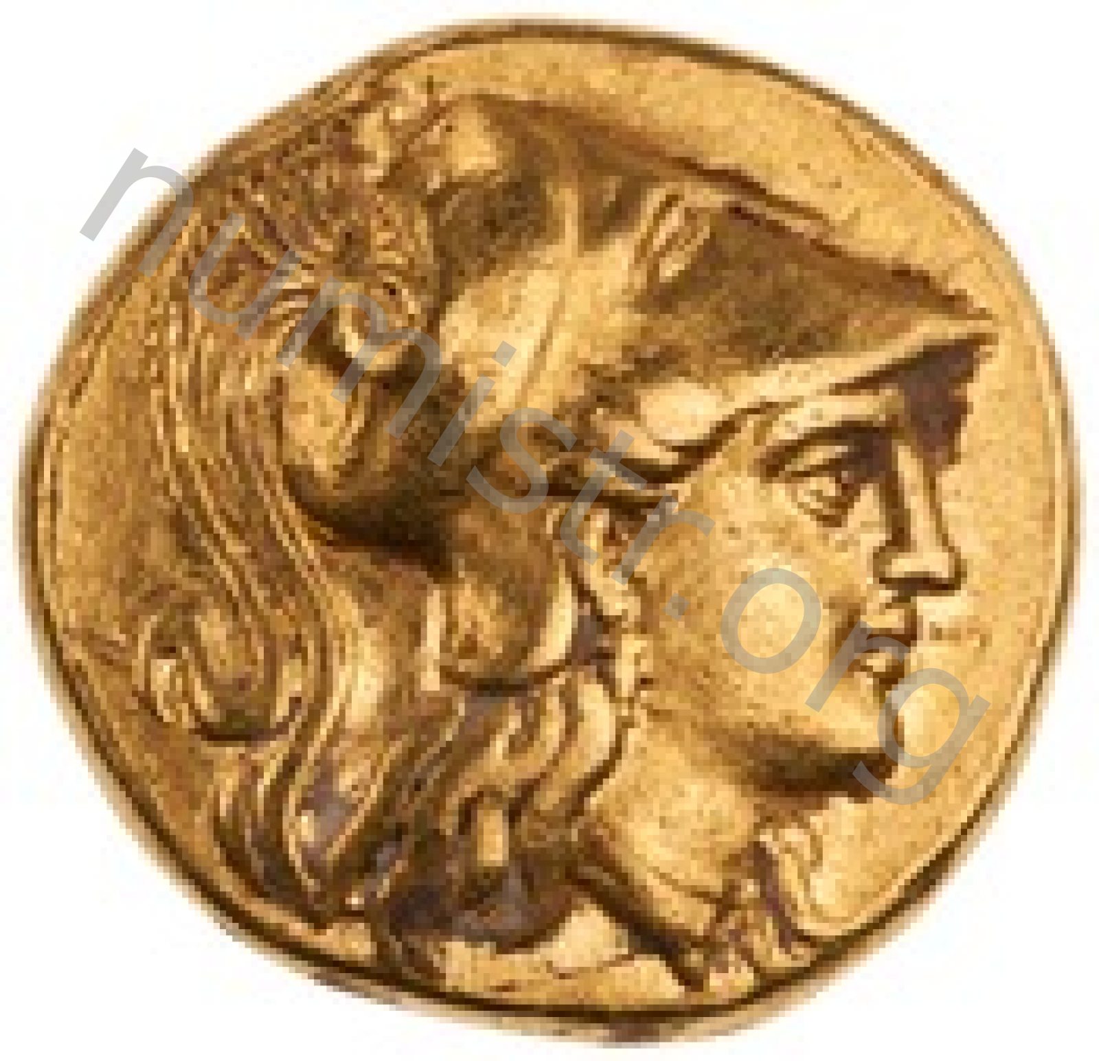 Sağda armalı Korint miğferi takan Athena başı