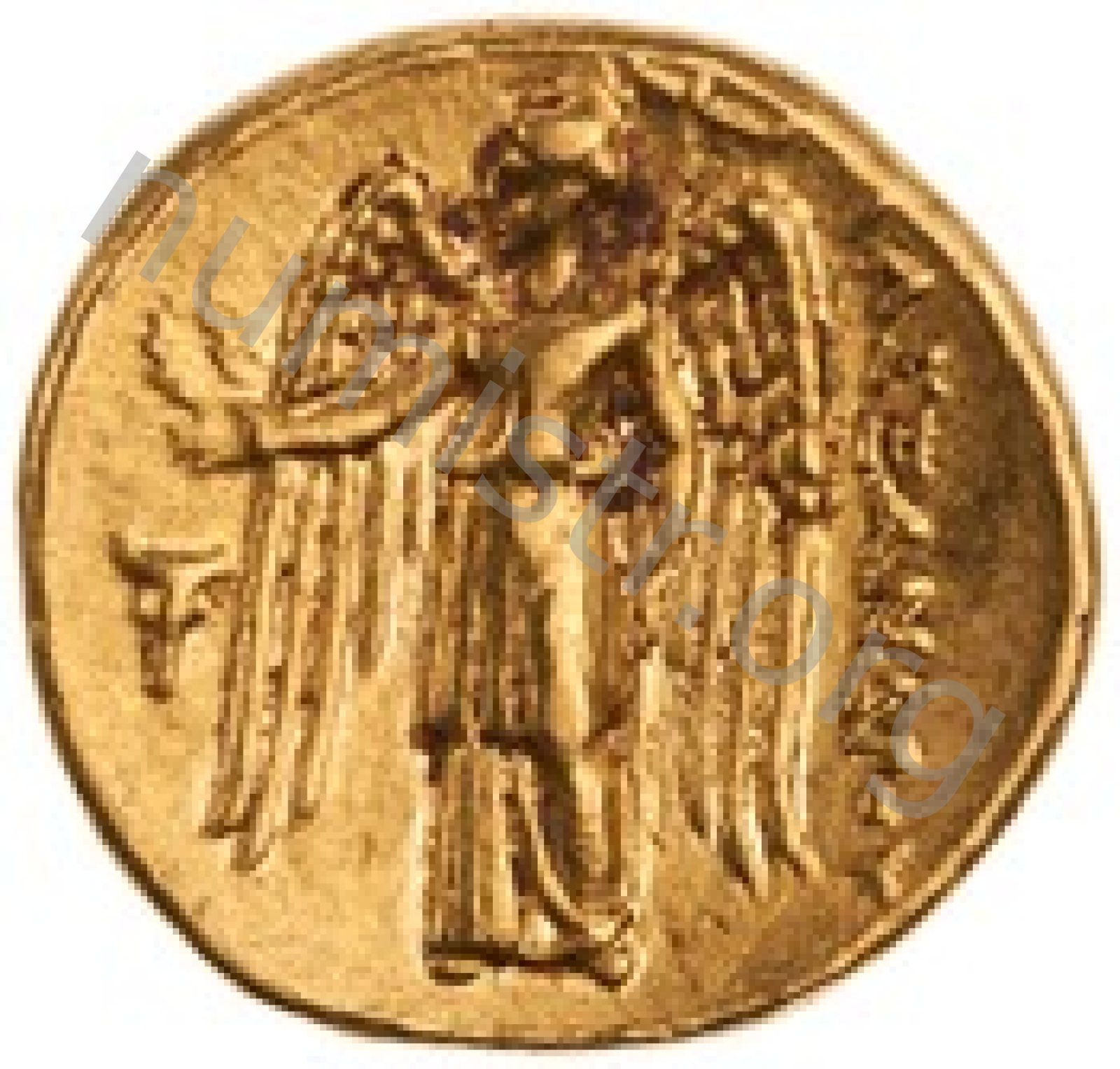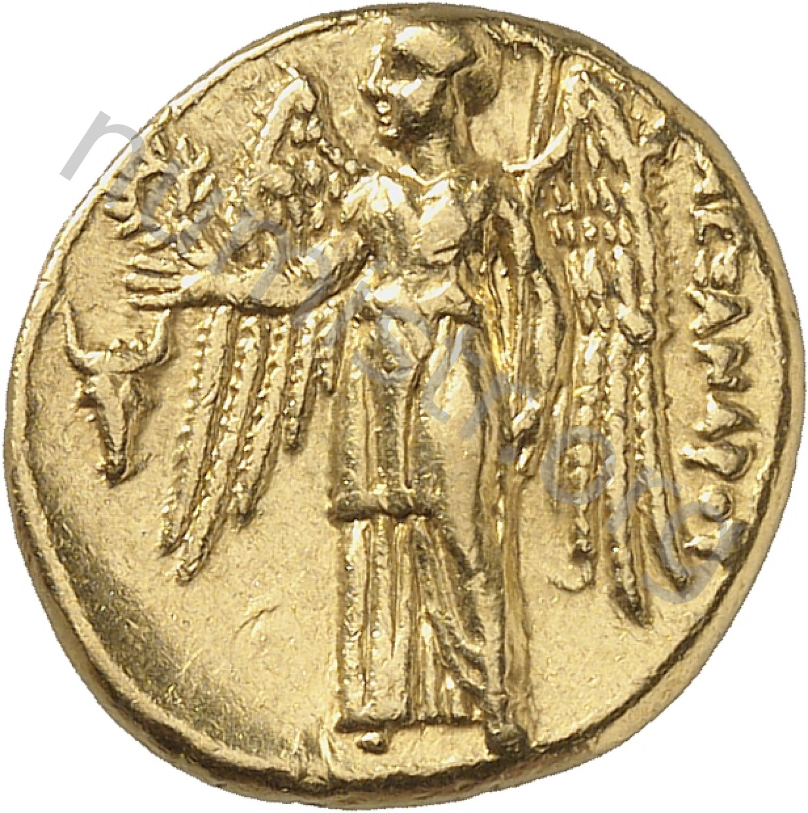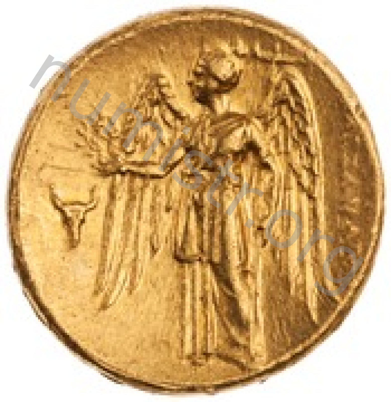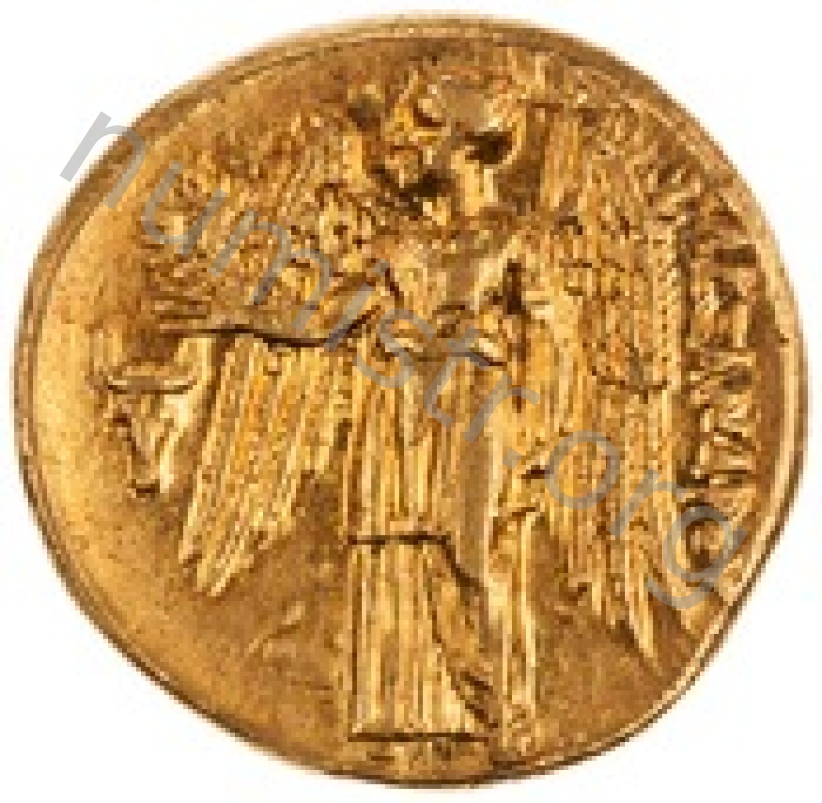 Nike standing left holding wreath in right hand and stylis in her left hand -[en]