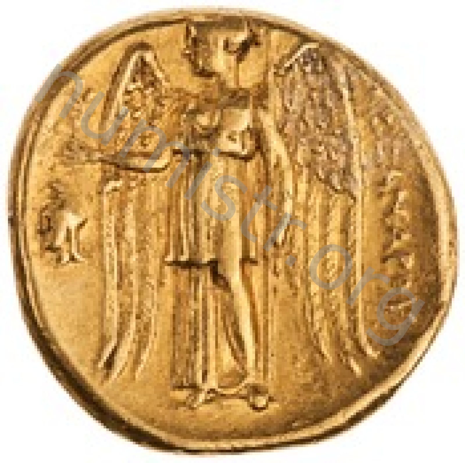 Nike standing left holding wreath in right hand and stylis in her left hand -[en]