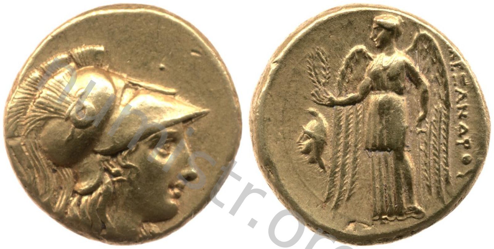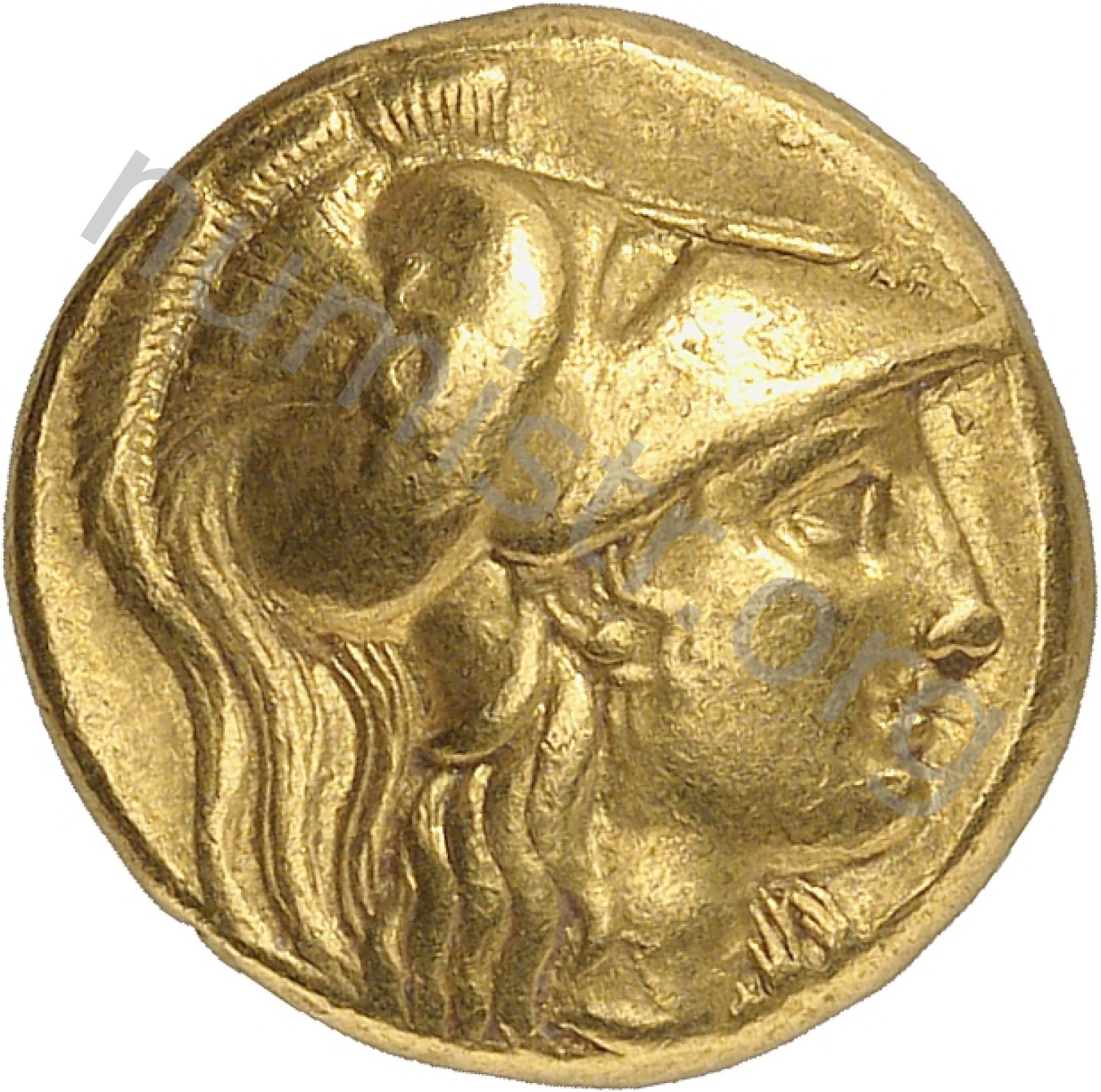 Head of Athena right wearing Corinthian helmet with crest -[en]