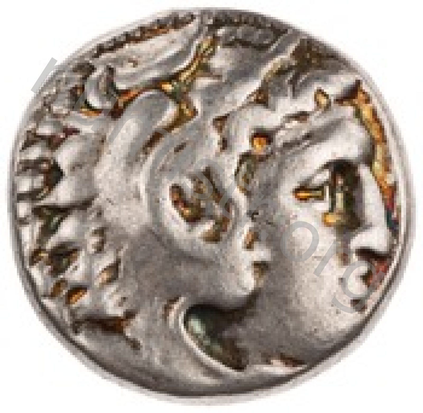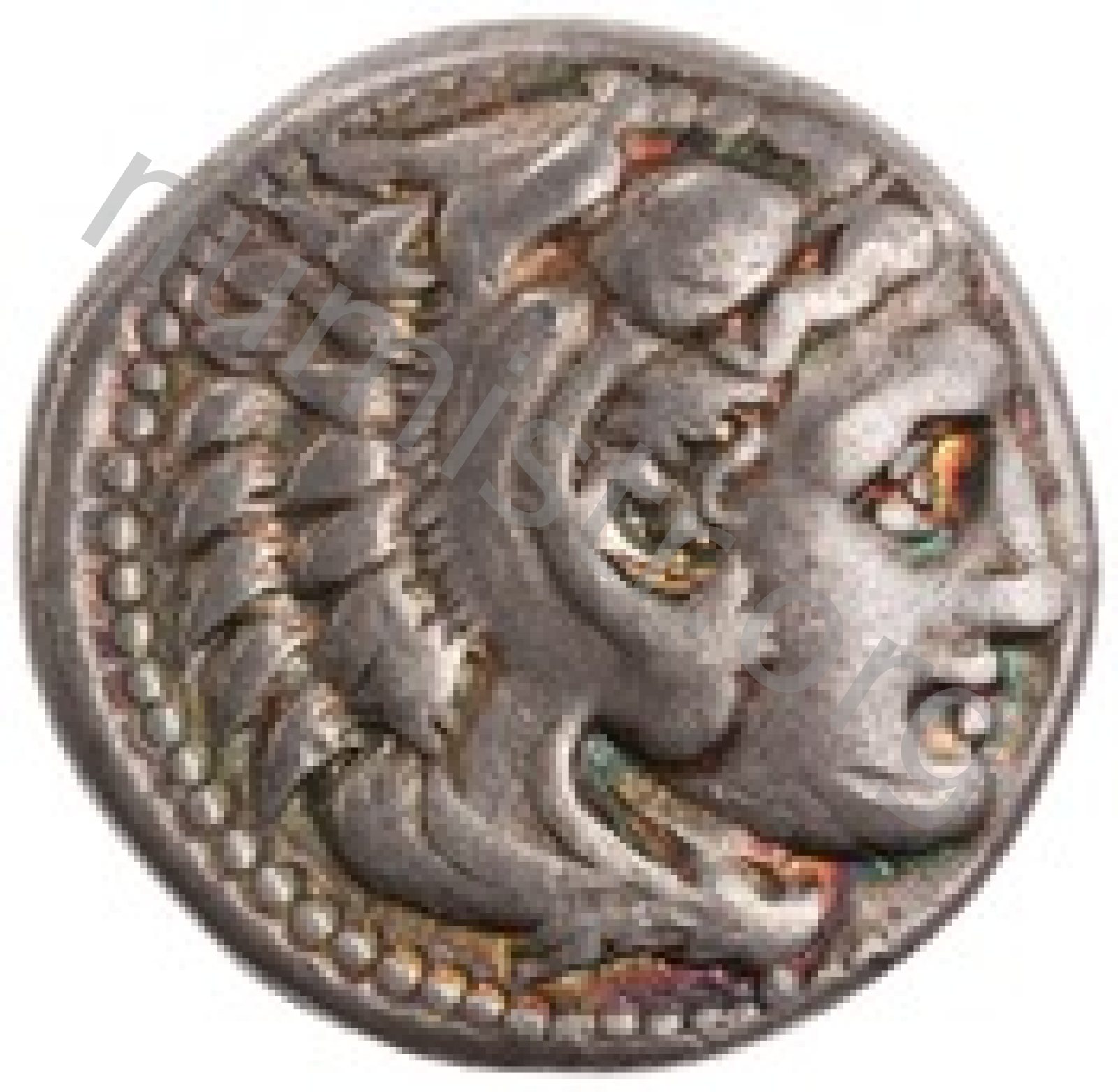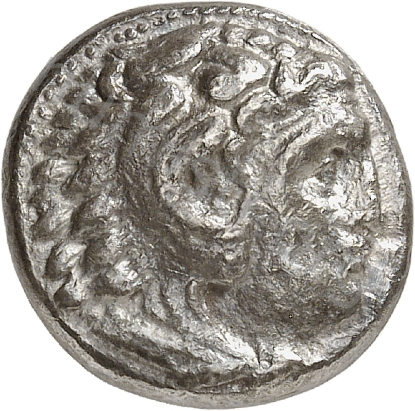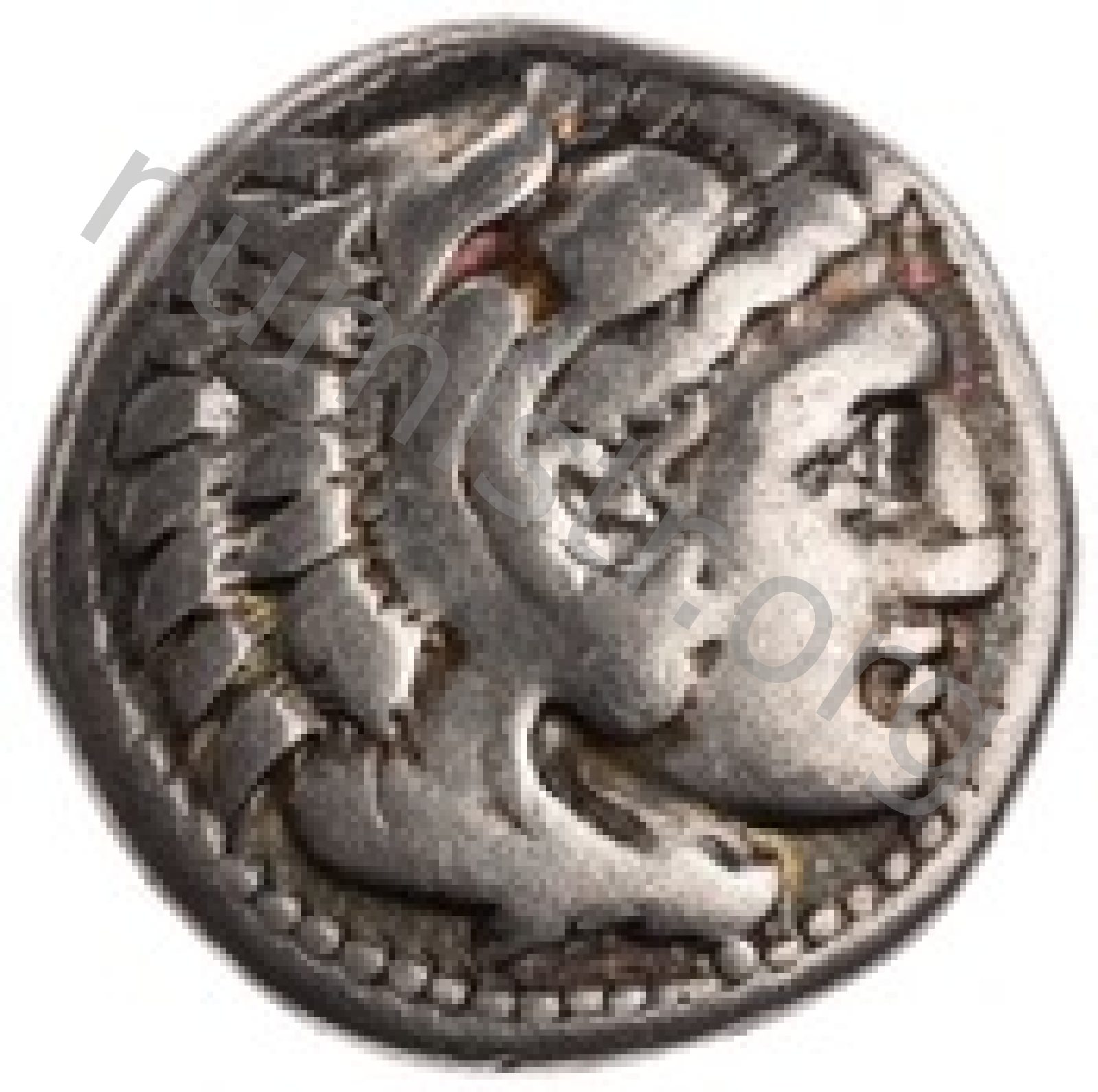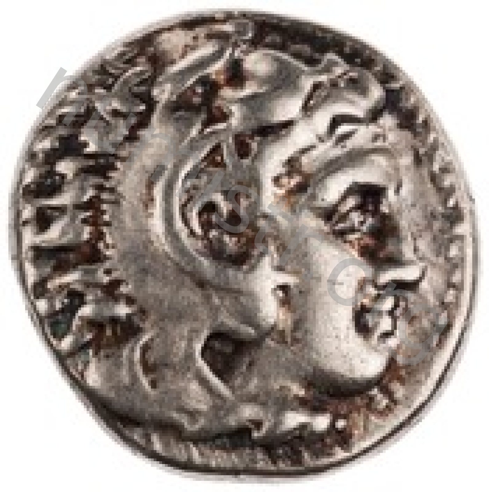 Head of beardless Heracles right wearing lion skin headdress -[en]