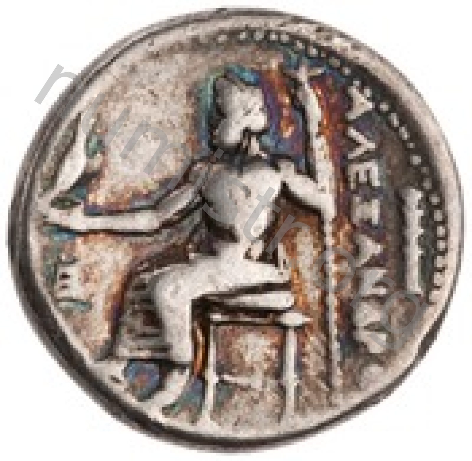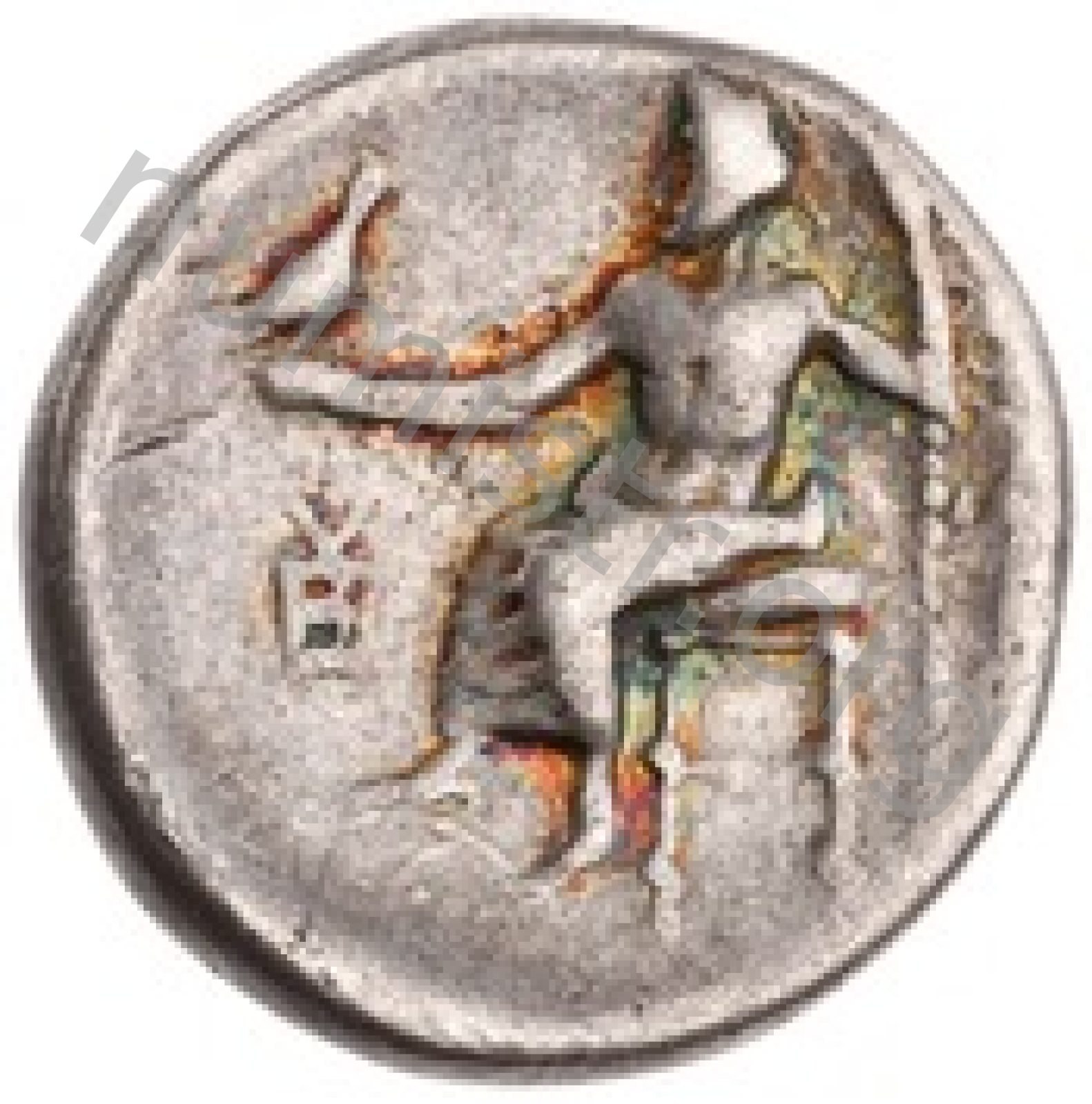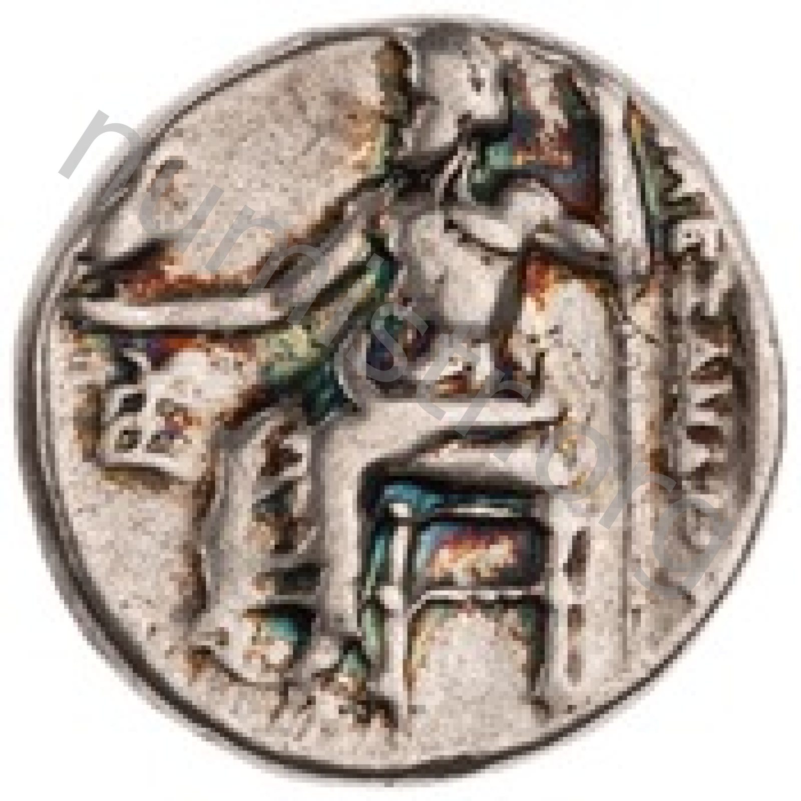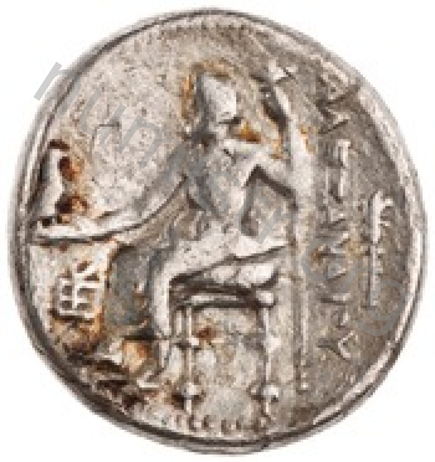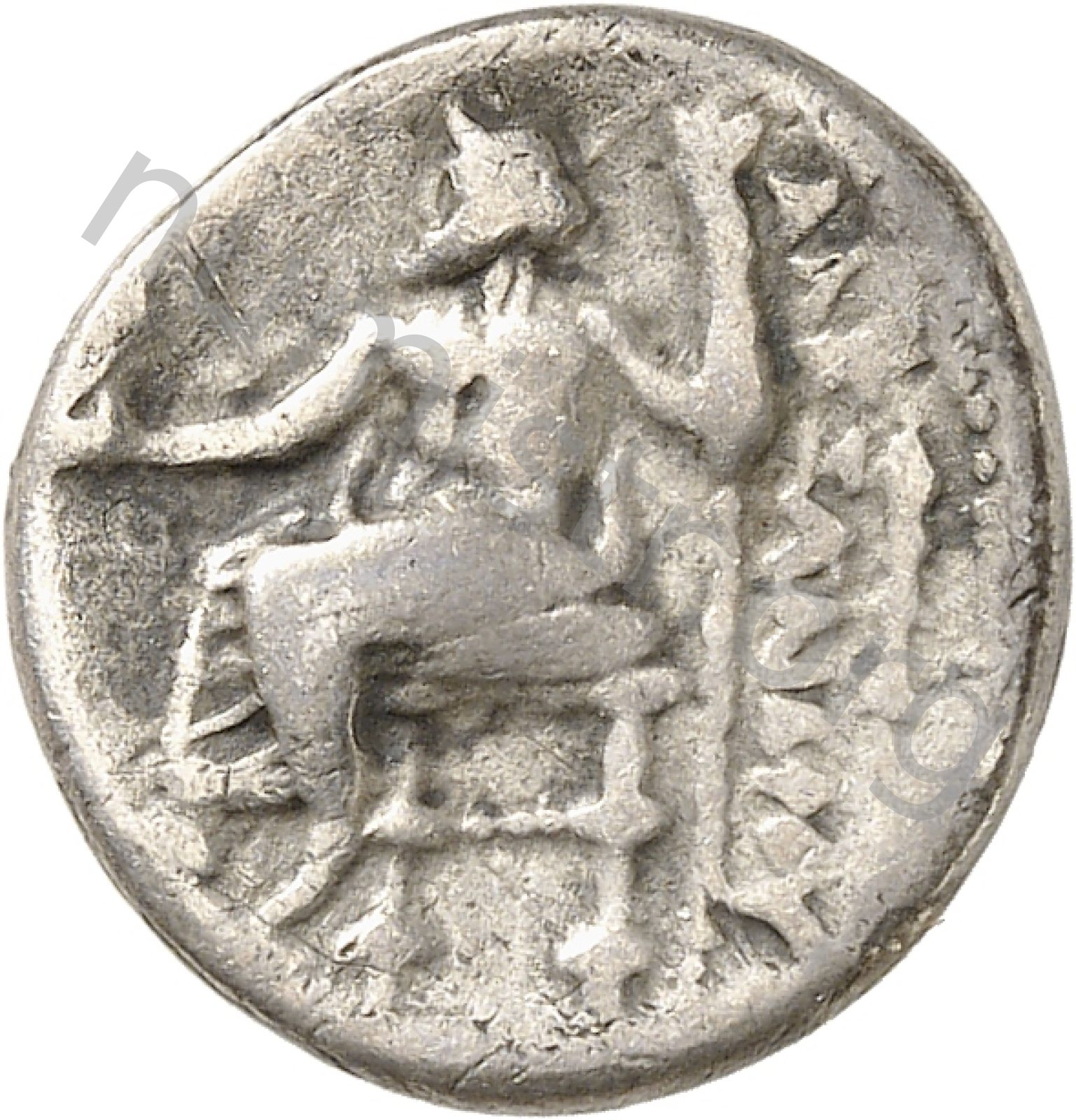 Head of beardless Heracles right wearing lion skin headdress -[en]