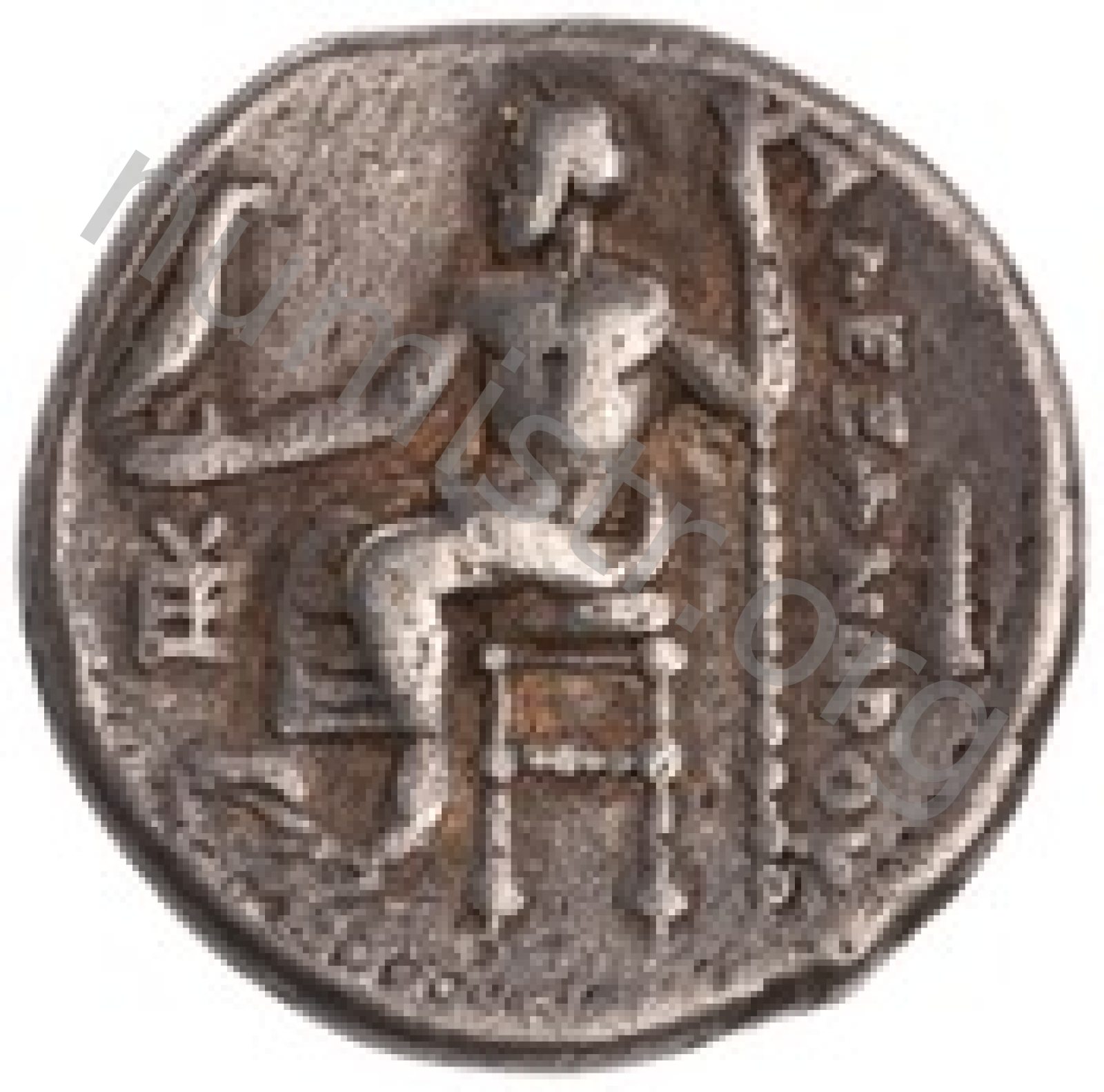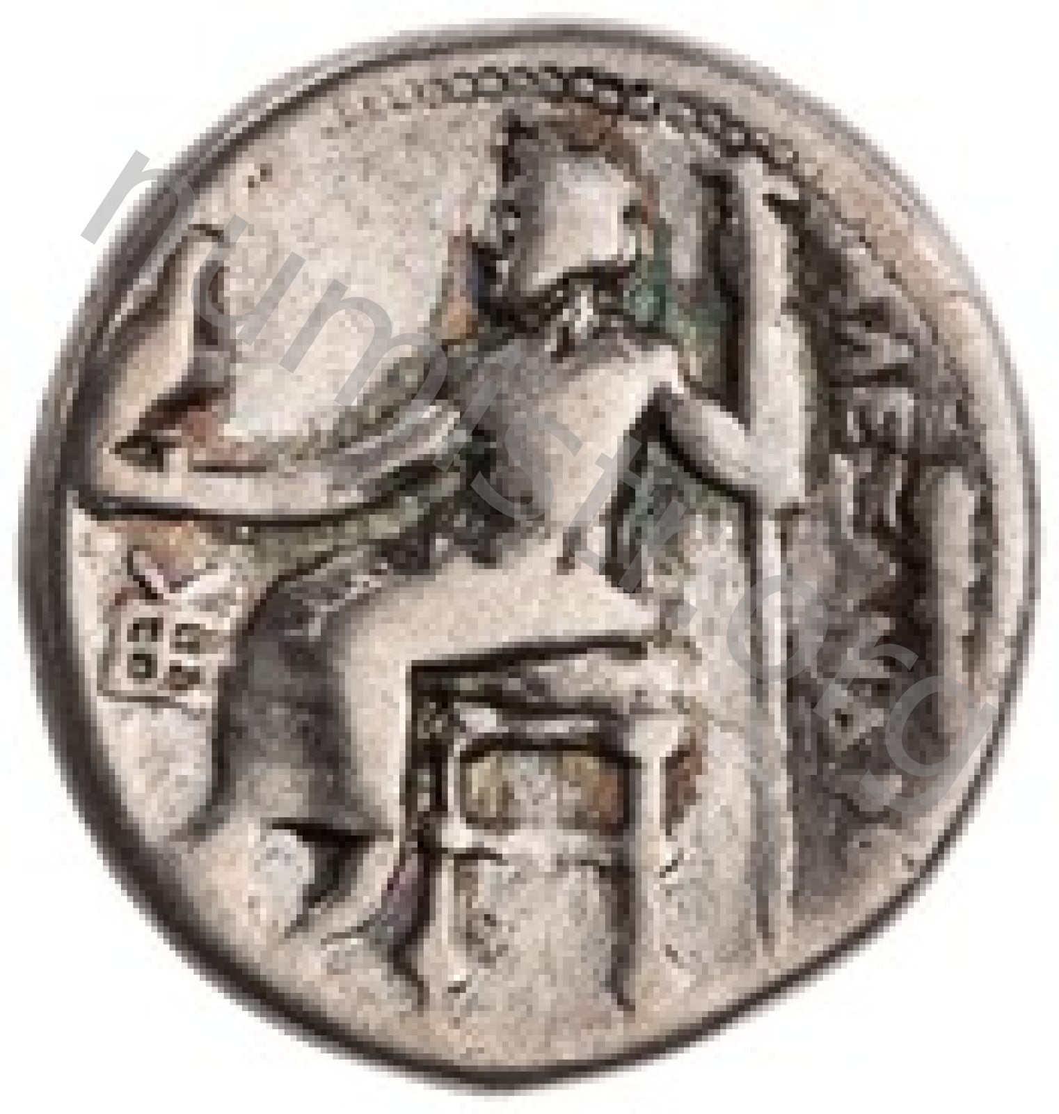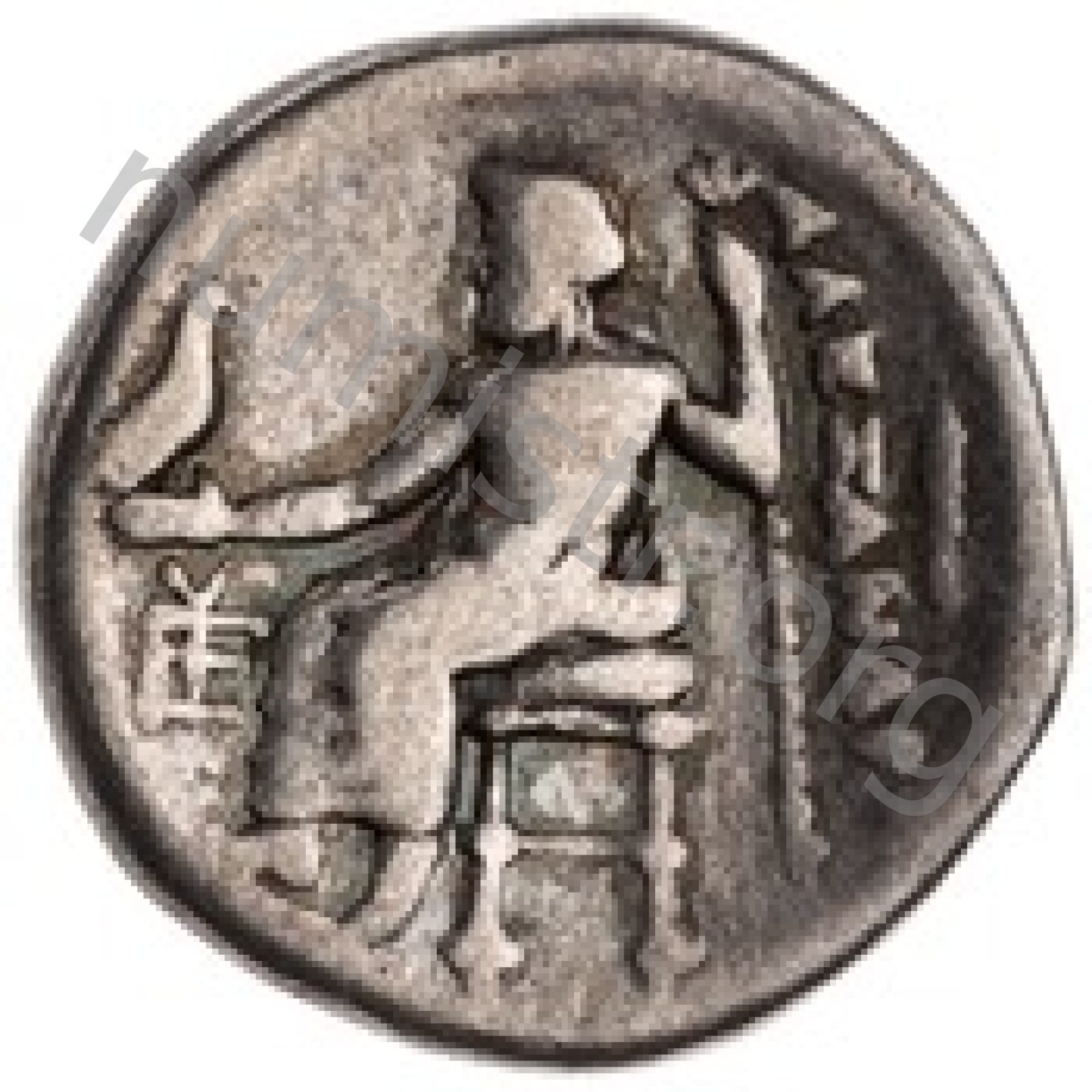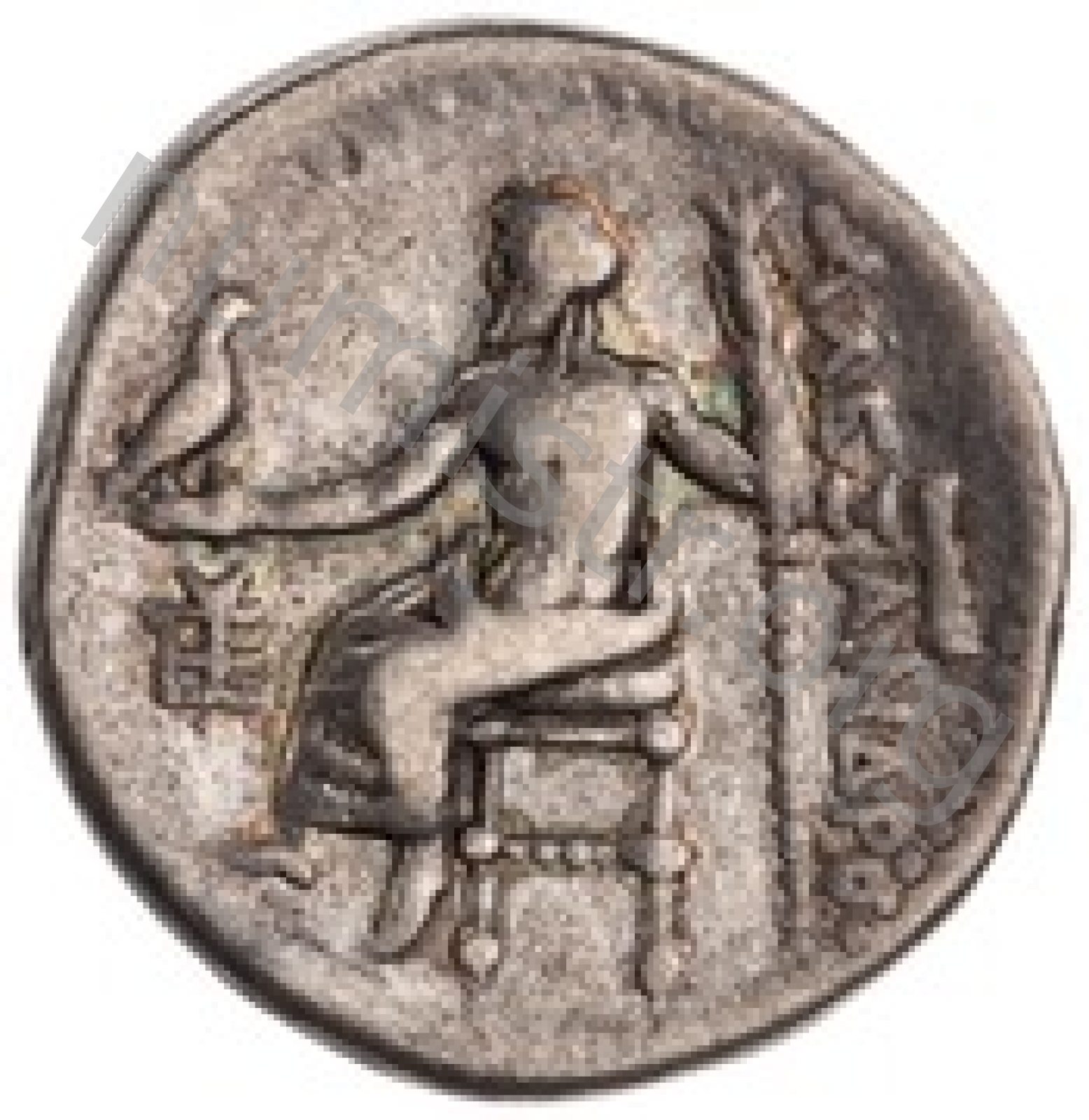 Zeus tabure-tahtta oturuyor sol elinde kartal sağ elinde asa var.