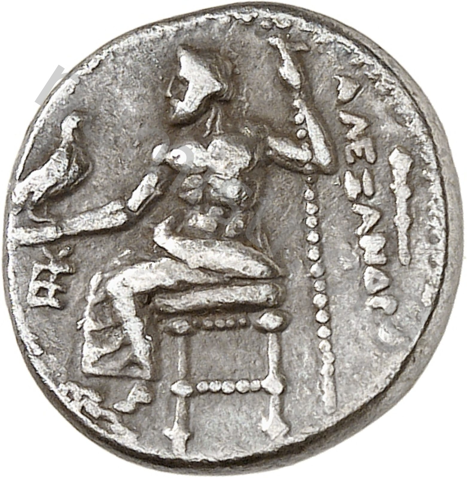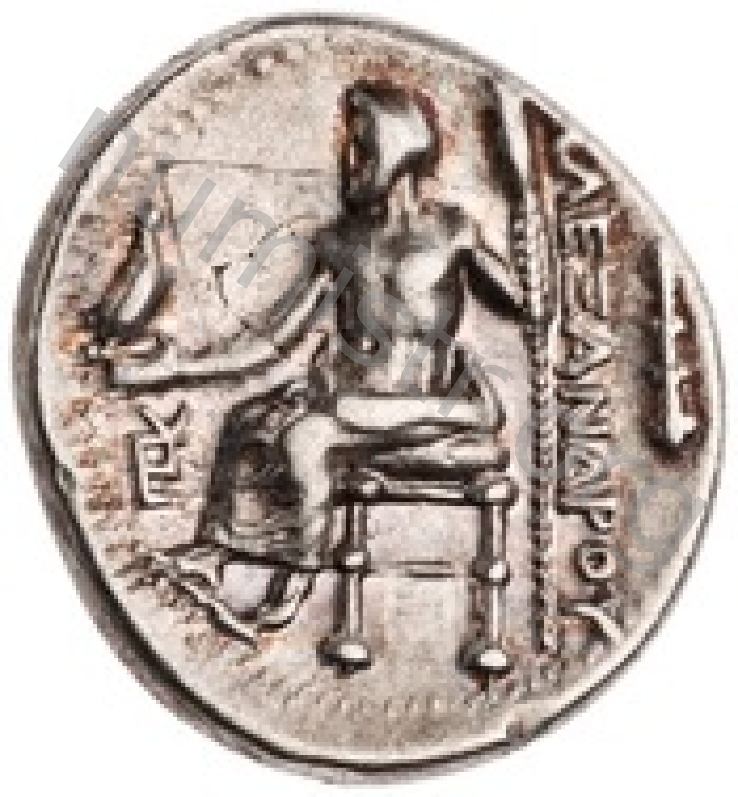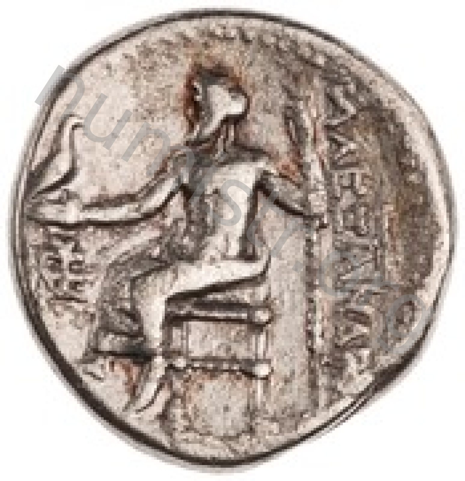Zeus tabure-tahtta oturuyor sol elinde kartal sağ elinde asa var.