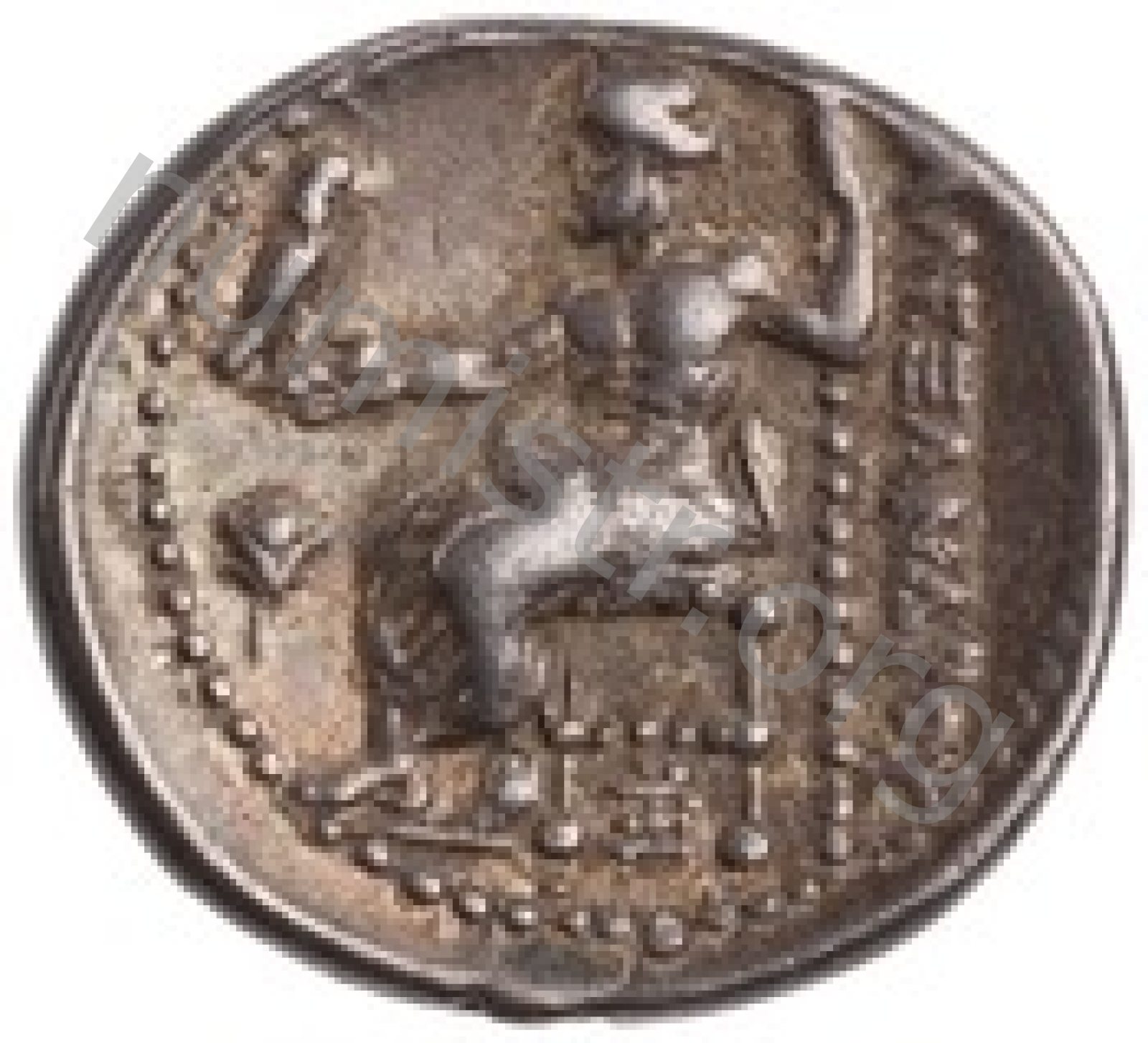 Zeus tabure-tahtta oturuyor sol elinde kartal sağ elinde asa var.