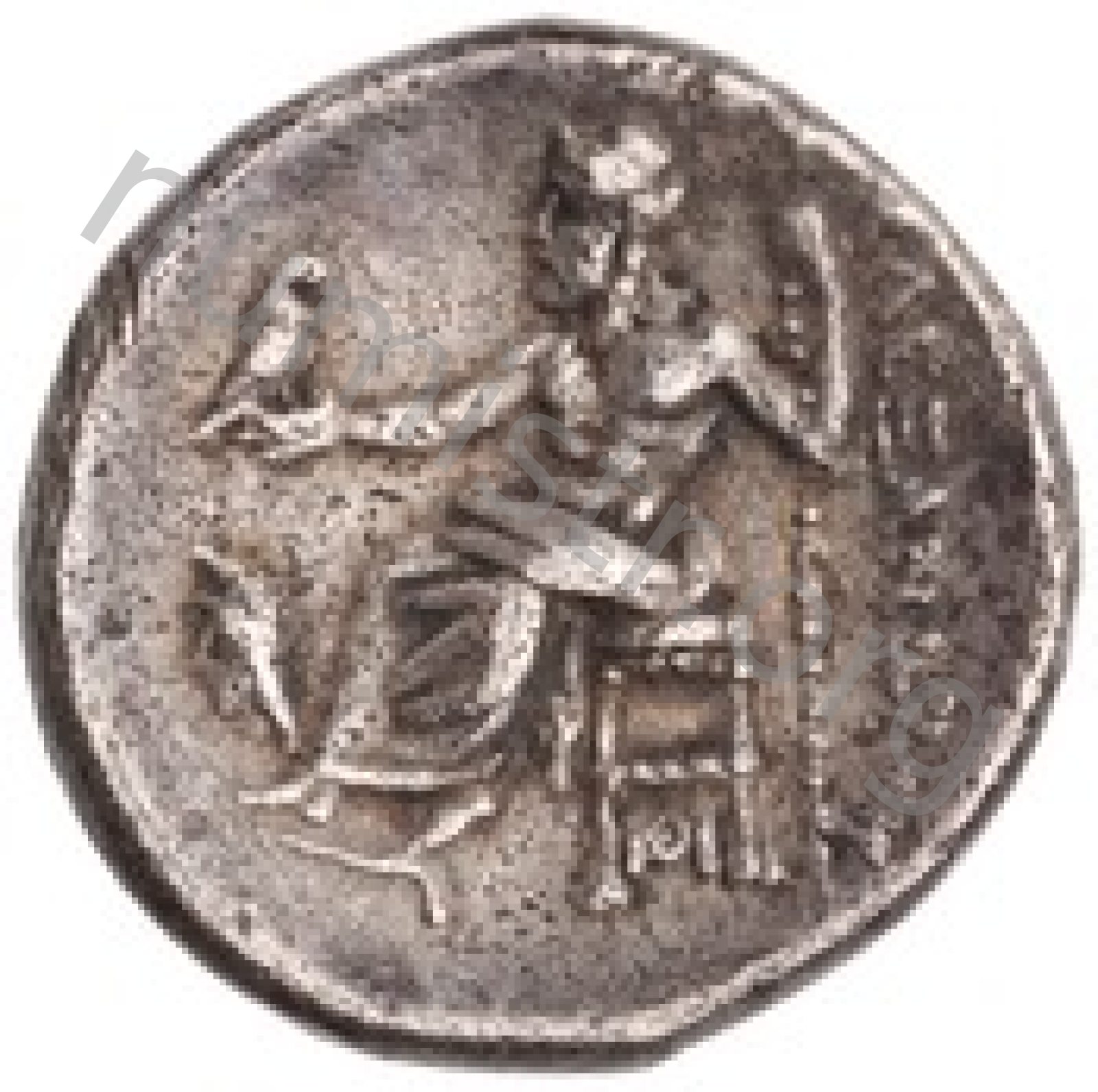 Zeus tabure-tahtta oturuyor sol elinde kartal sağ elinde asa var.