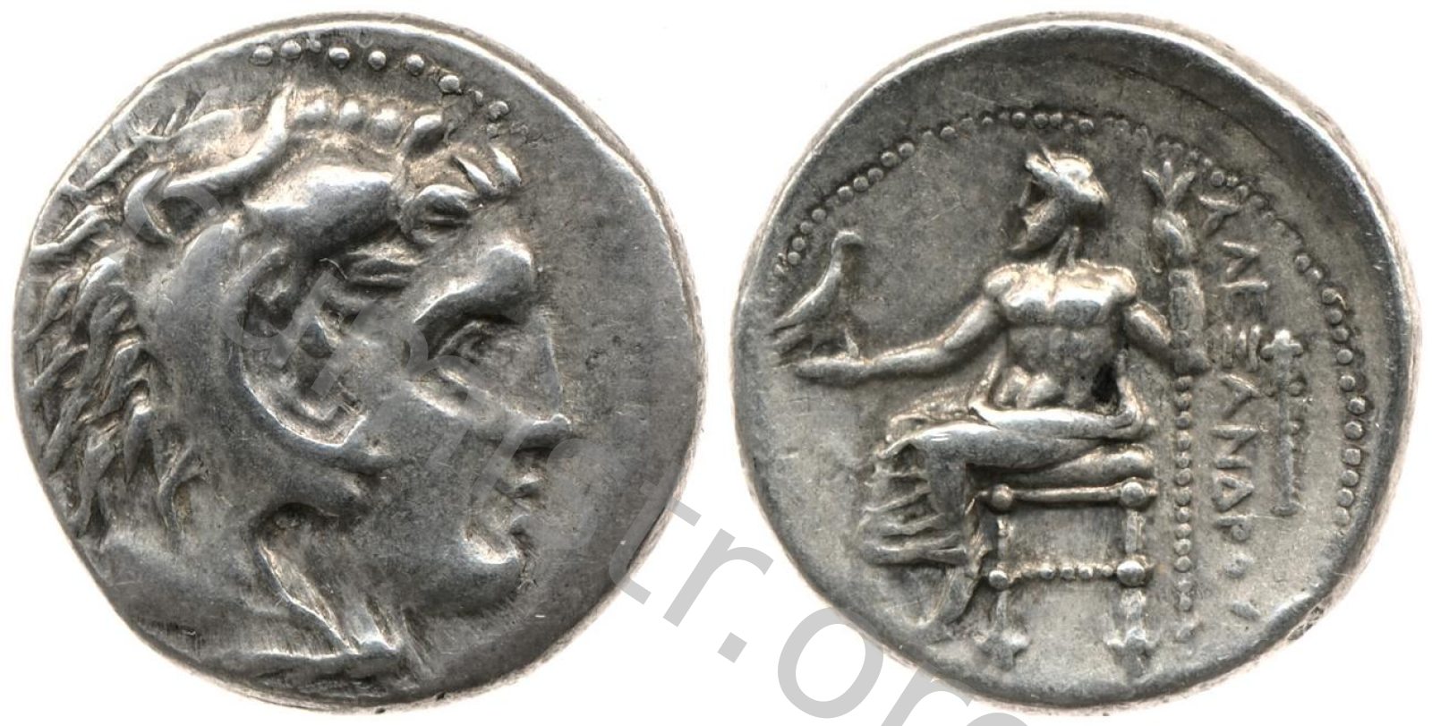 Head of beardless Heracles right wearing lion skin headdress -[en]