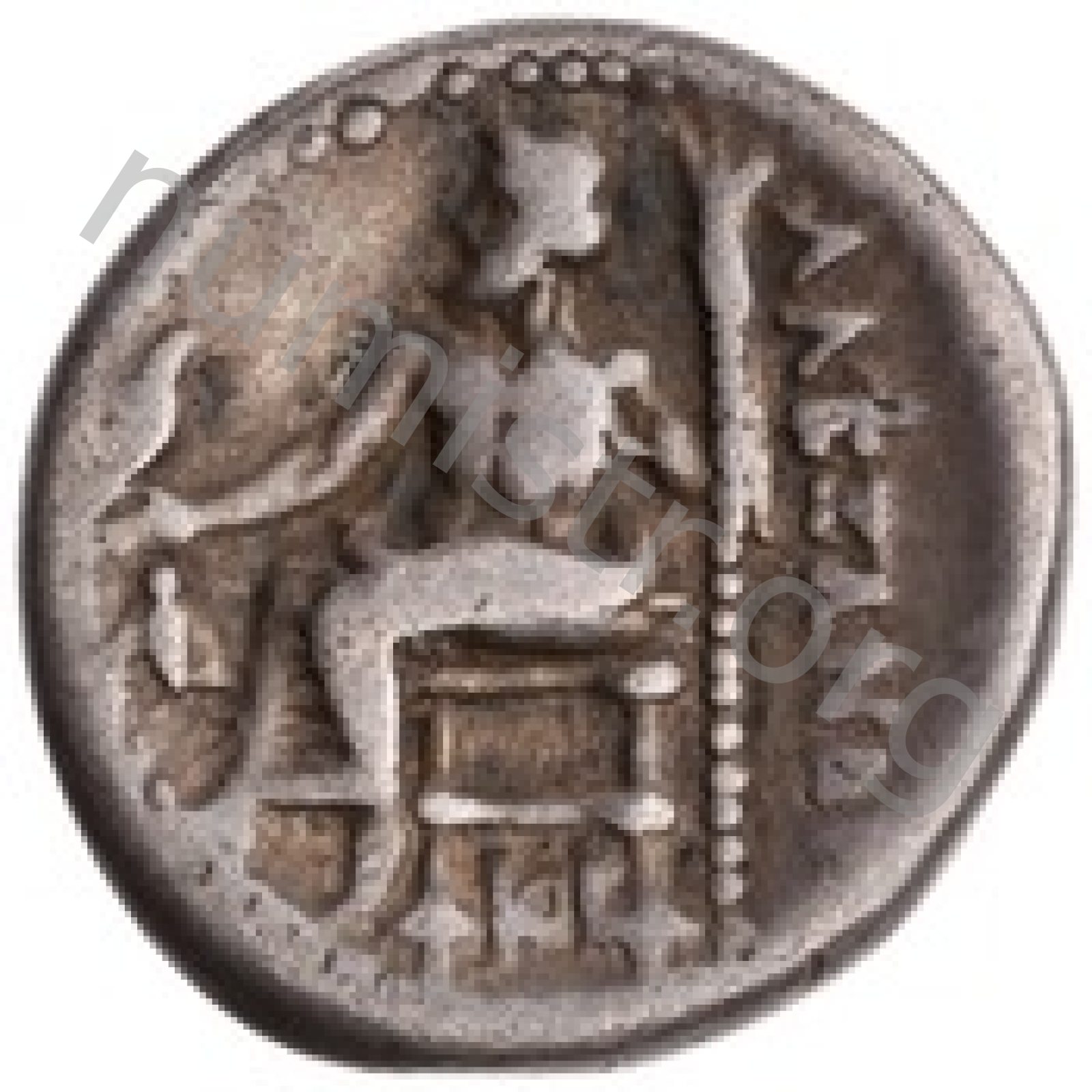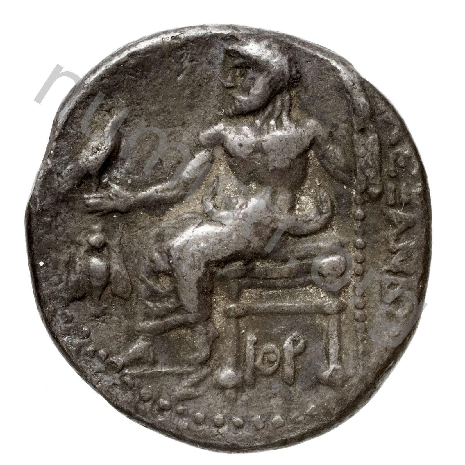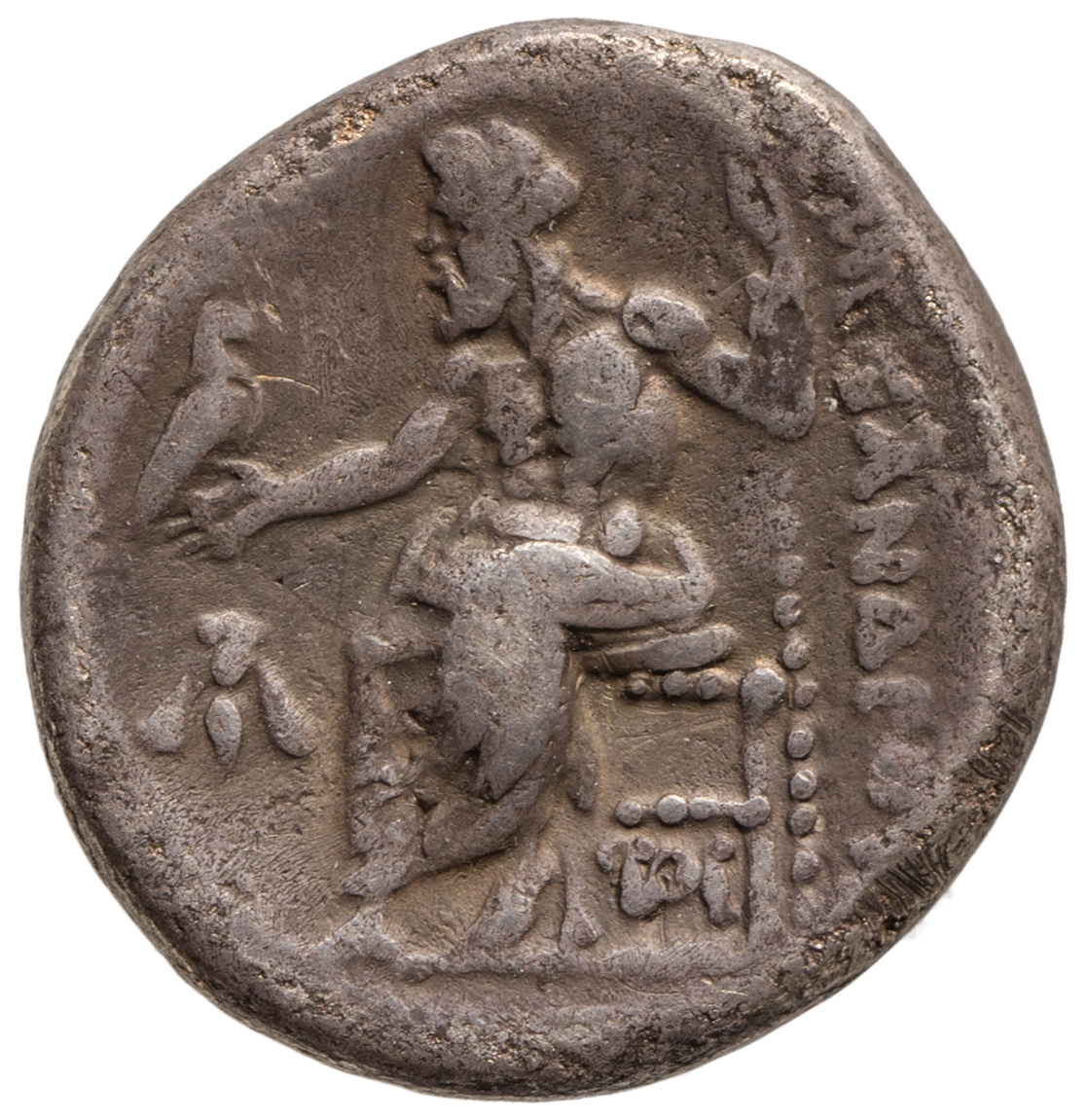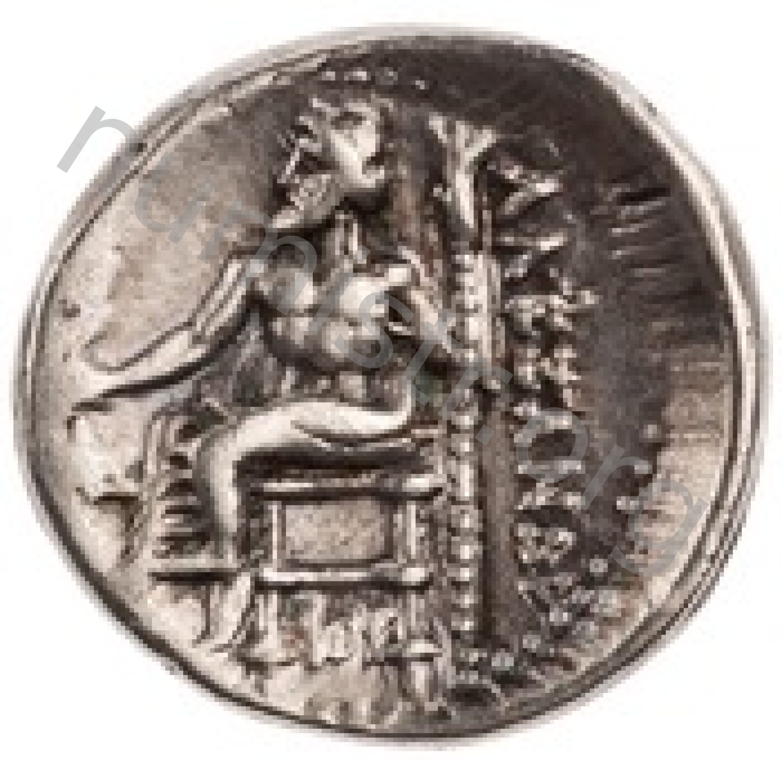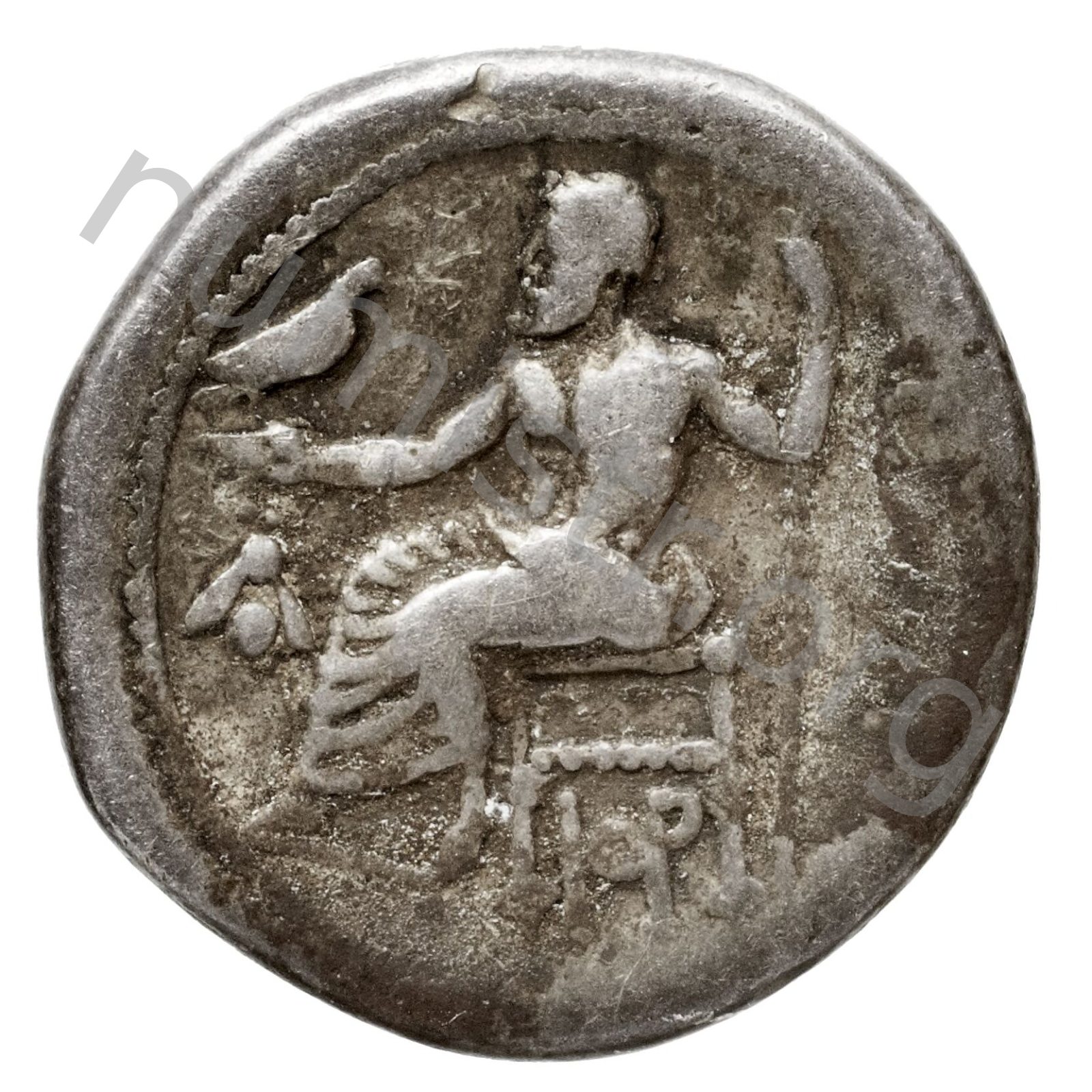 Zeus tabure-tahtta oturuyor sol elinde kartal sağ elinde asa var