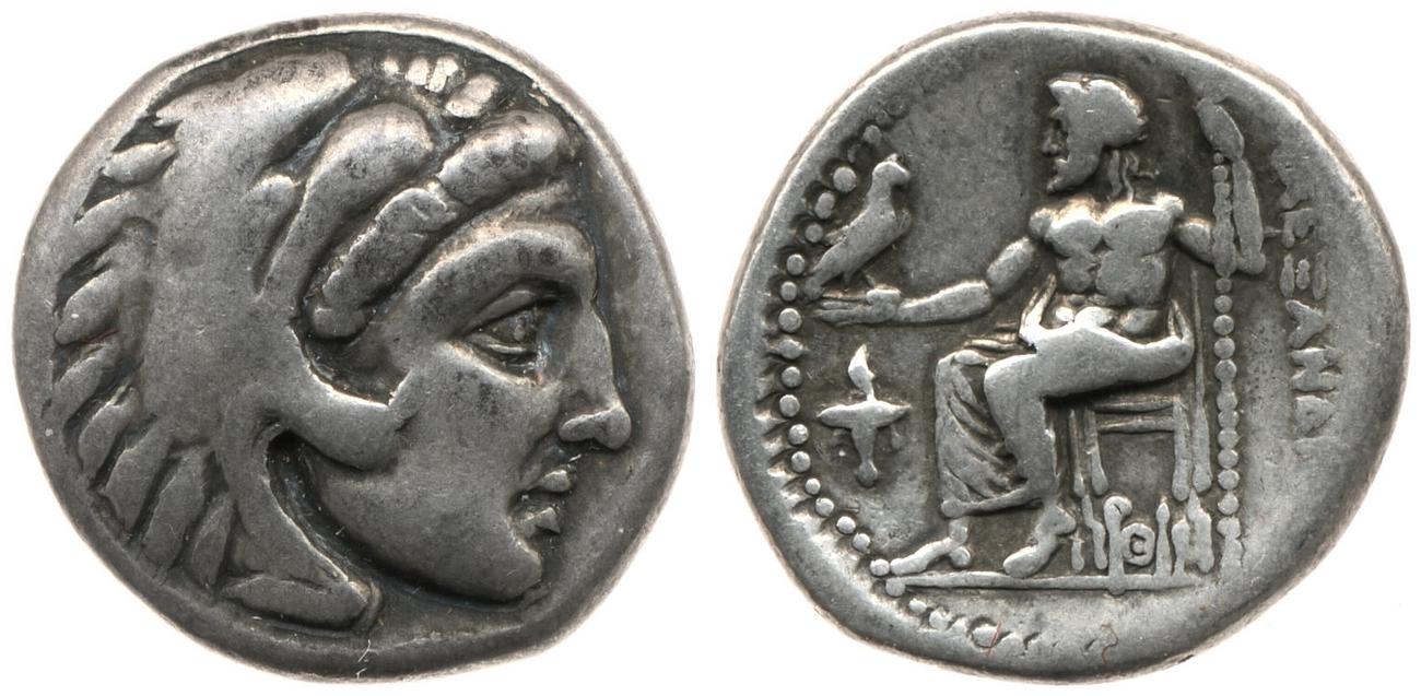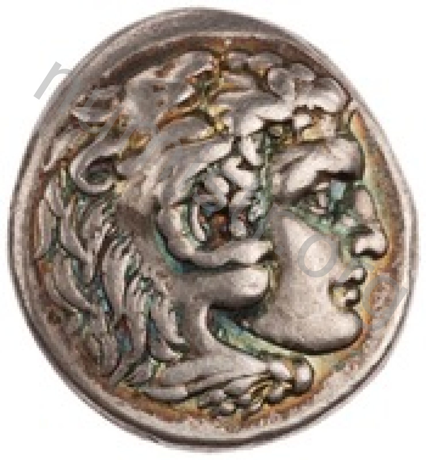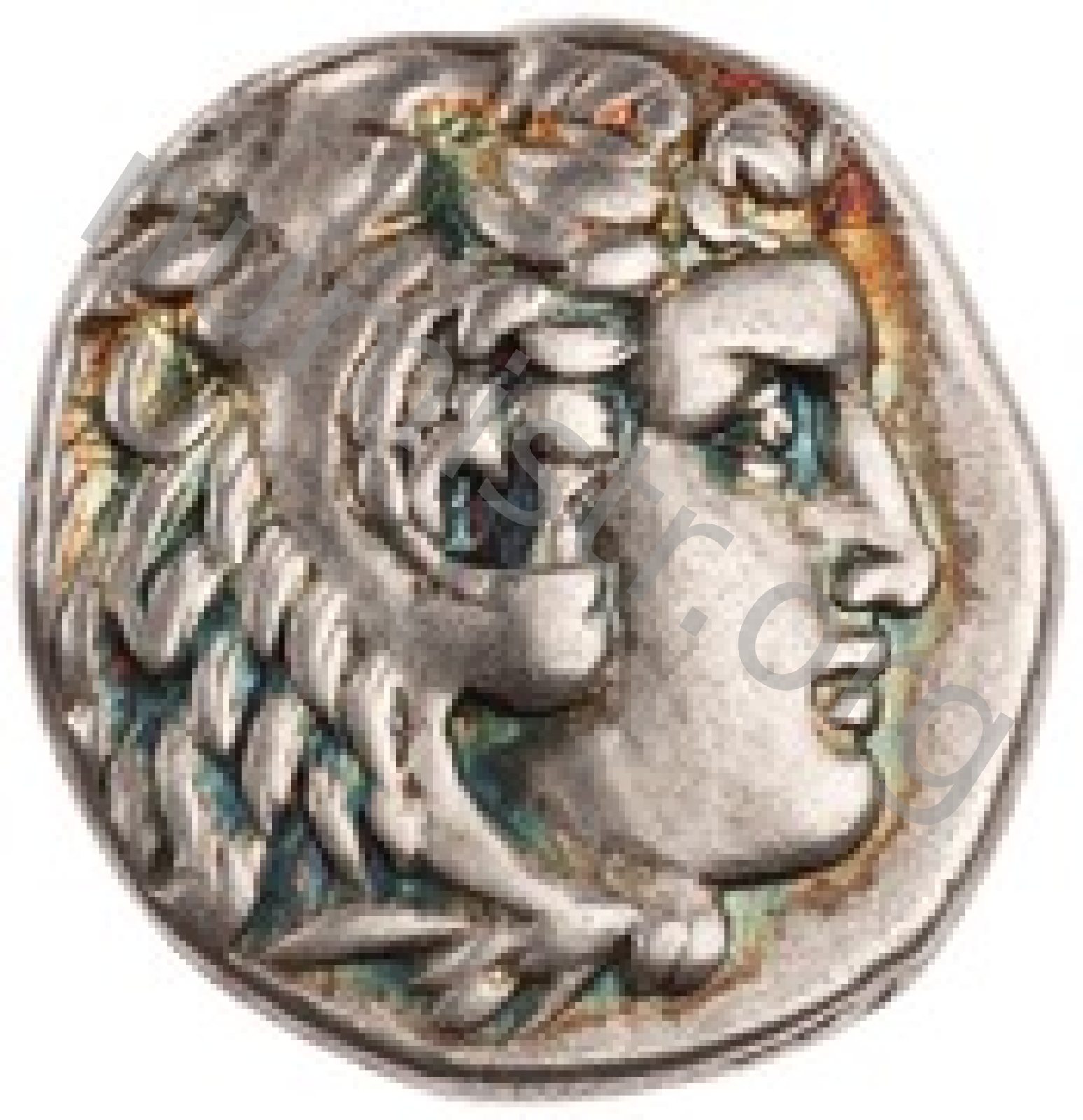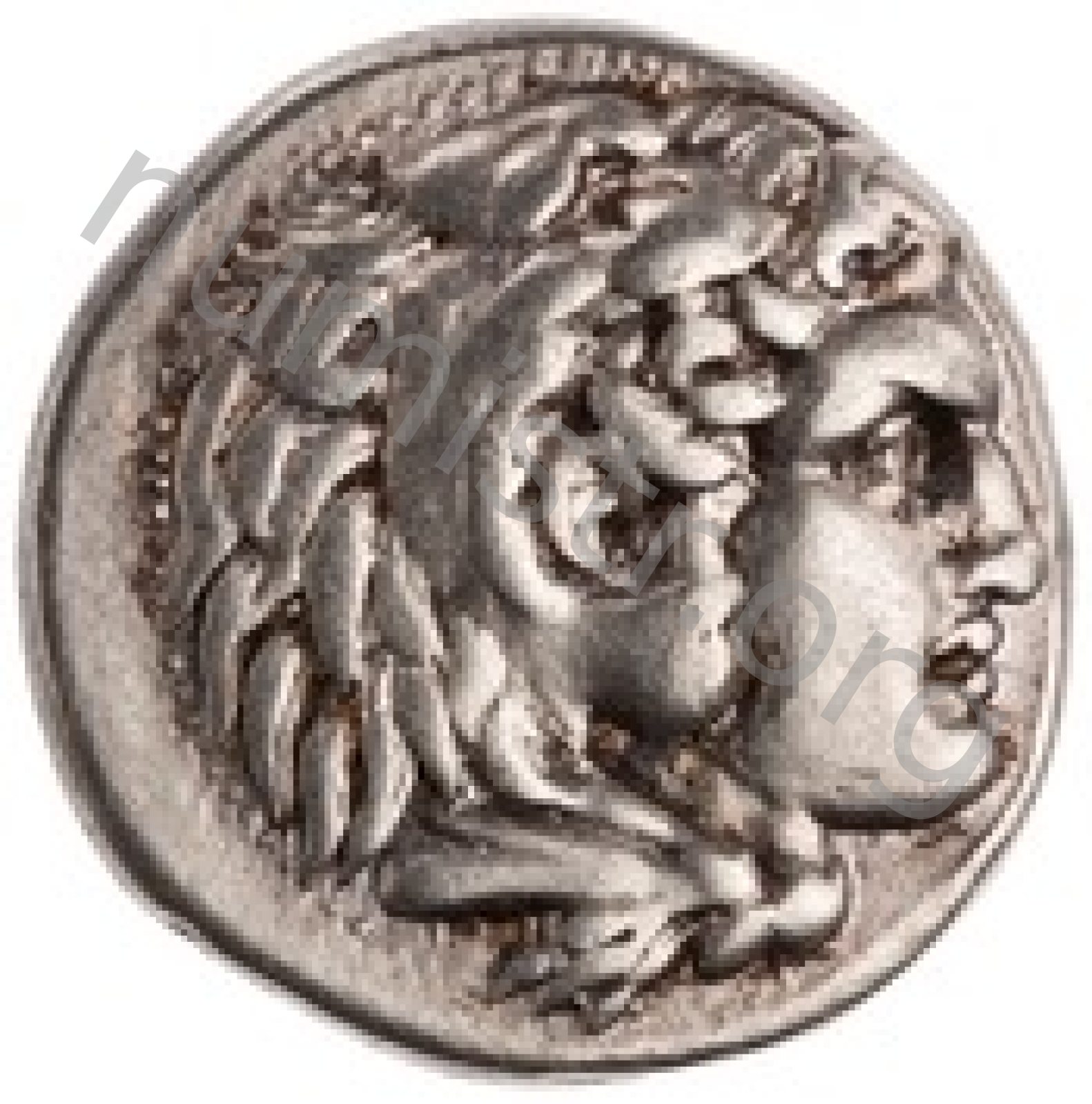 Head of beardless Heracles right wearing lion skin headdress -[en]
