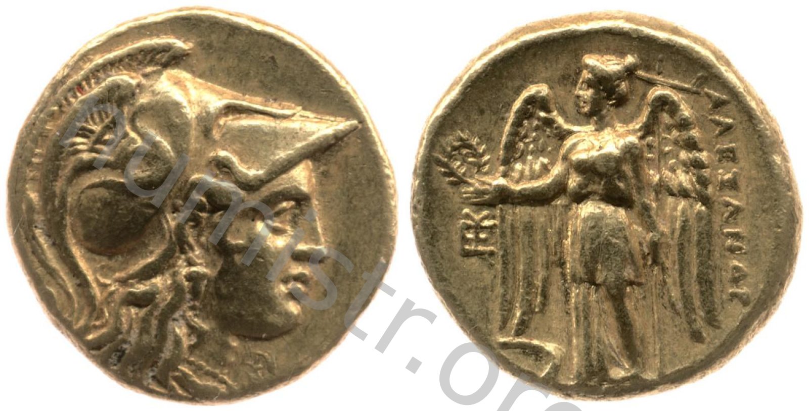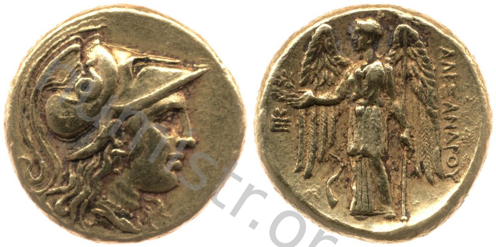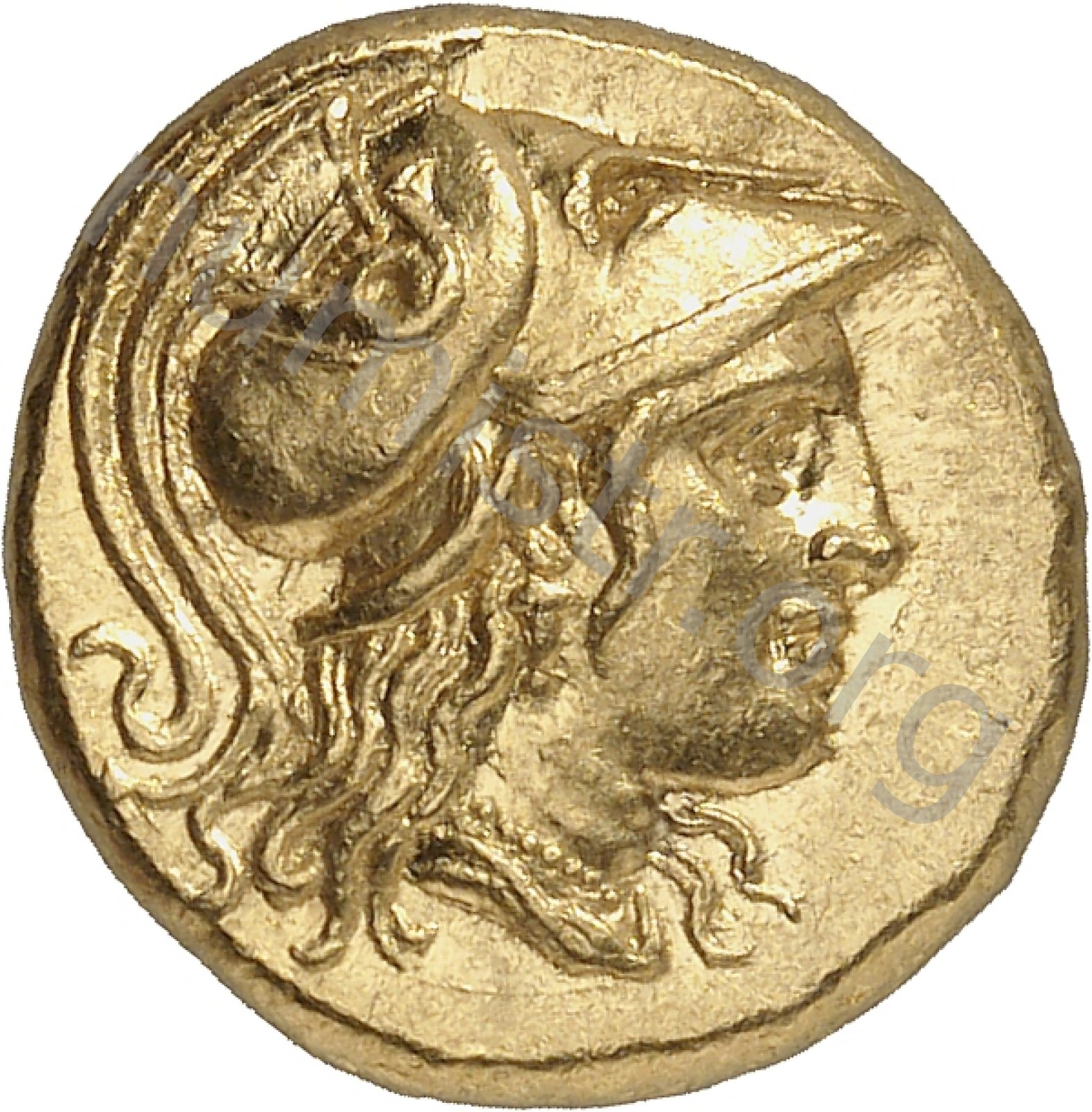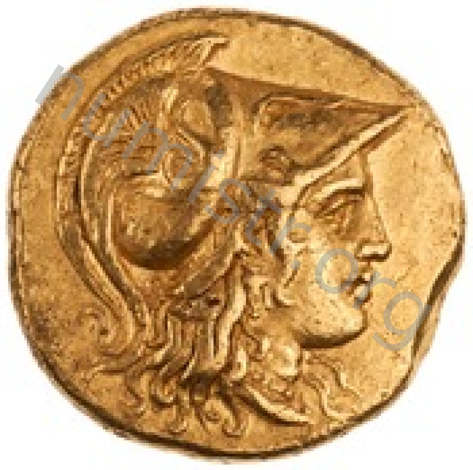 Head of Athena right wearing Corinthian helmet with crest -[en]