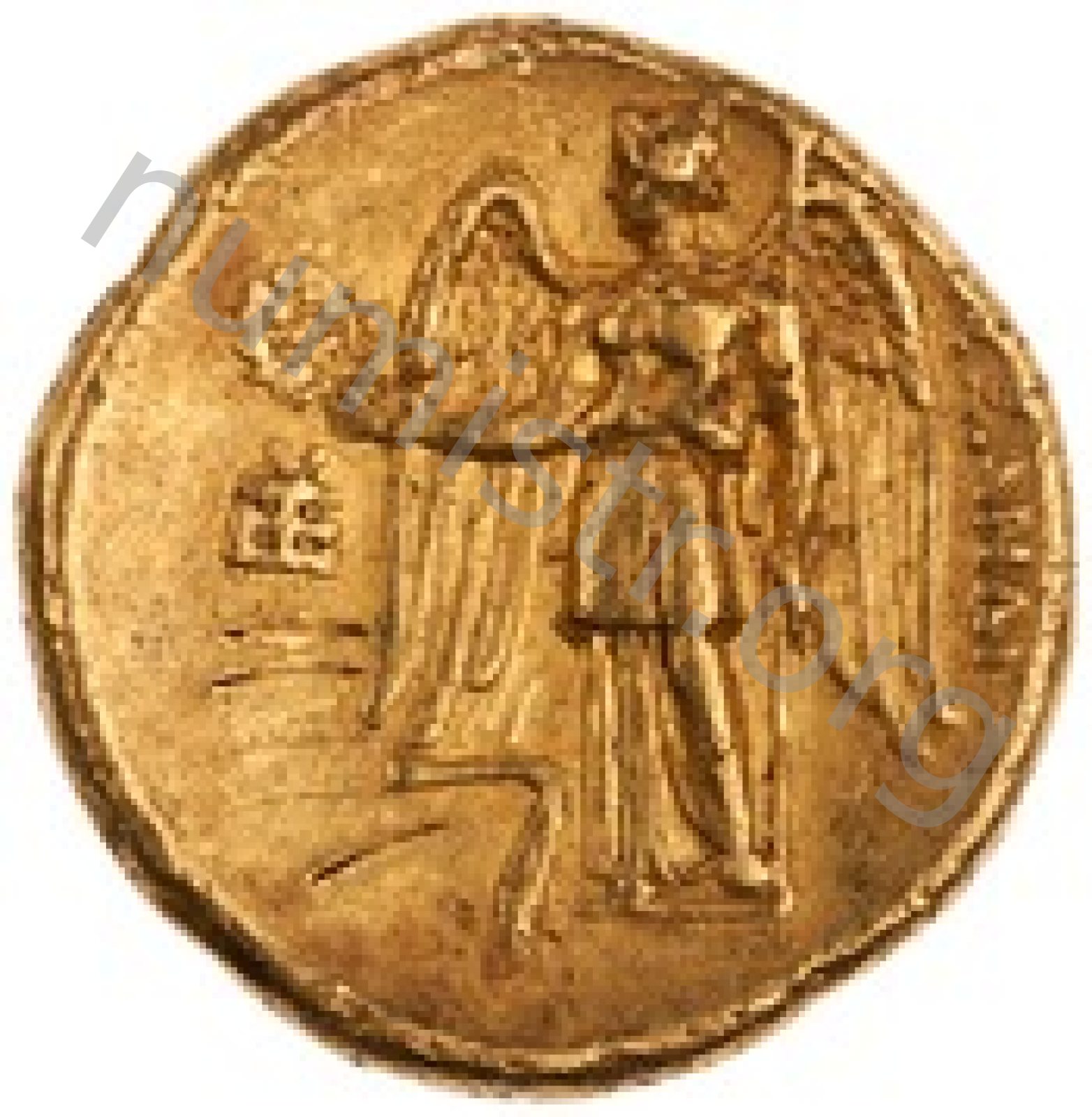 Nike standing left holding wreath in right hand and stylis in her left hand -[en]