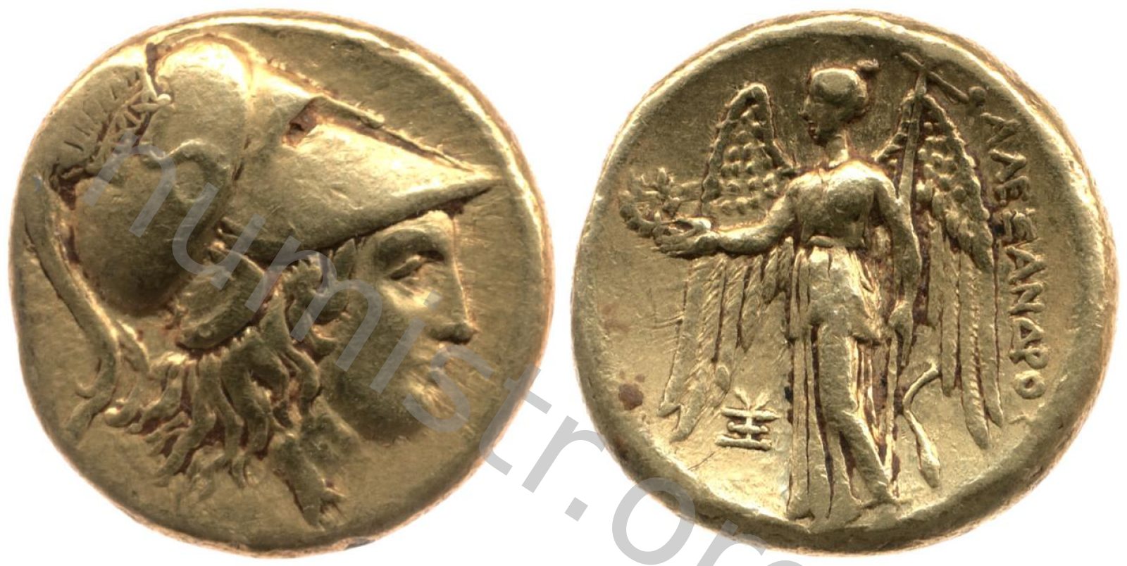 Sağda armalı Korint miğferi takan Athena başı