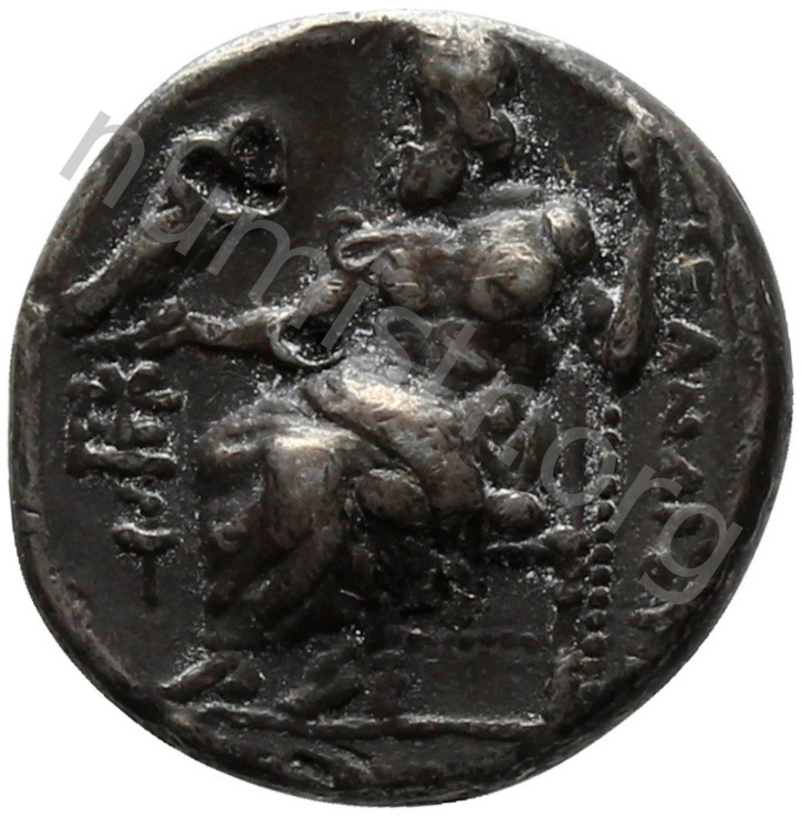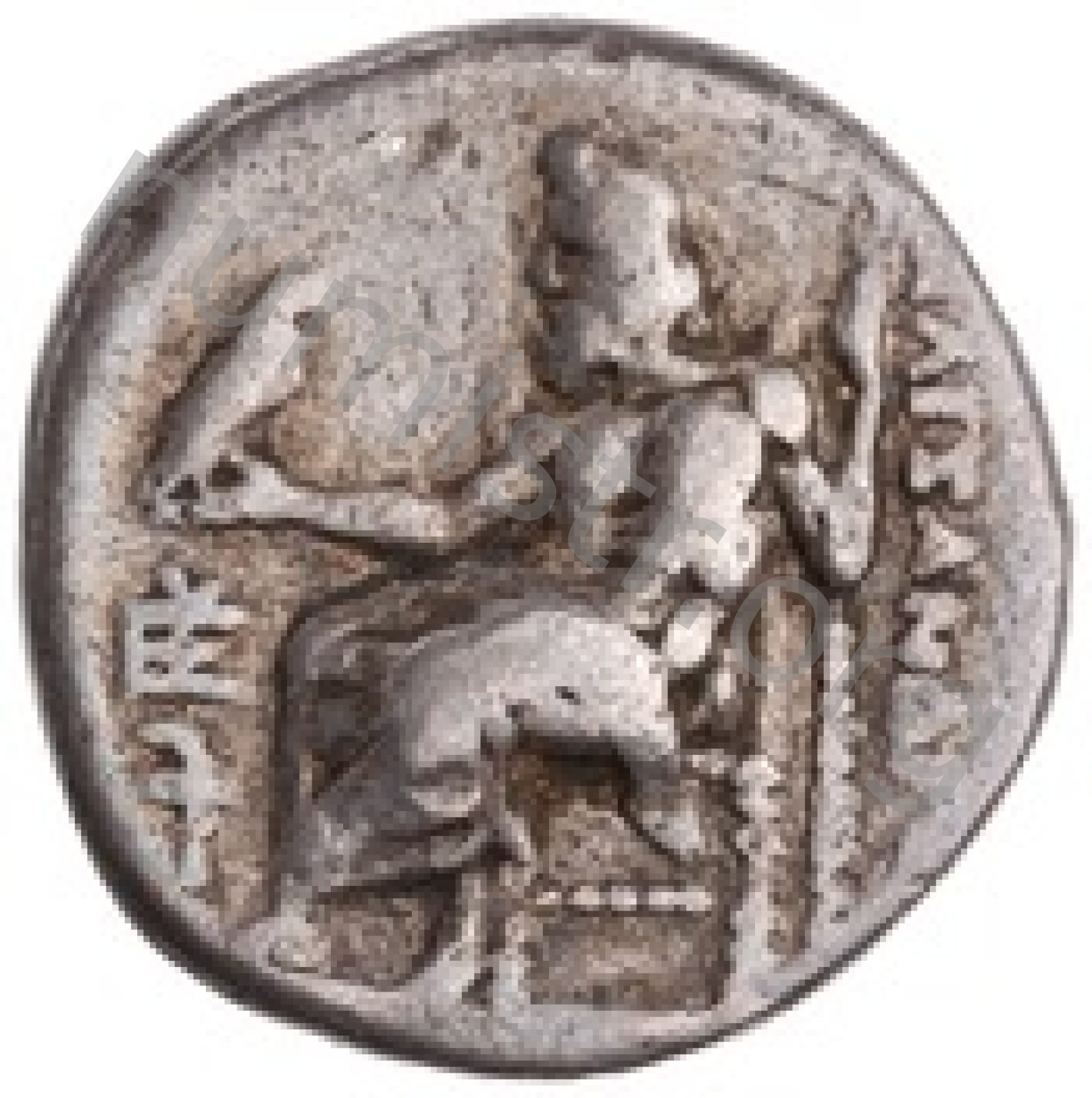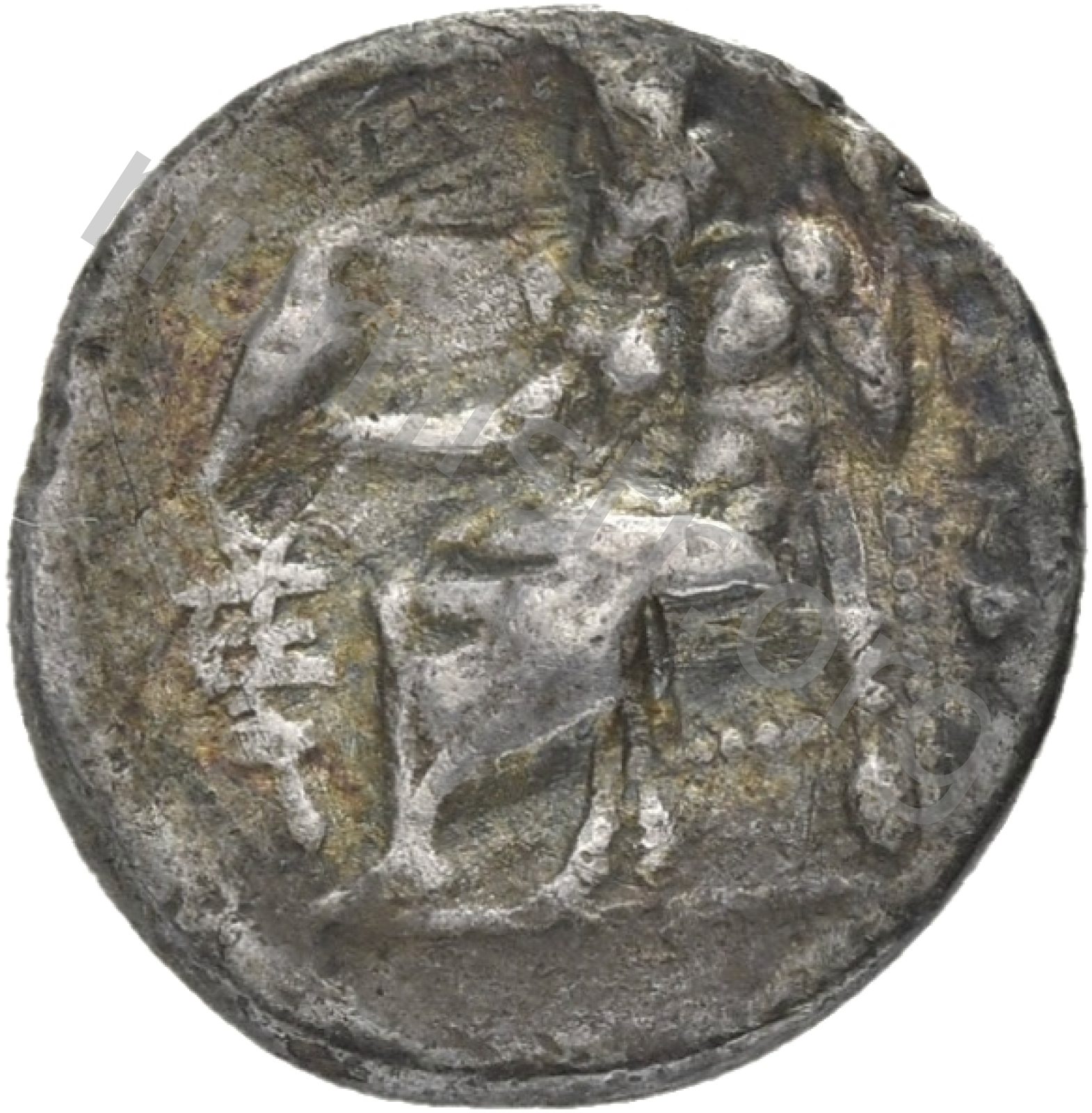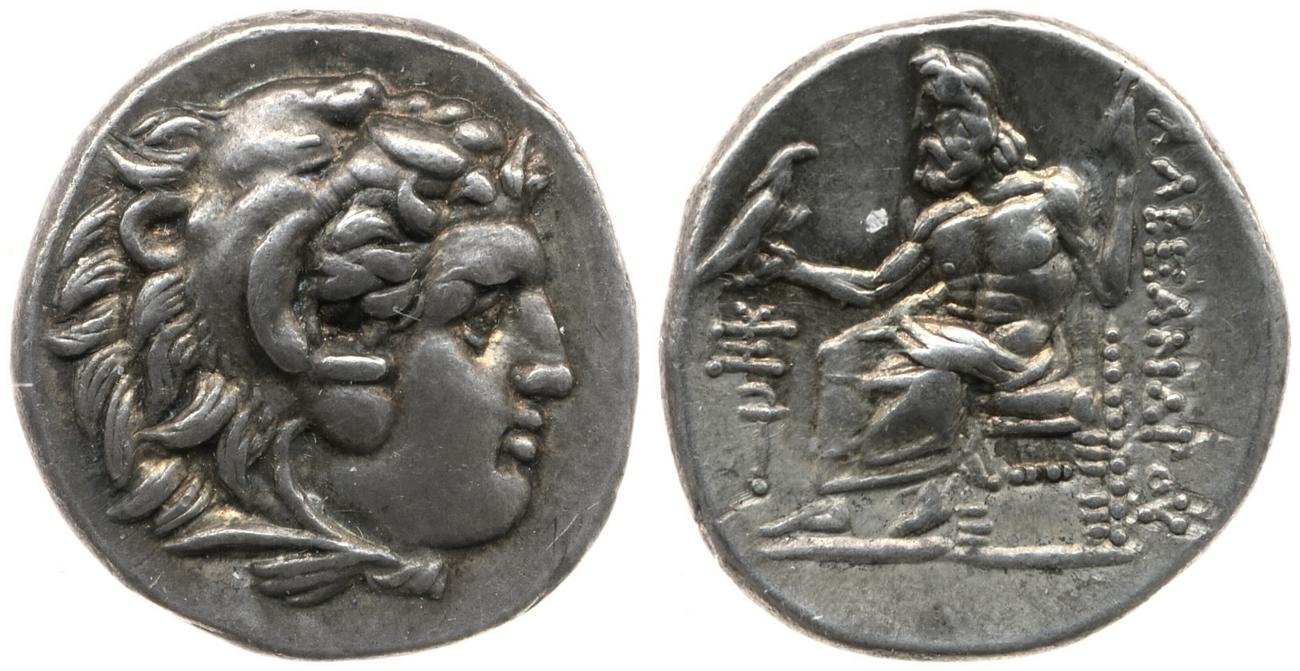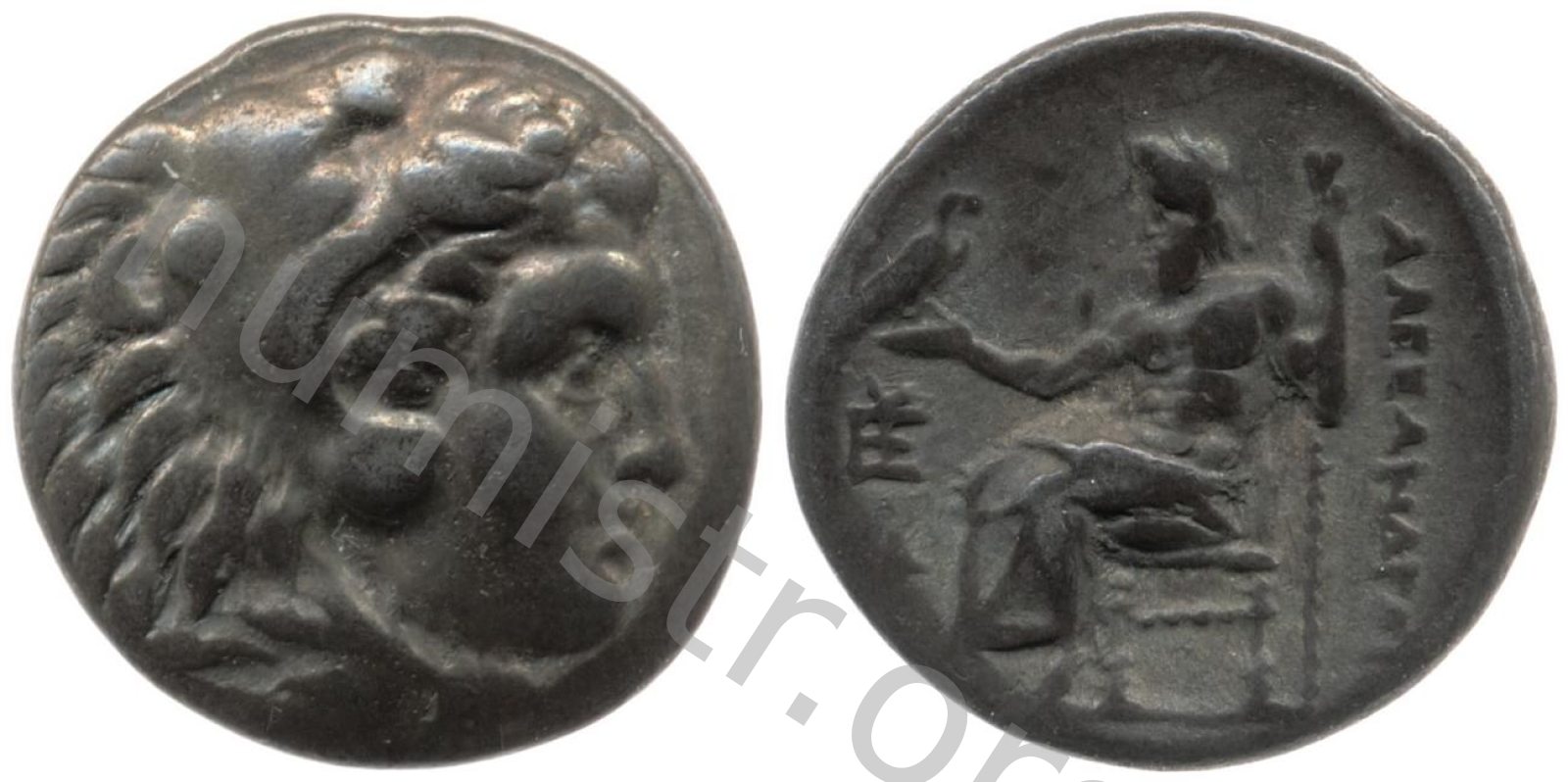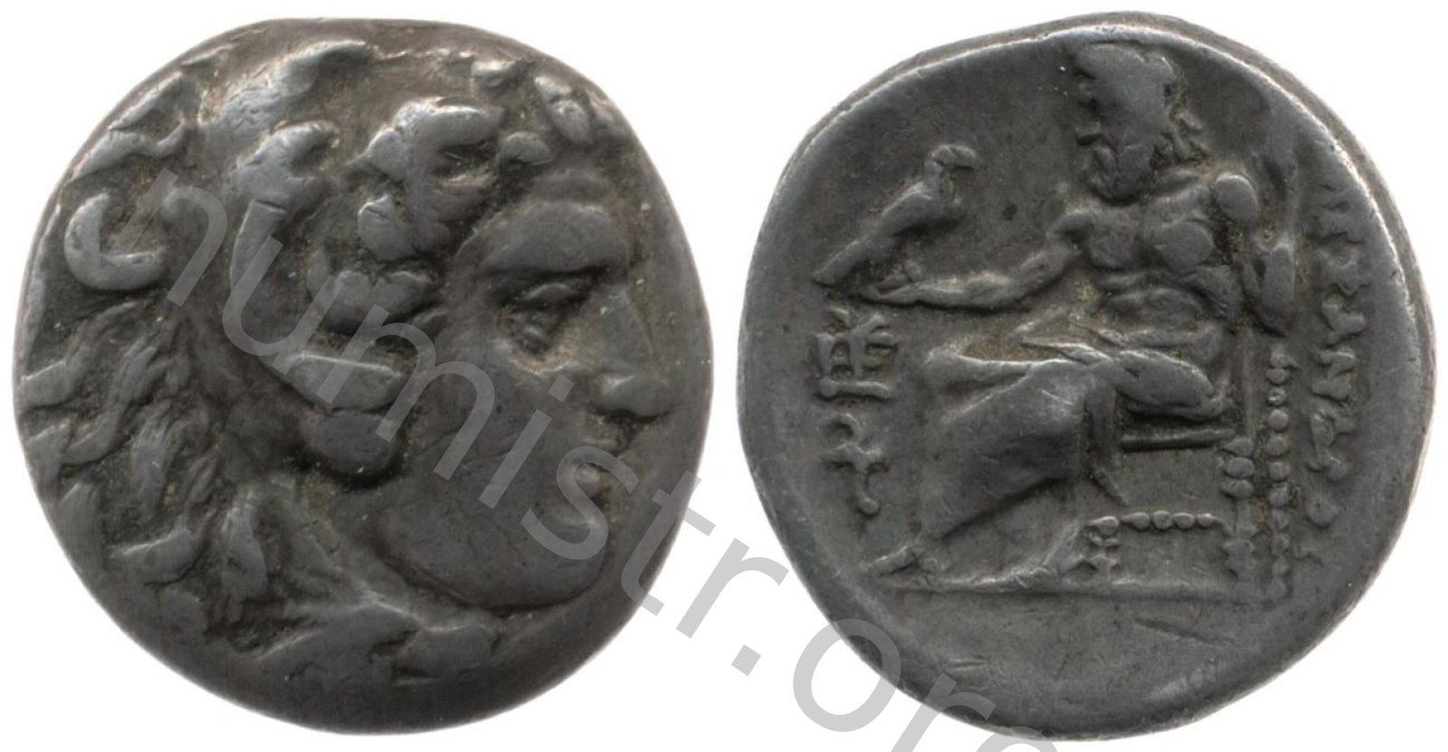 Head of beardless Heracles right wearing lion skin headdress -[en]