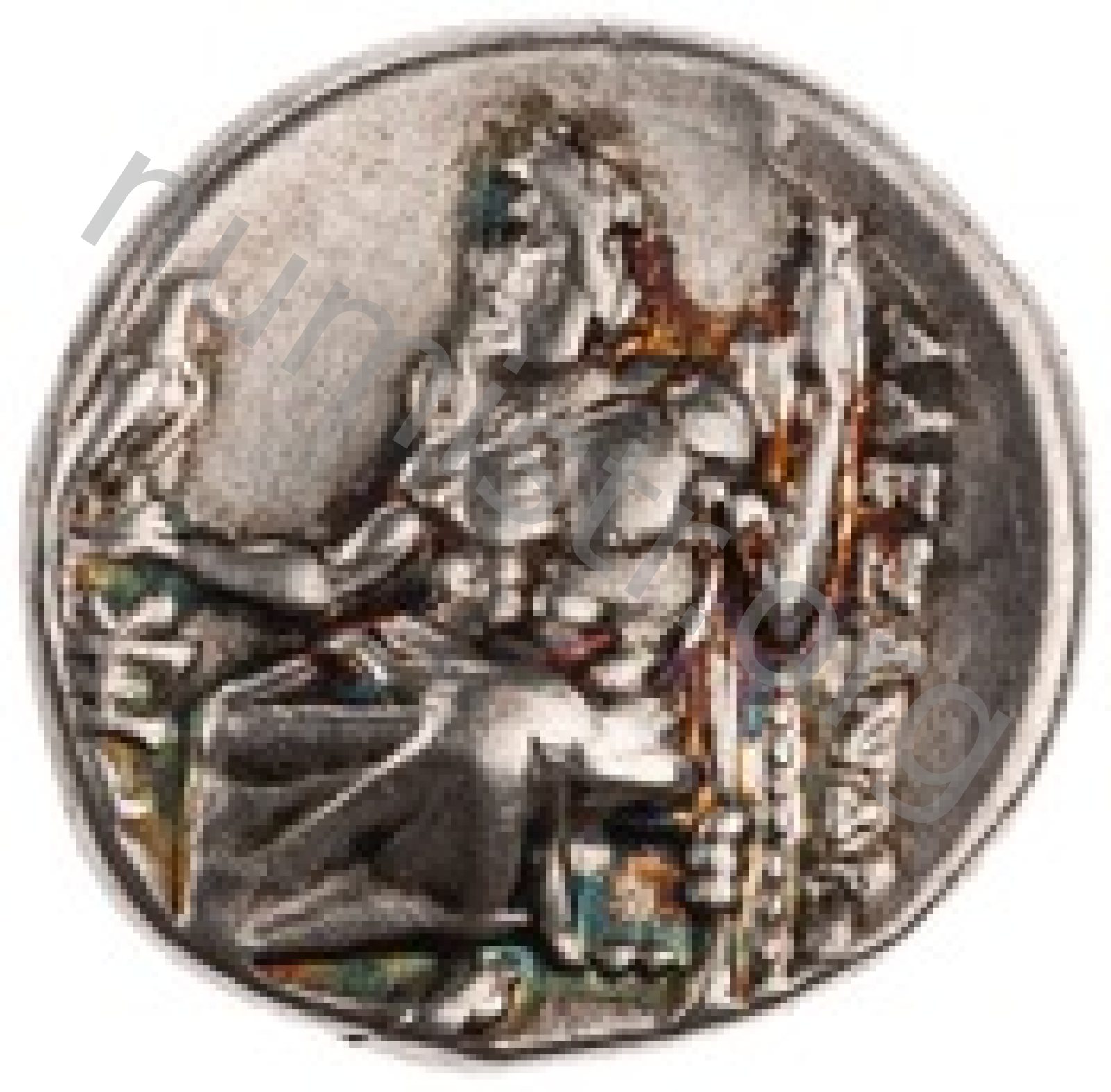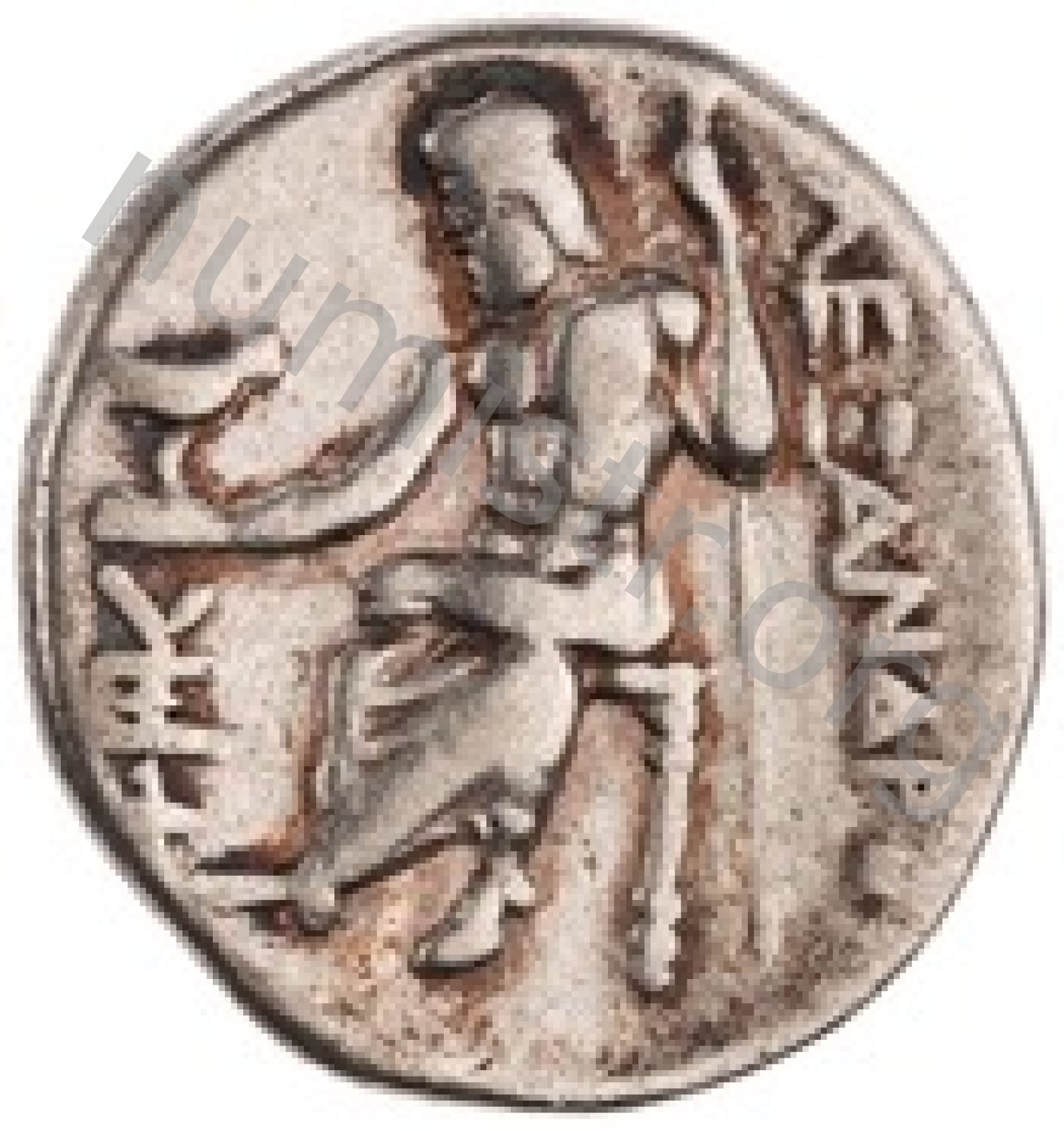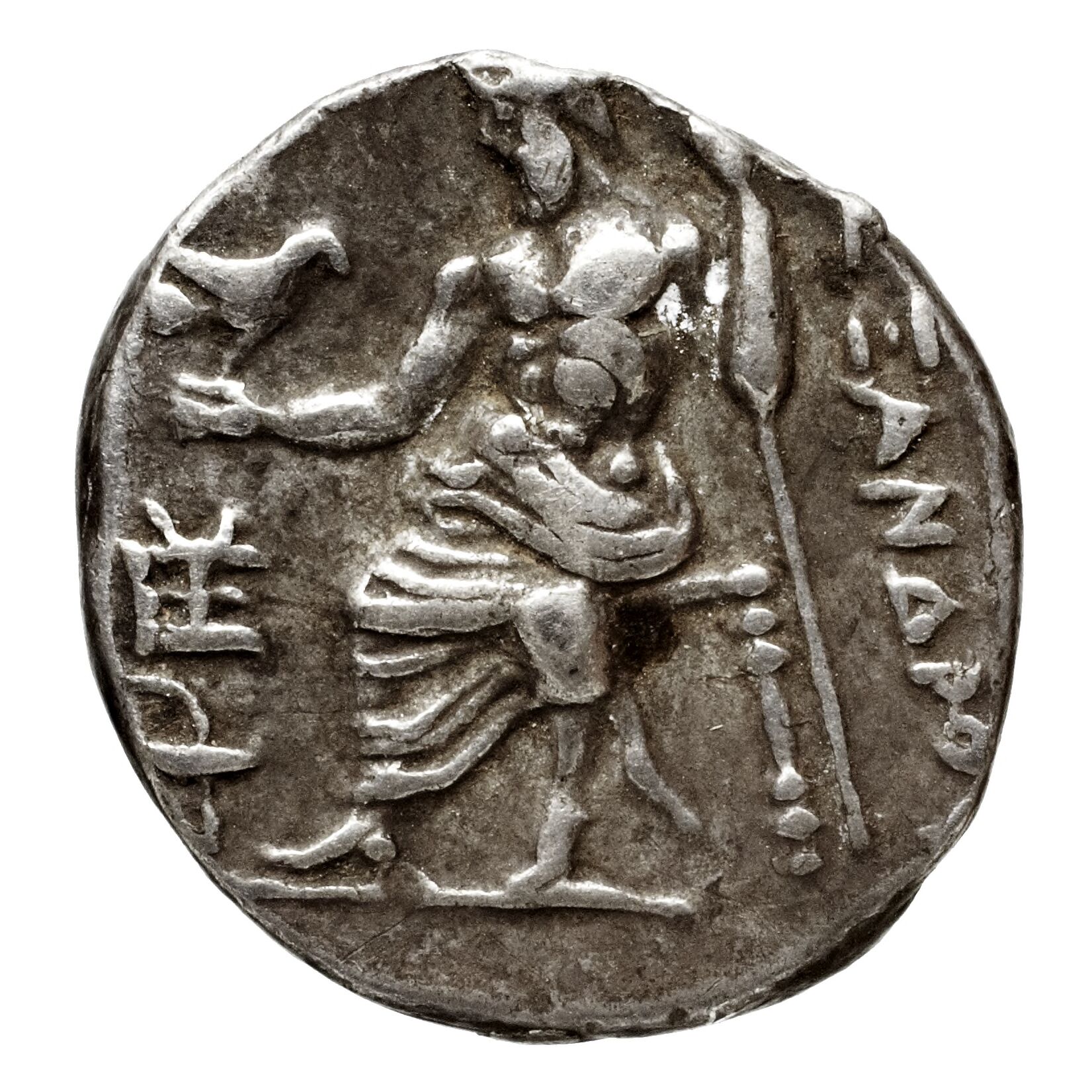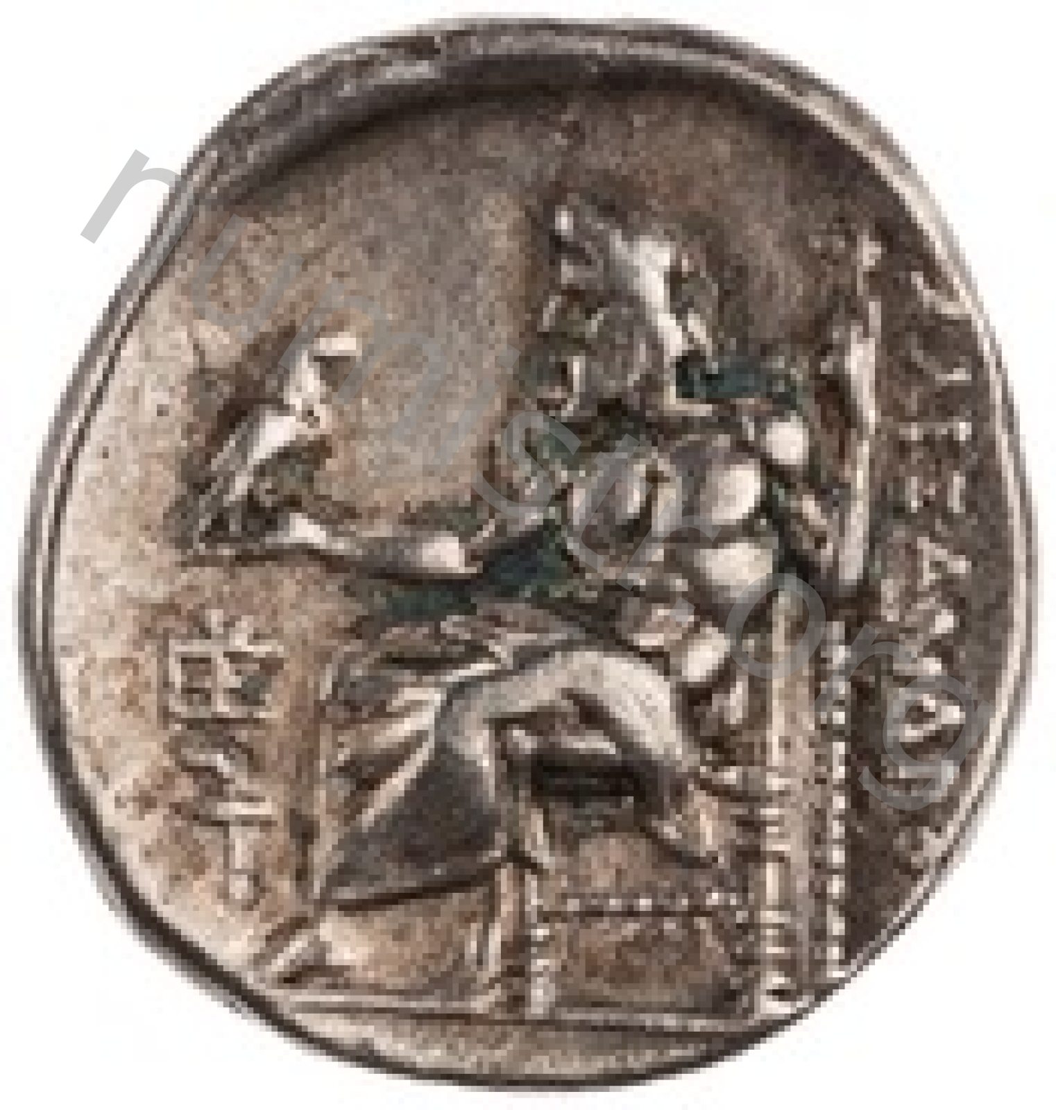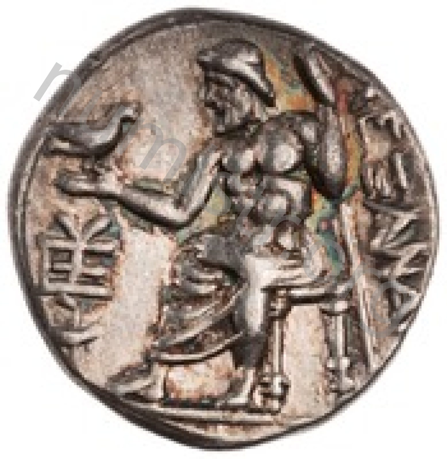 Head of beardless Heracles right wearing lion skin headdress -[en]