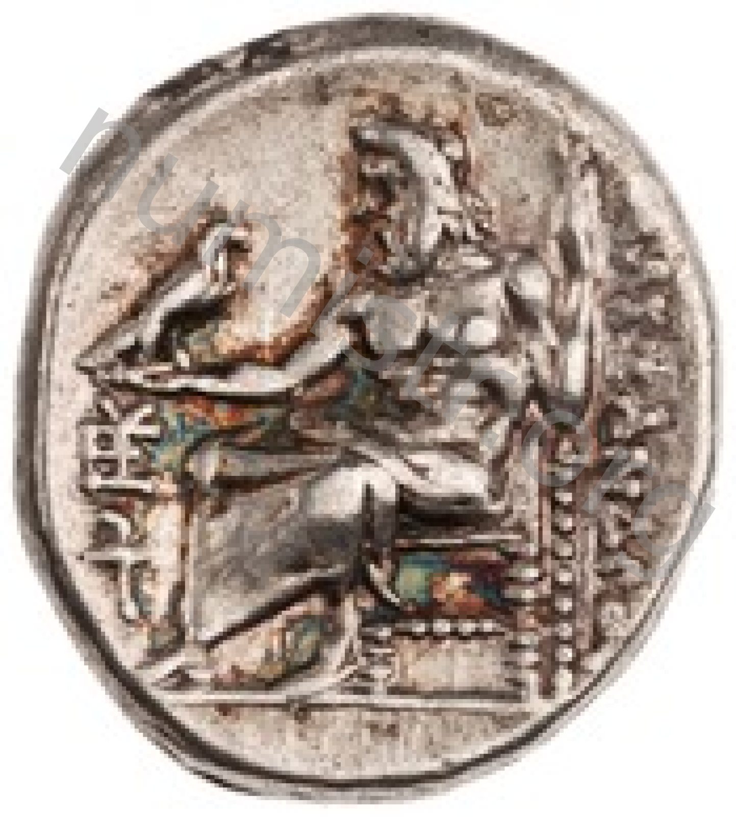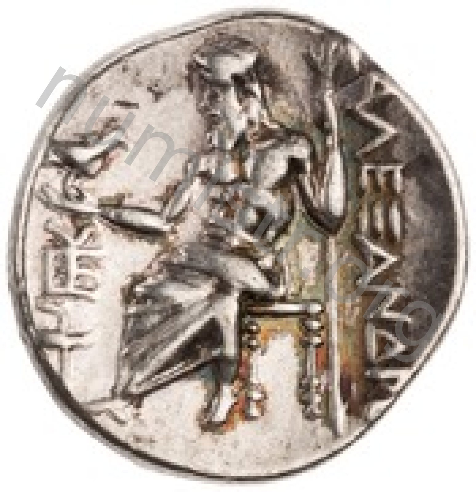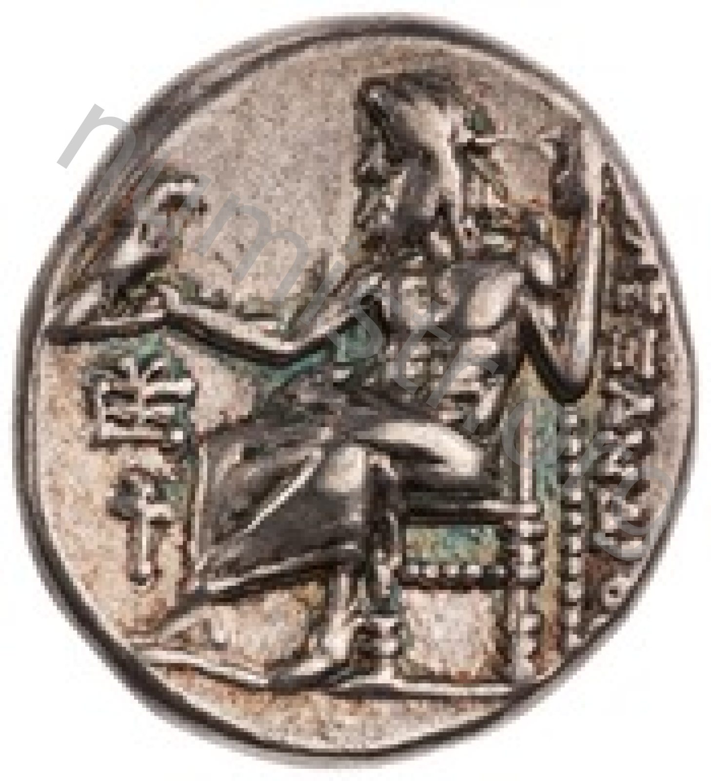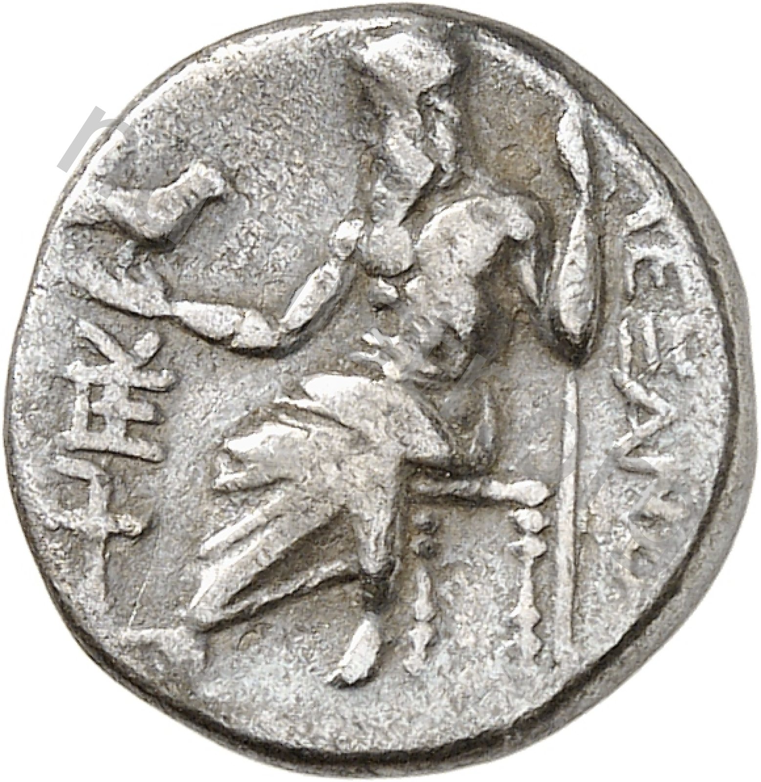 Zeus tabure-tahtta oturuyor sol elinde kartal sağ elinde asa var.