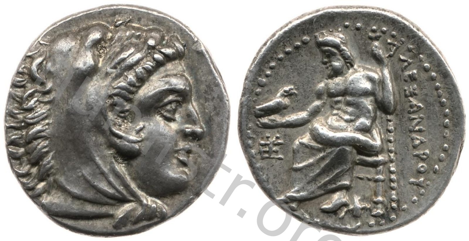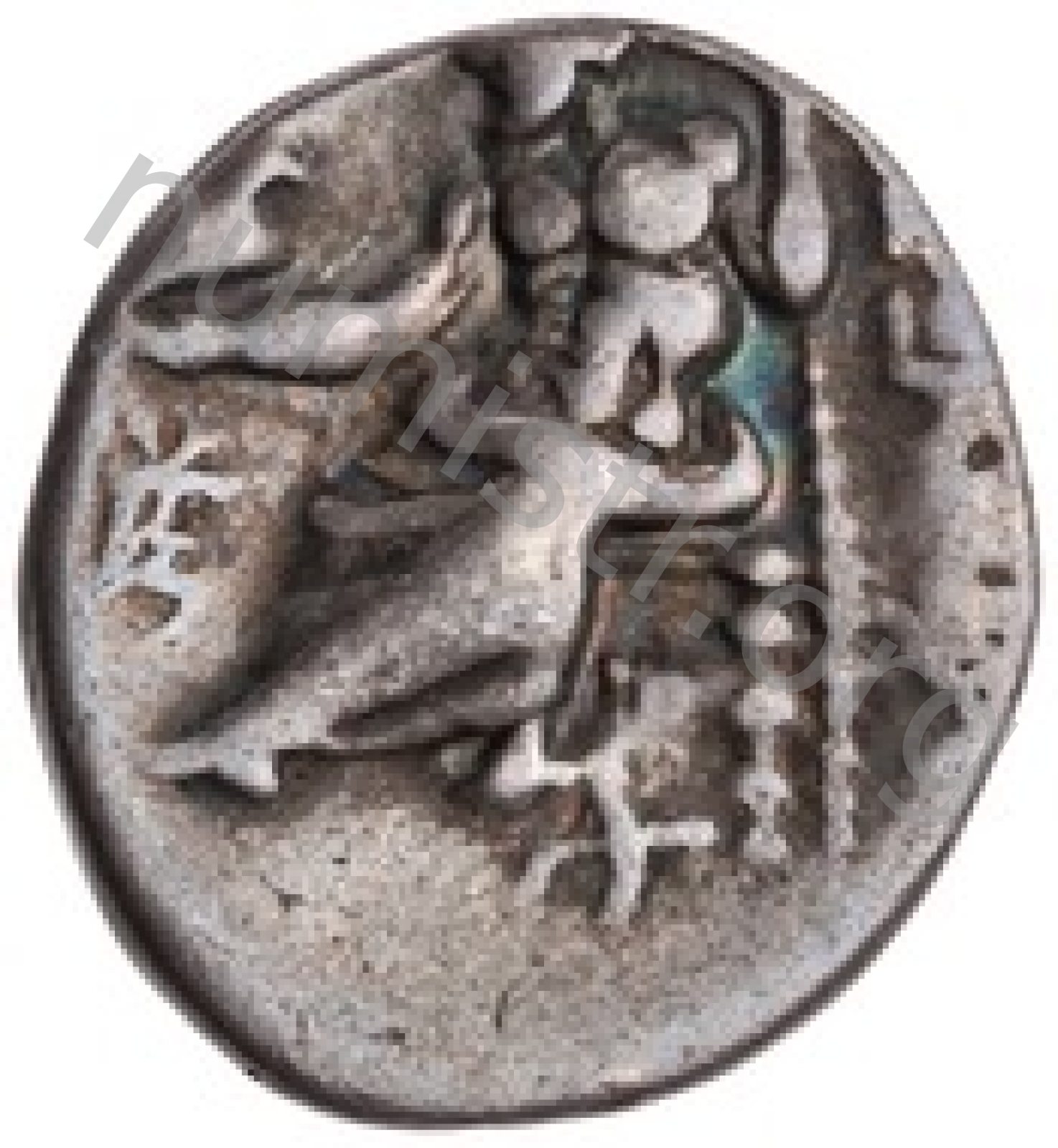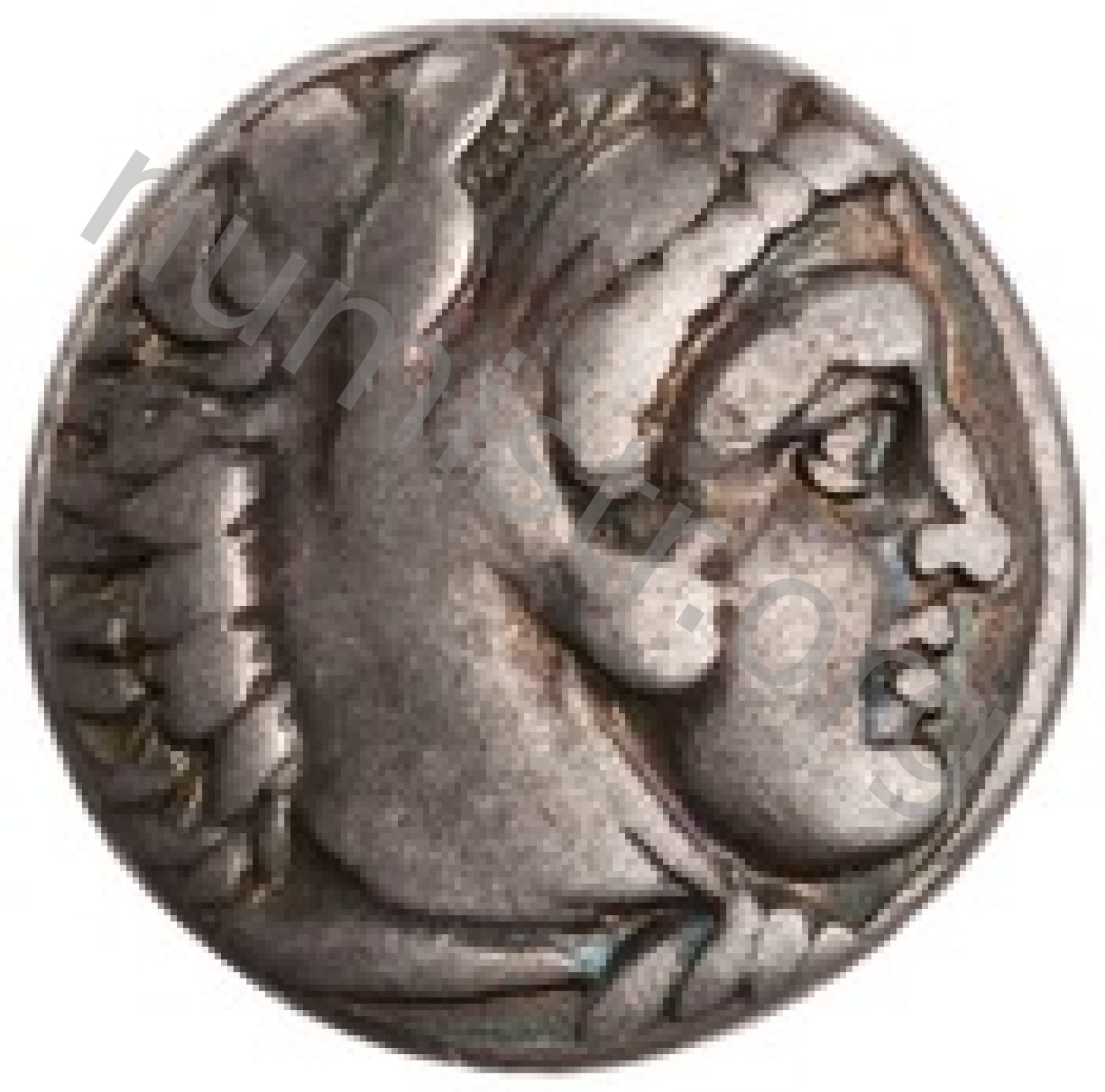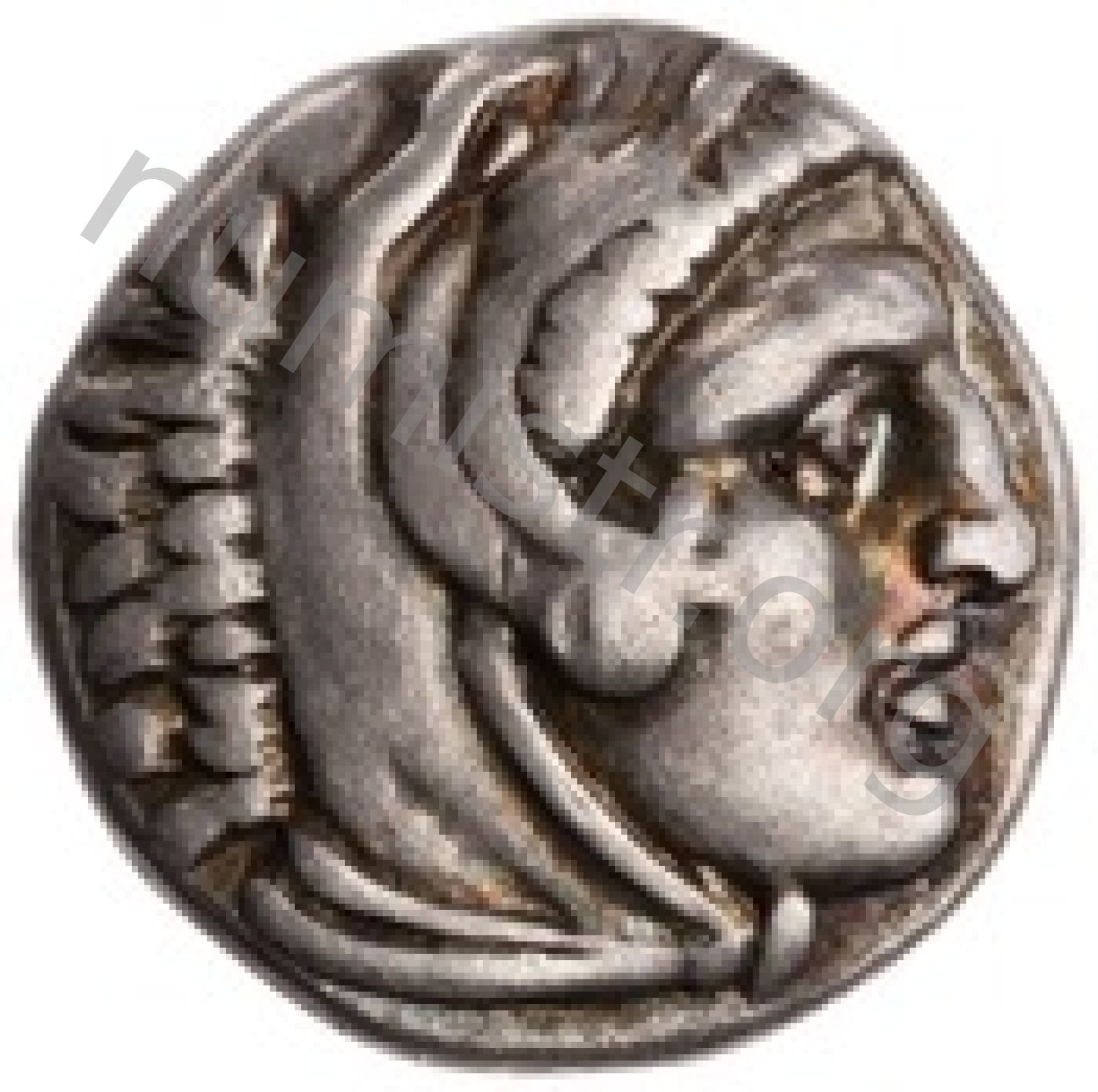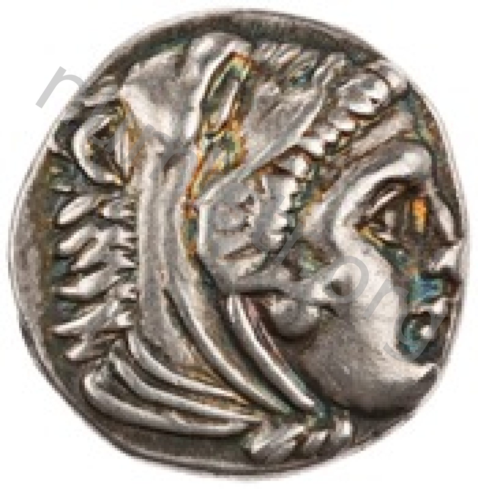 Head of beardless Heracles right wearing lion skin headdress -[en]