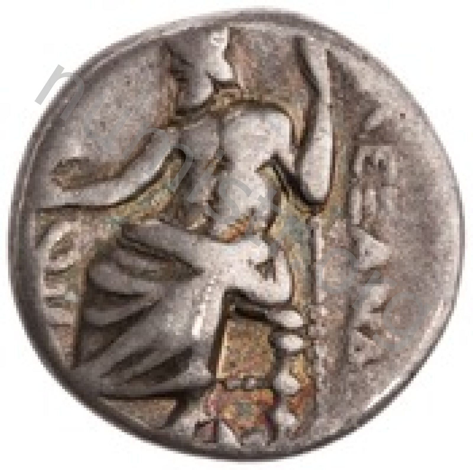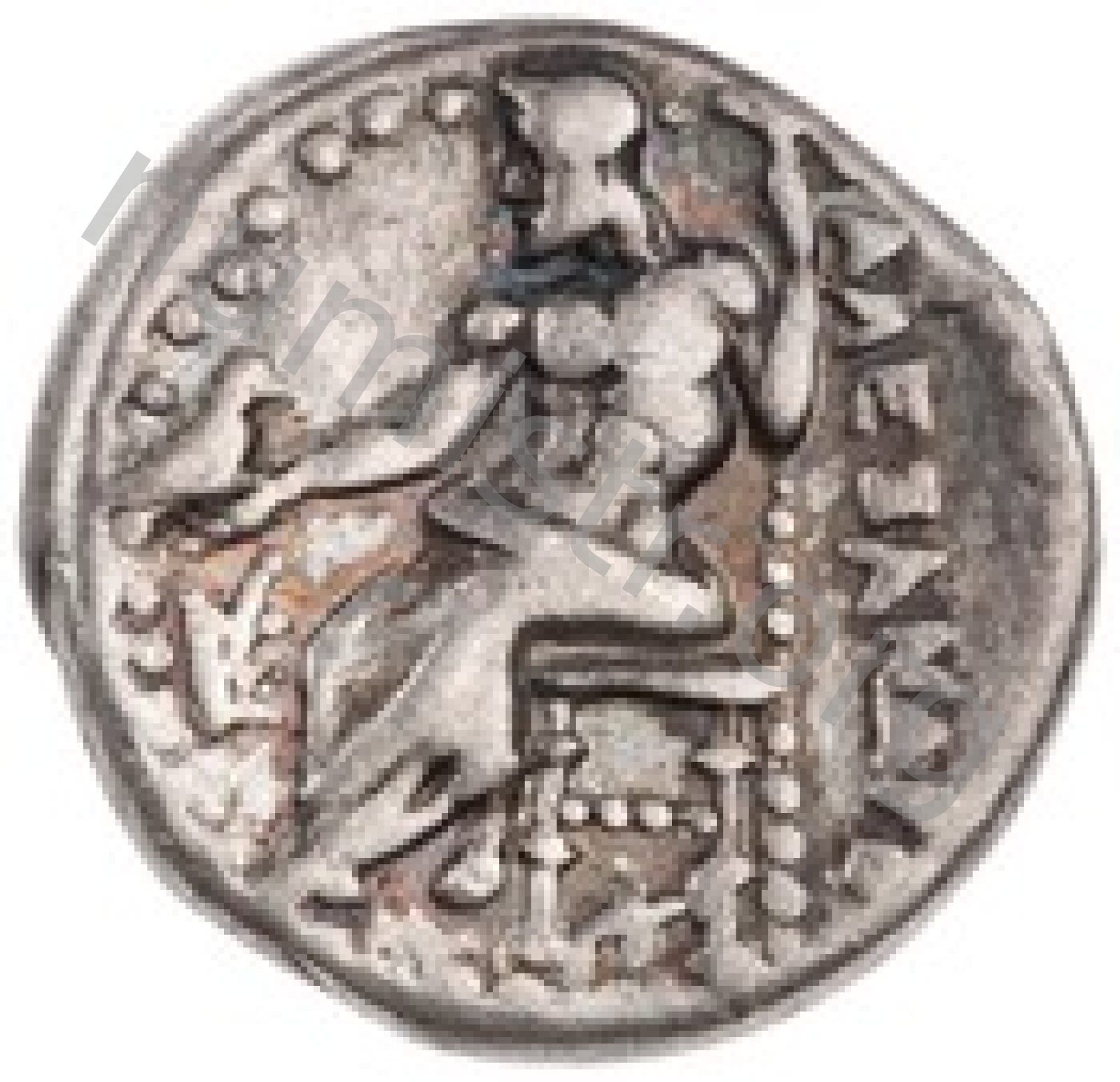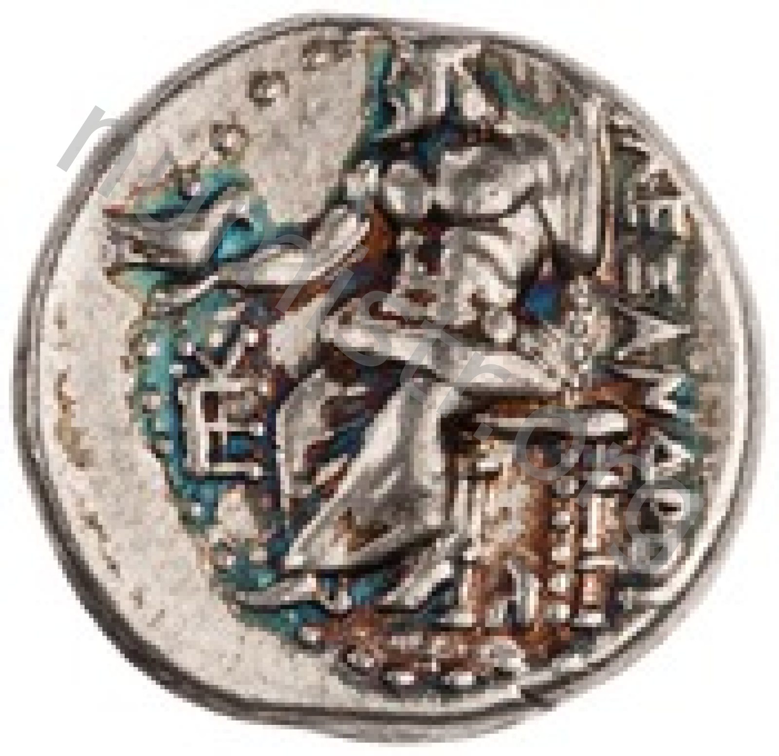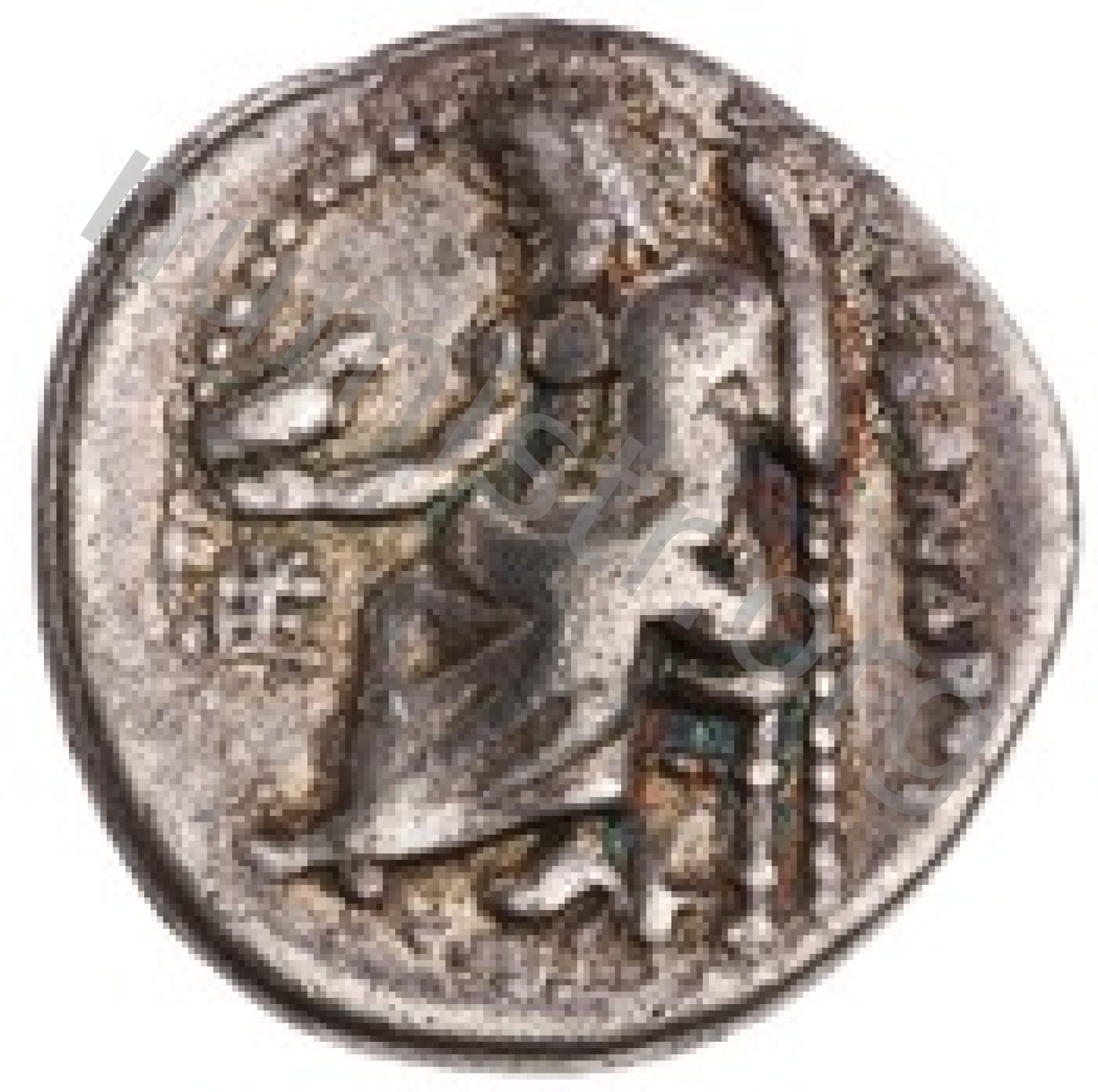 Zeus tabure-tahtta oturuyor sol elinde kartal sağ elinde asa var.