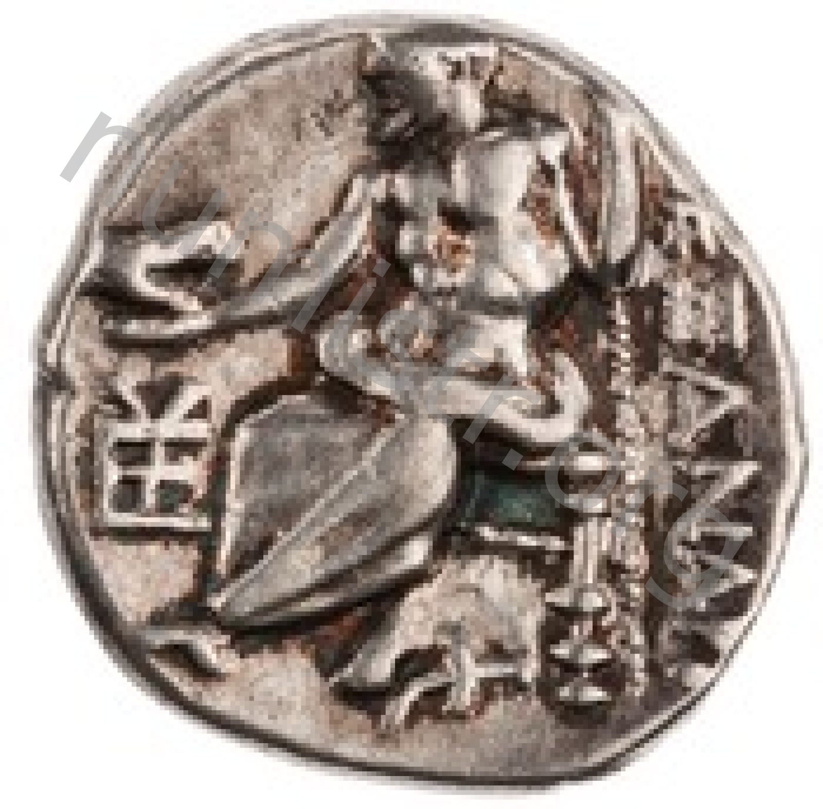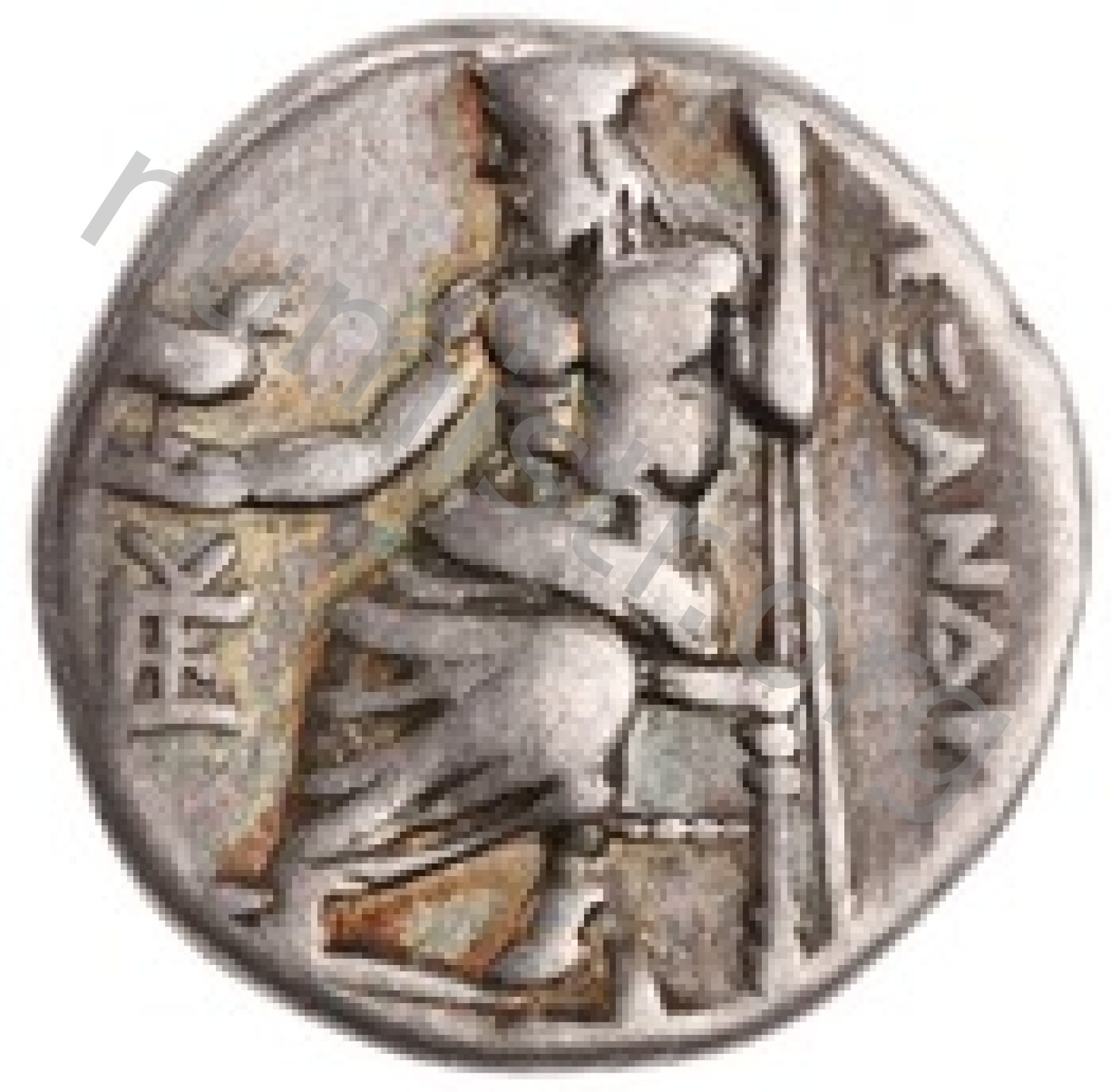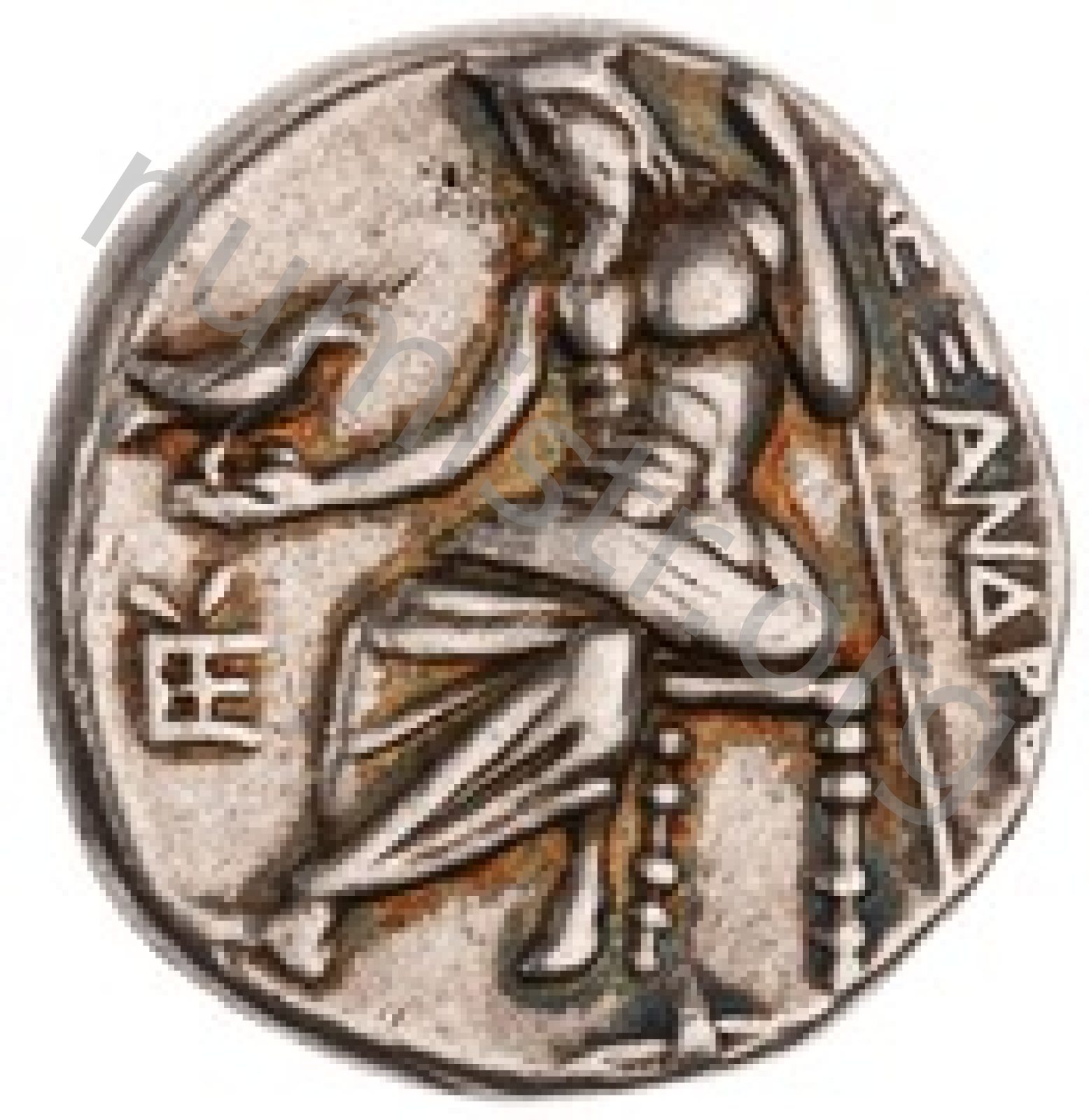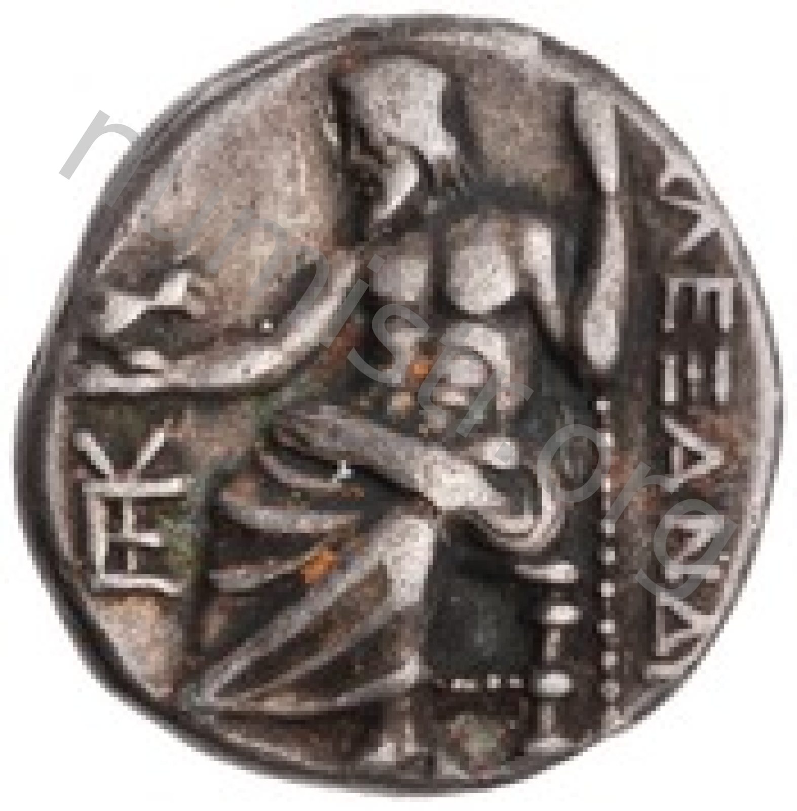 Zeus tabure-tahtta oturuyor sol elinde kartal sağ elinde asa var.