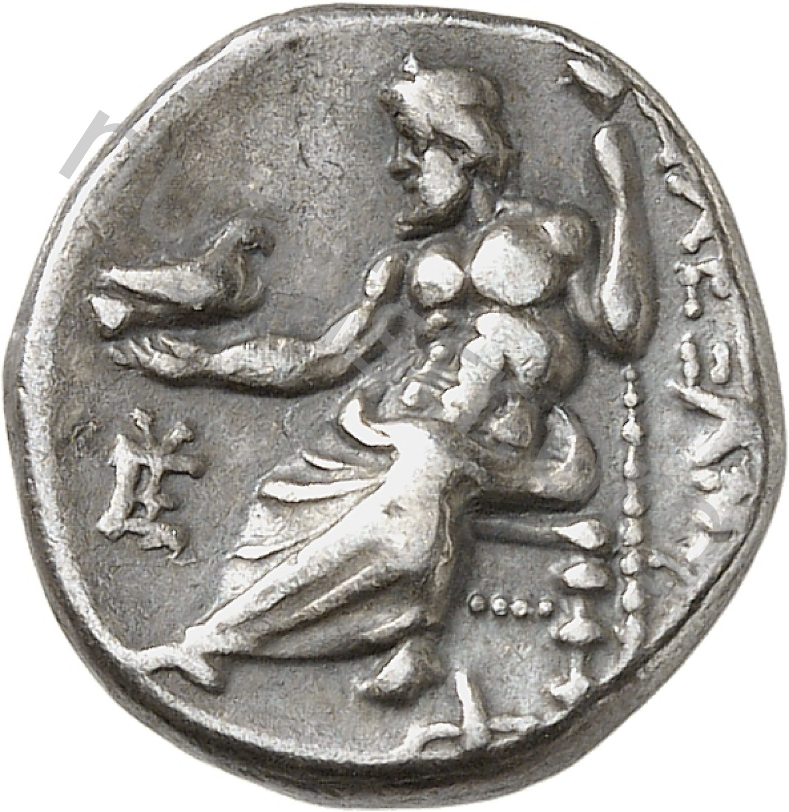 Zeus seated on stool-throne left eagle on outstretched right hand sceptre in left hand -[en]