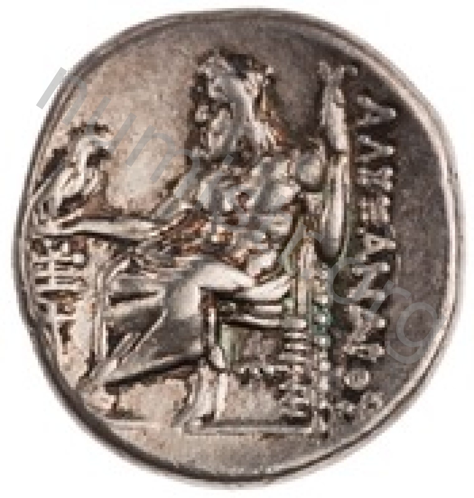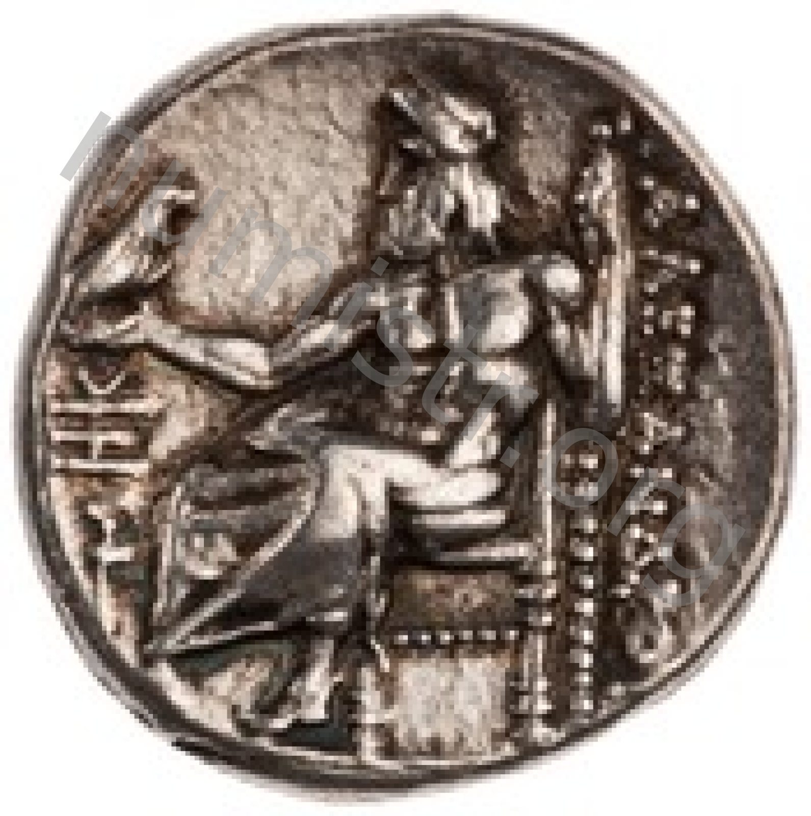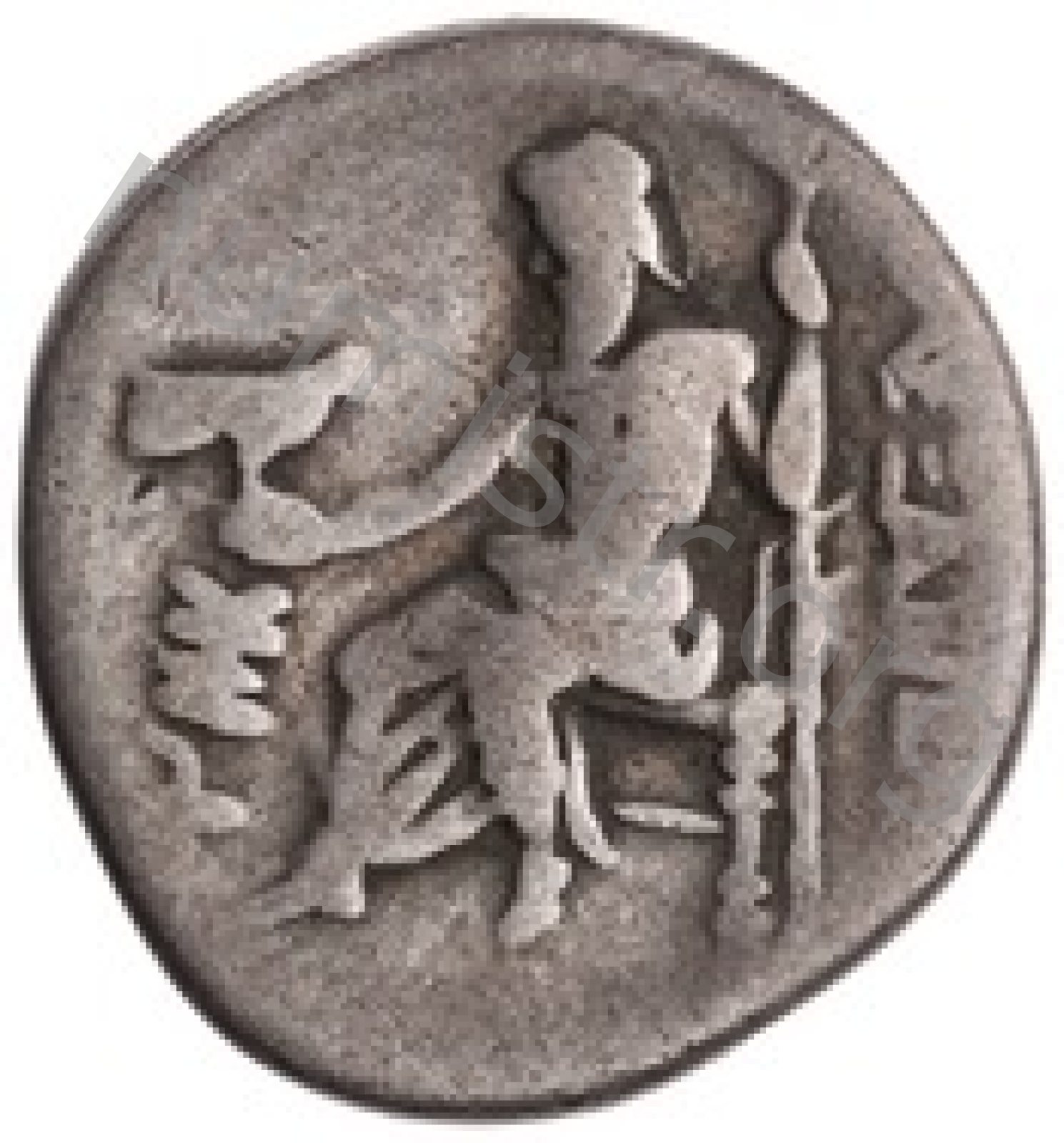 Zeus tabure-tahtta oturuyor sol elinde kartal sağ elinde asa var.