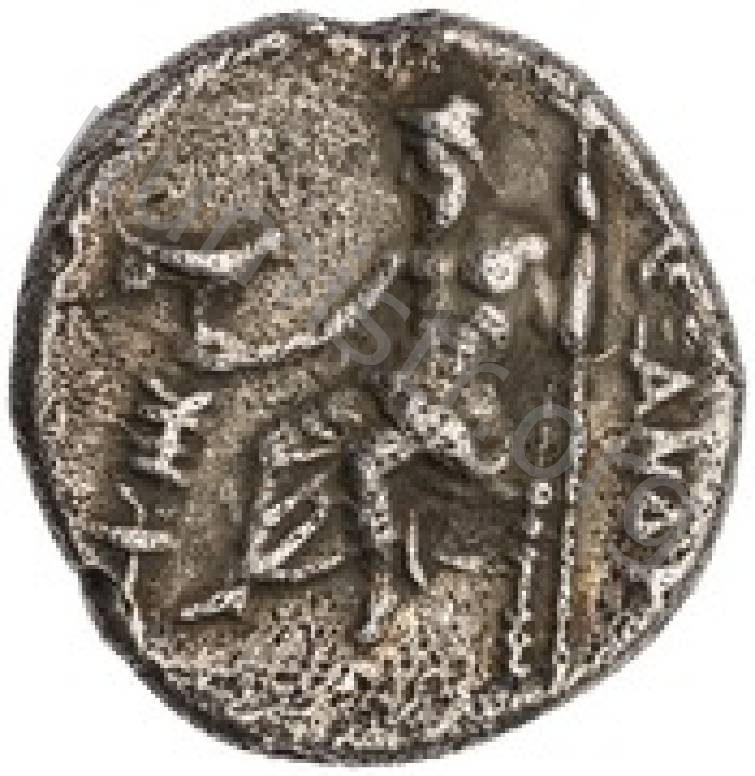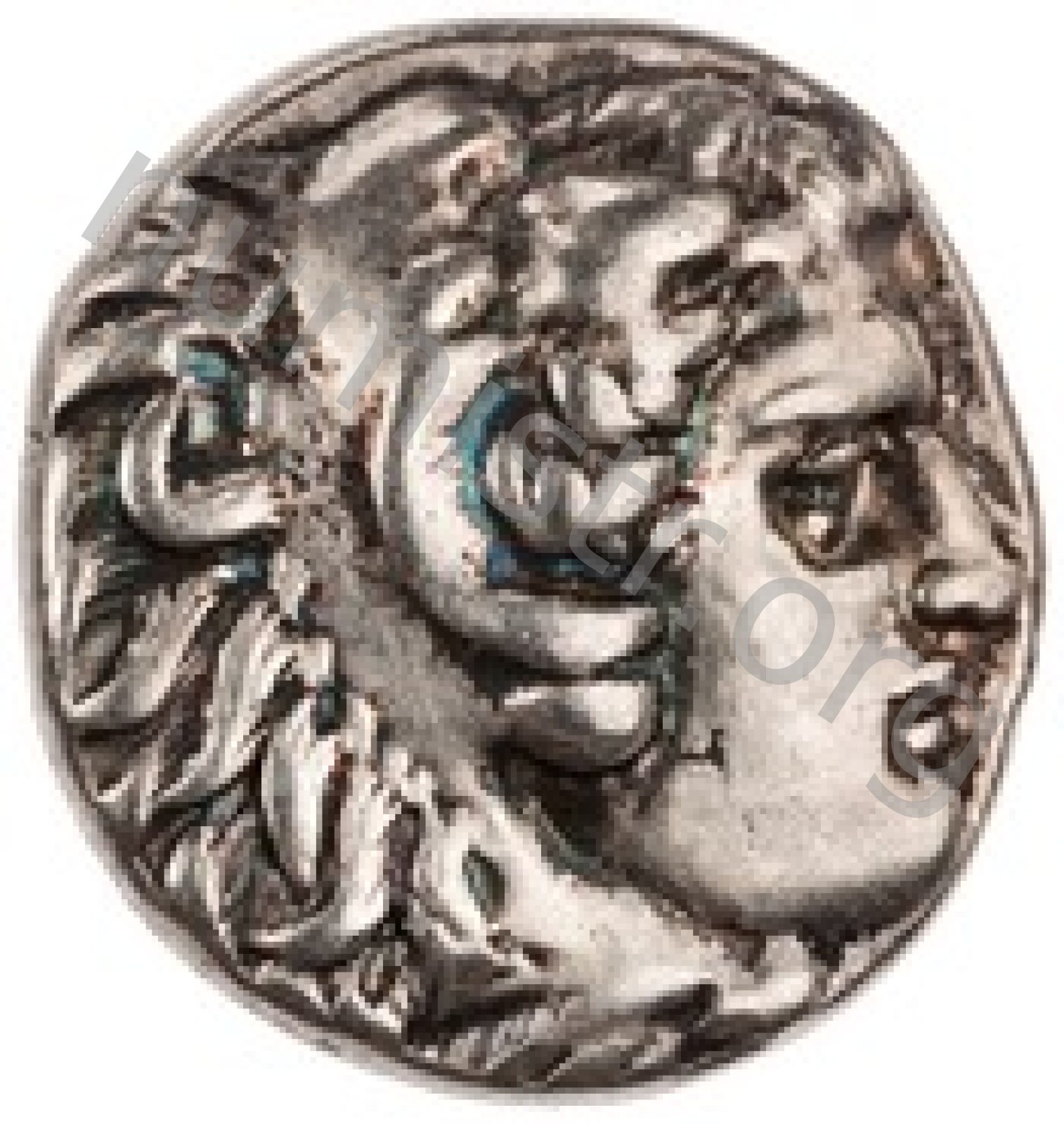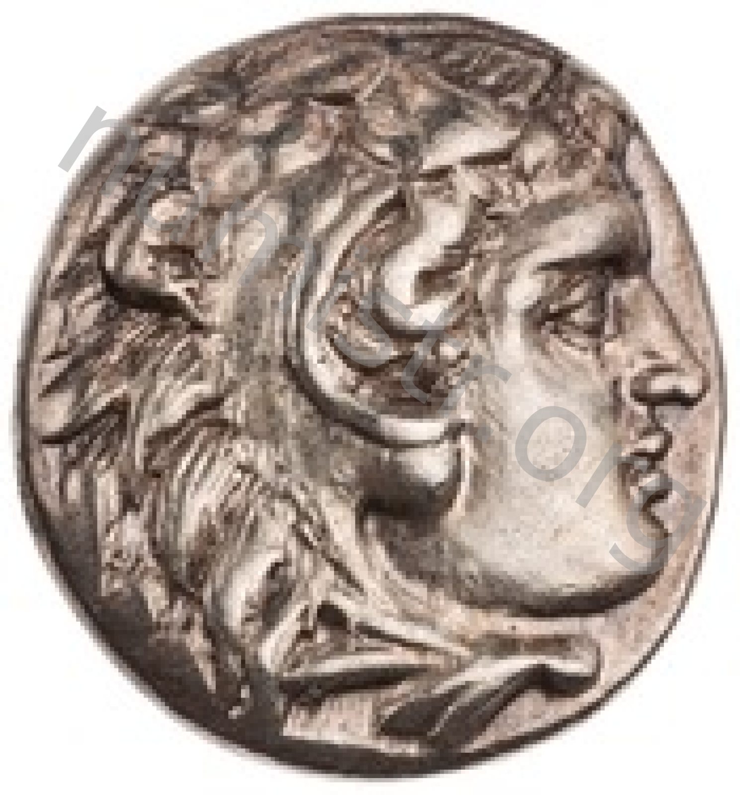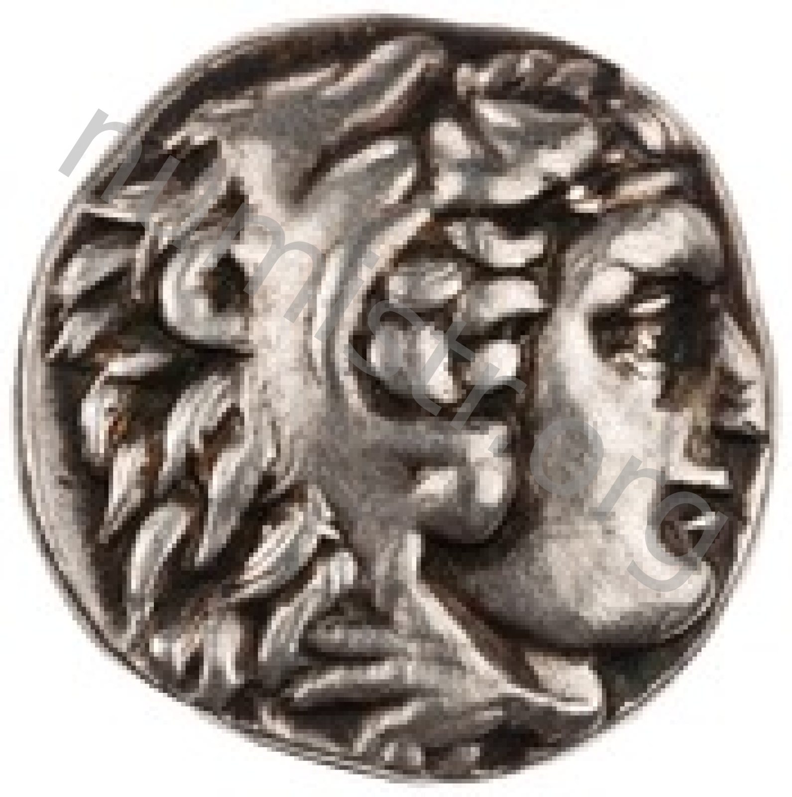 Head of beardless Heracles right wearing lion skin headdress -[en]