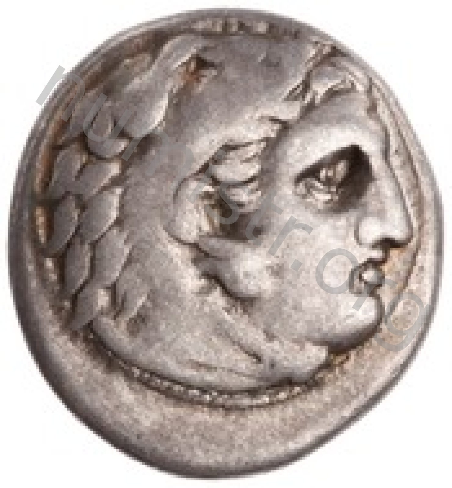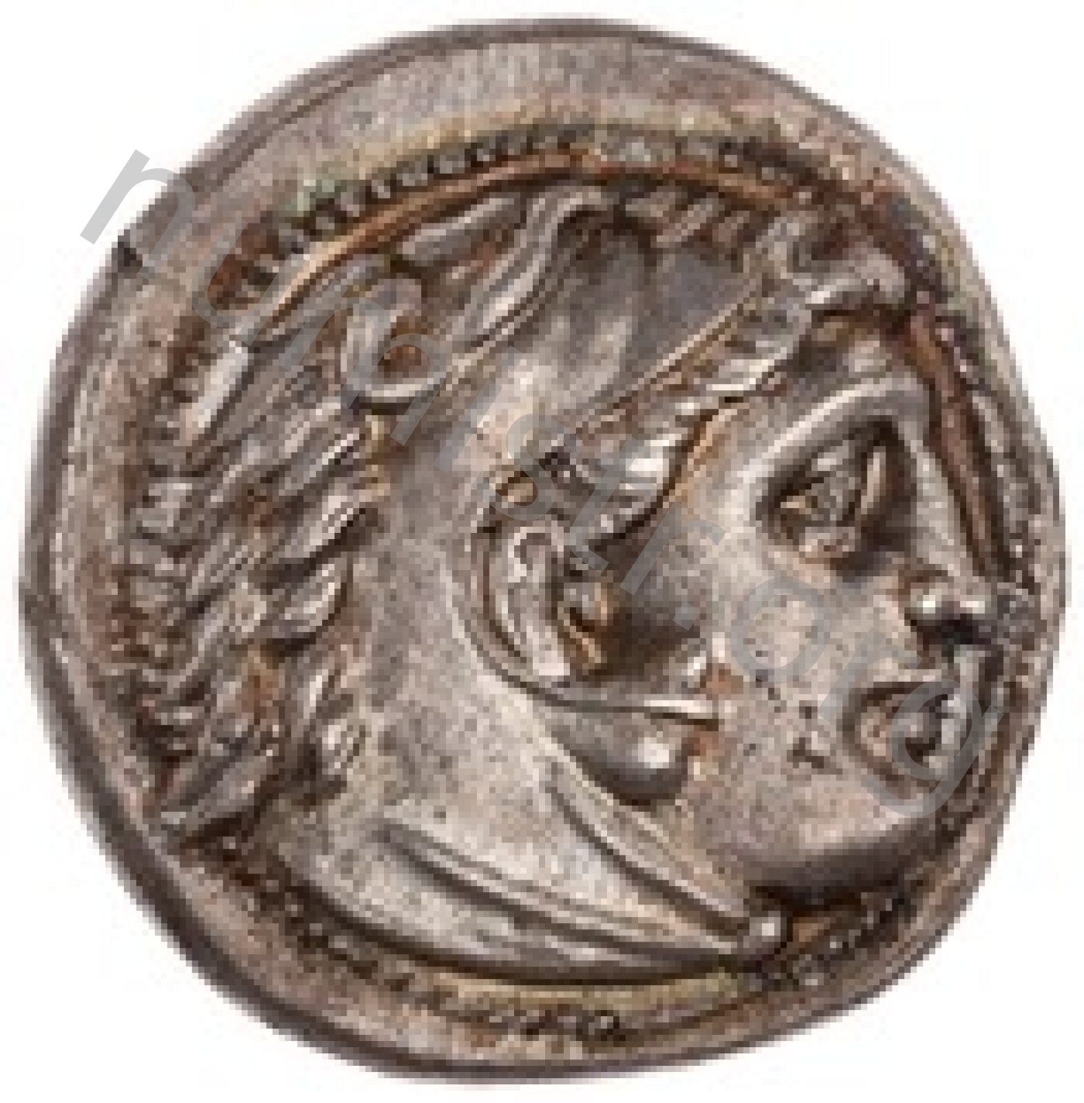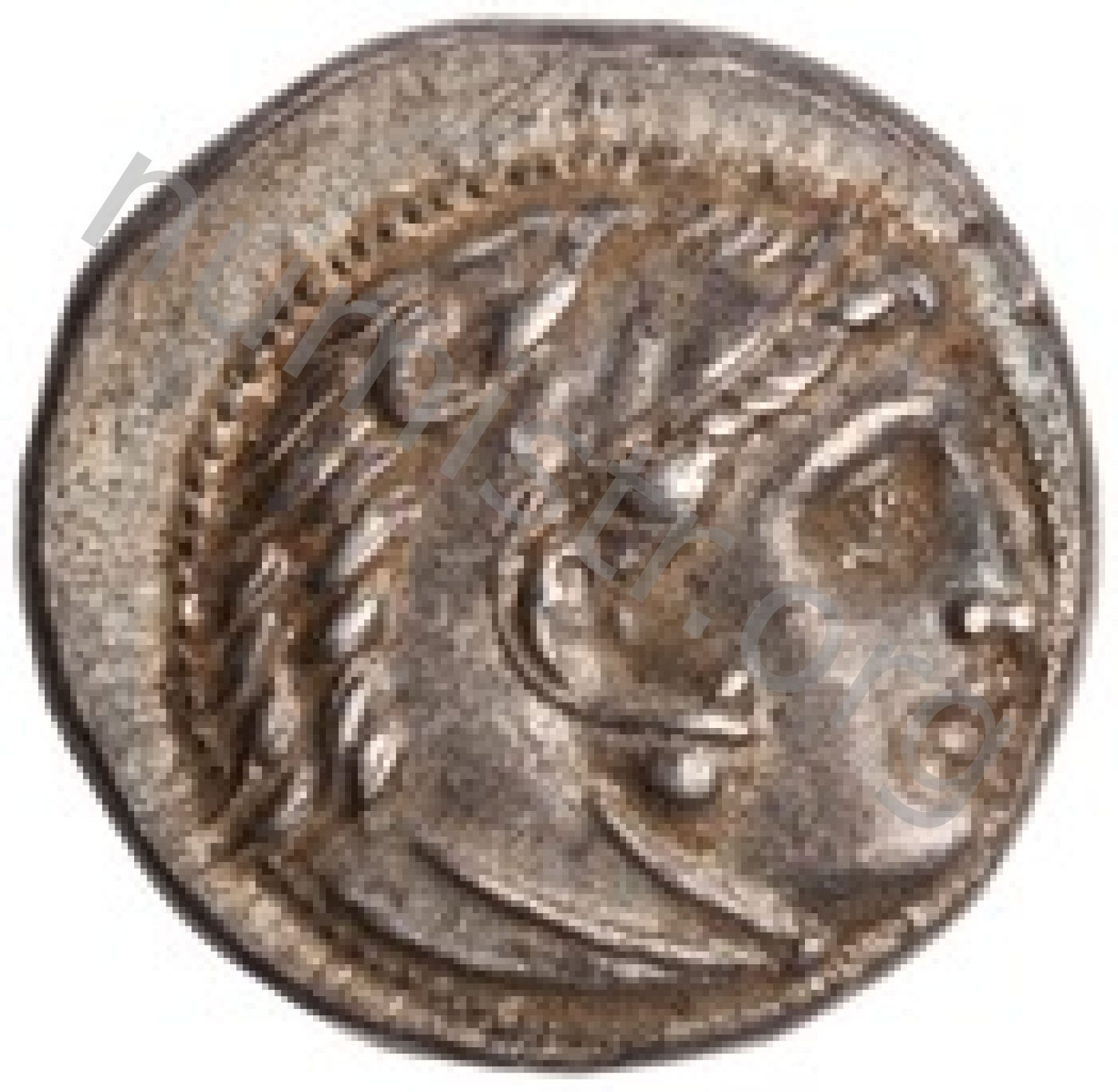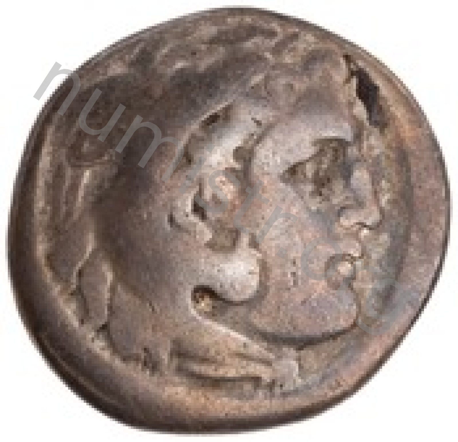Head of beardless Heracles right wearing lion skin headdress -[en]