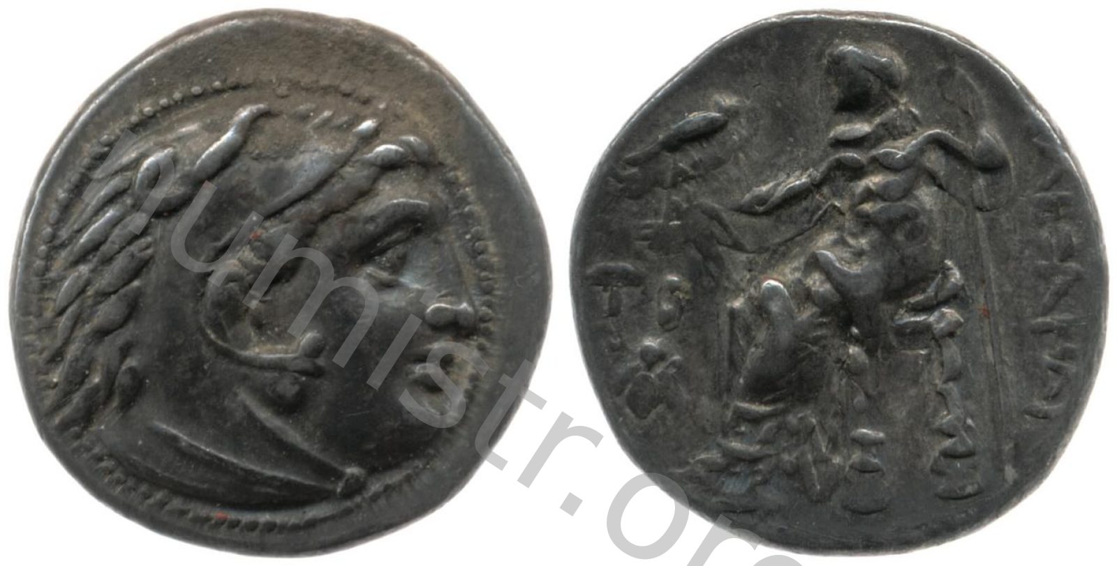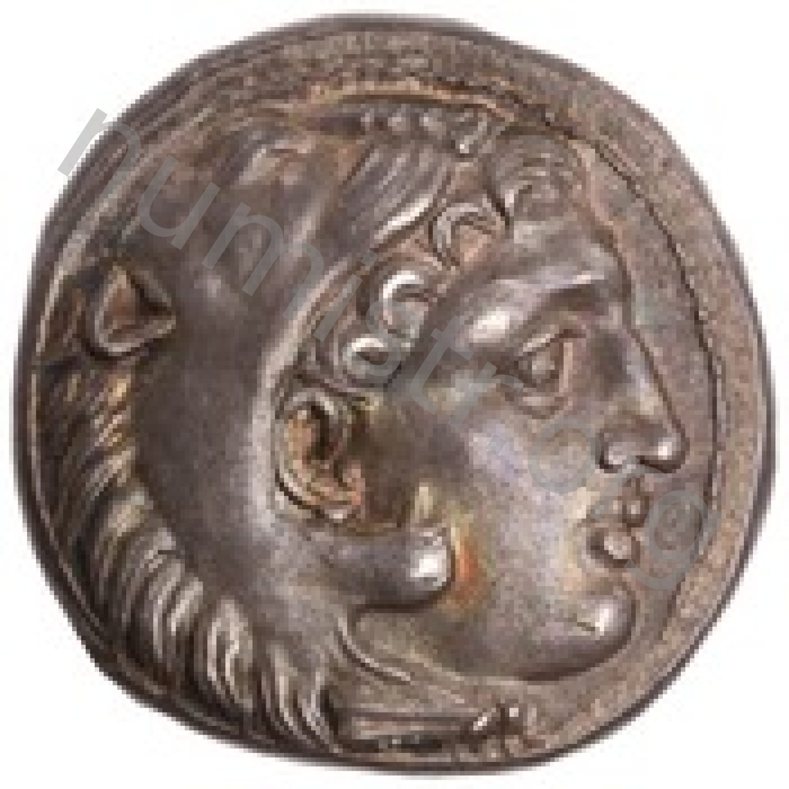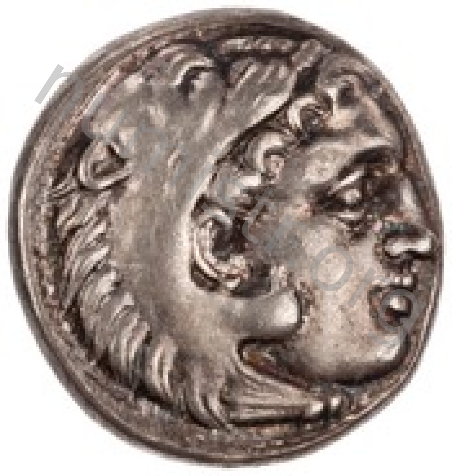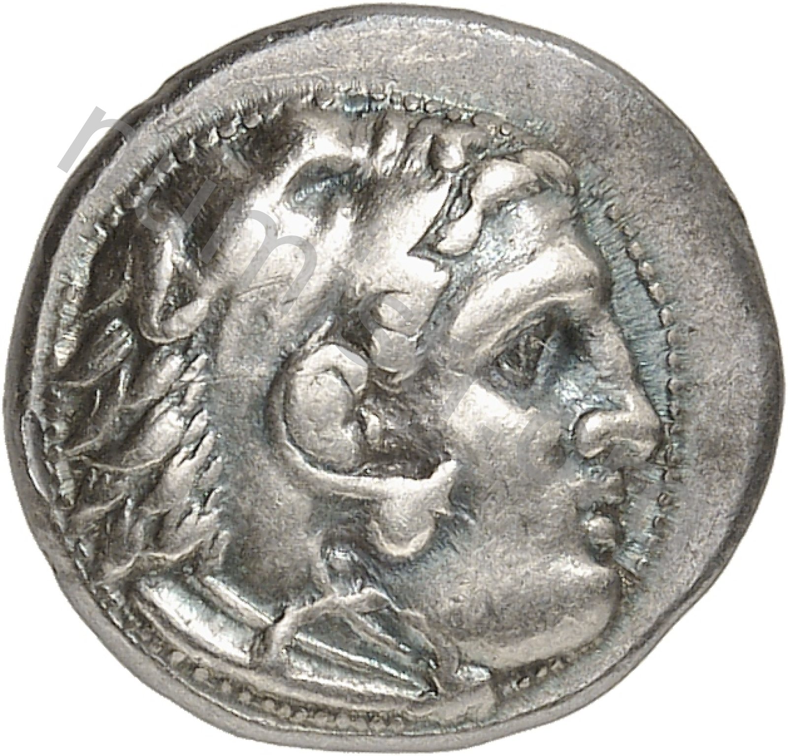 Head of beardless Heracles right wearing lion skin headdress -[en]