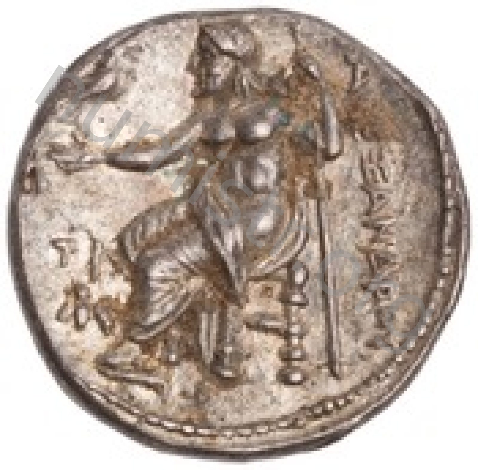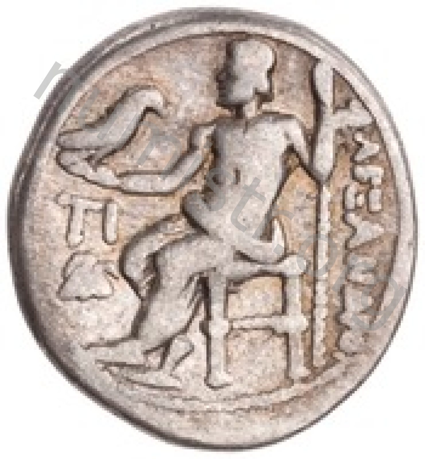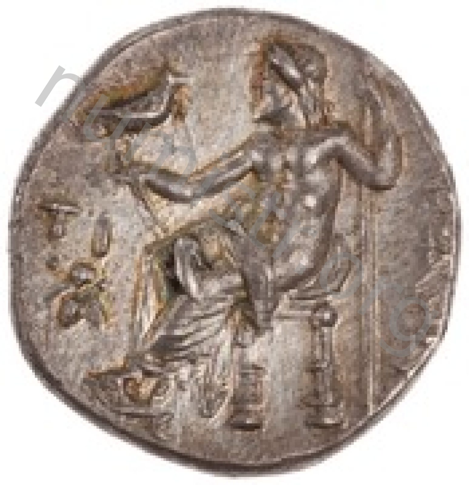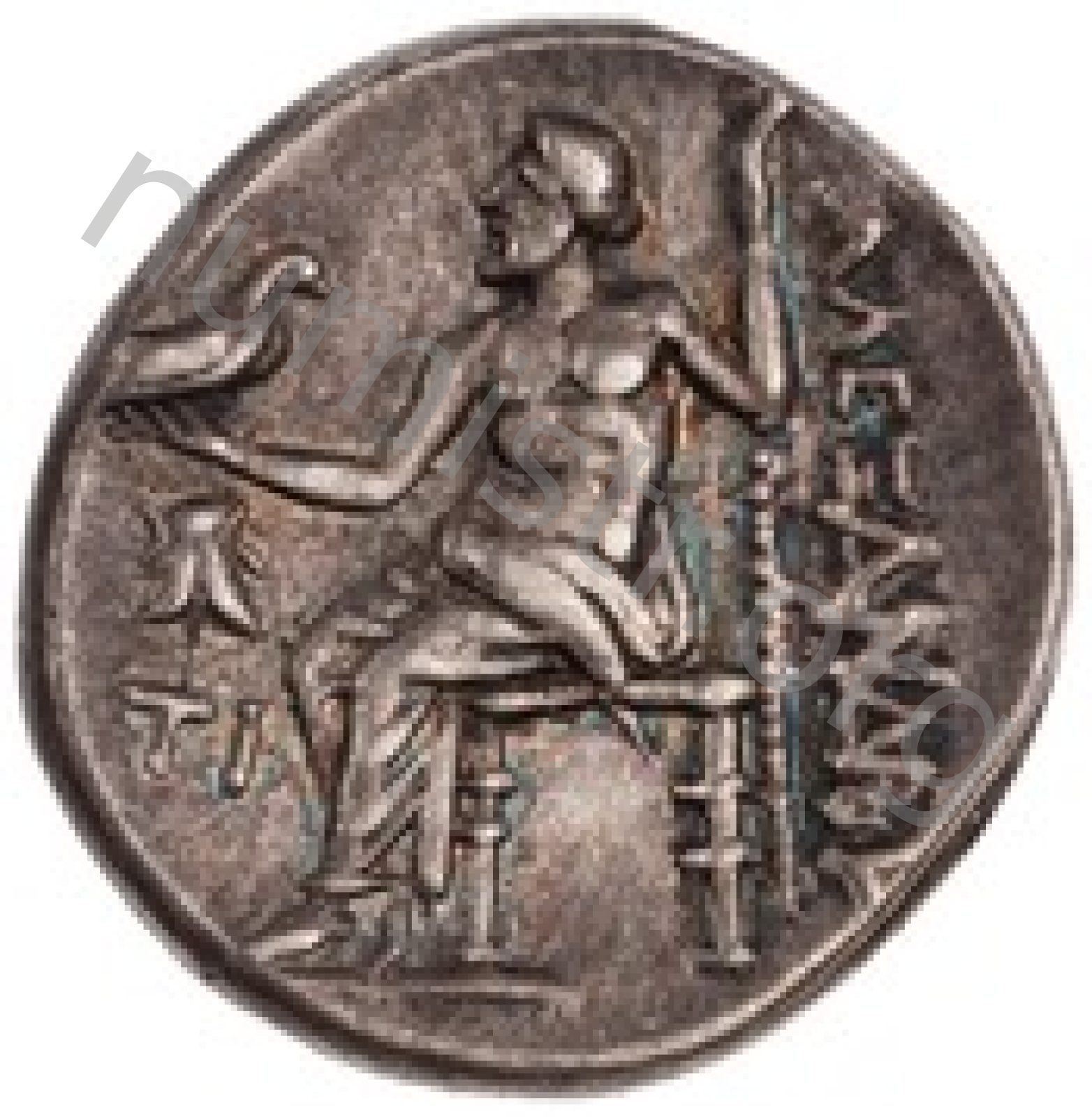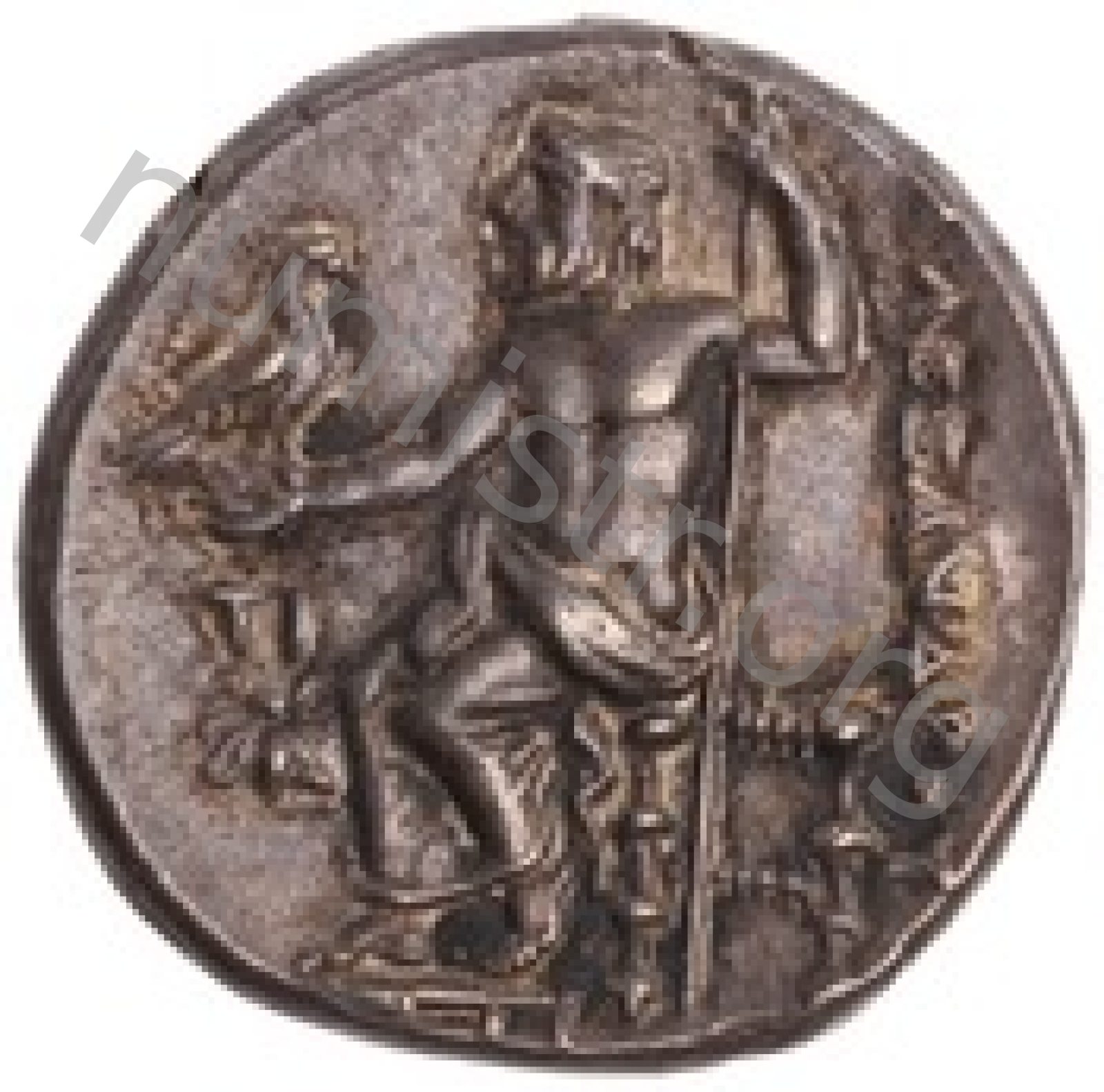 Zeus tabure-tahtta oturuyor sol elinde kartal sağ elinde asa var.