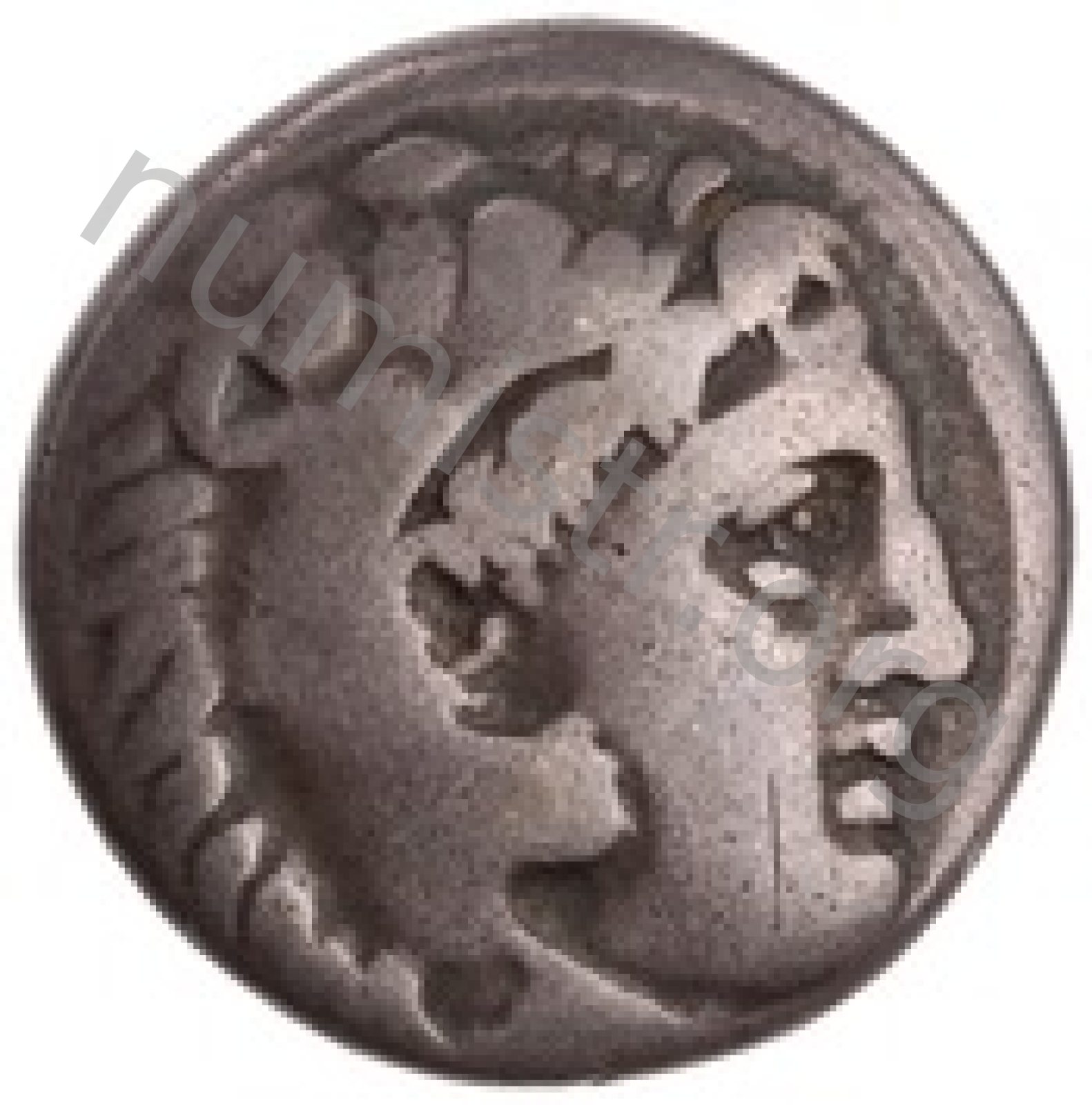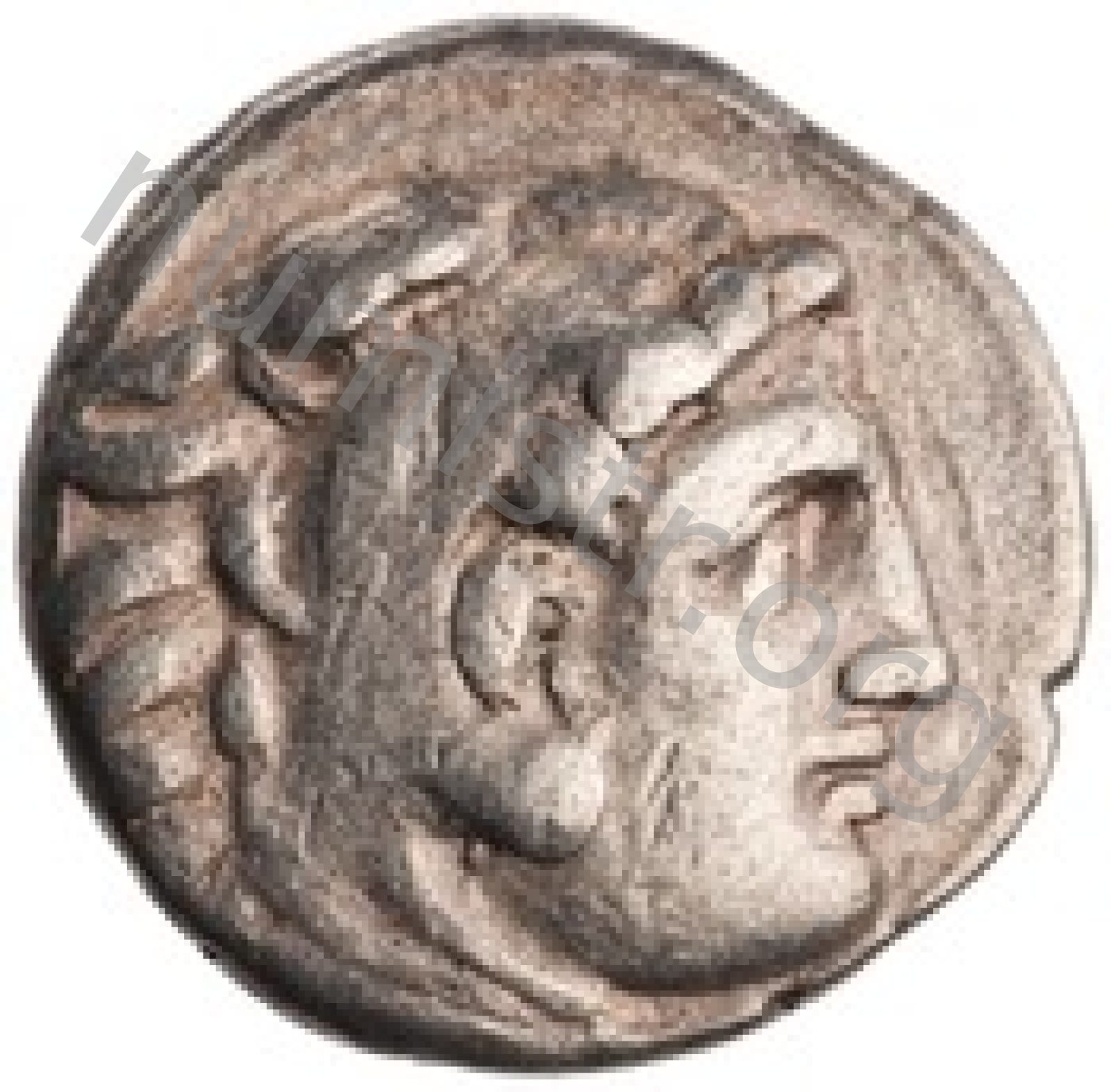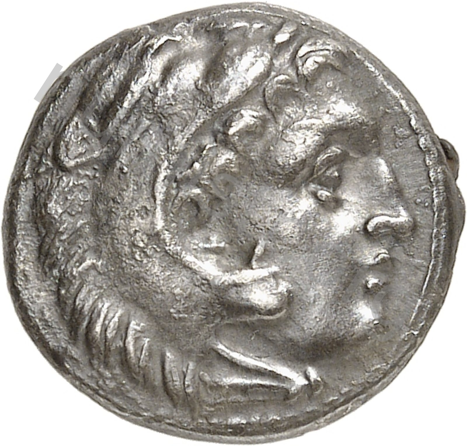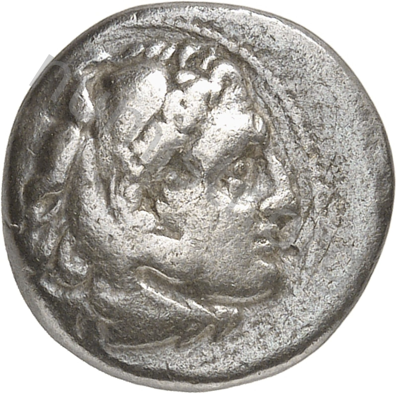 Head of beardless Heracles right wearing lion skin headdress -[en]