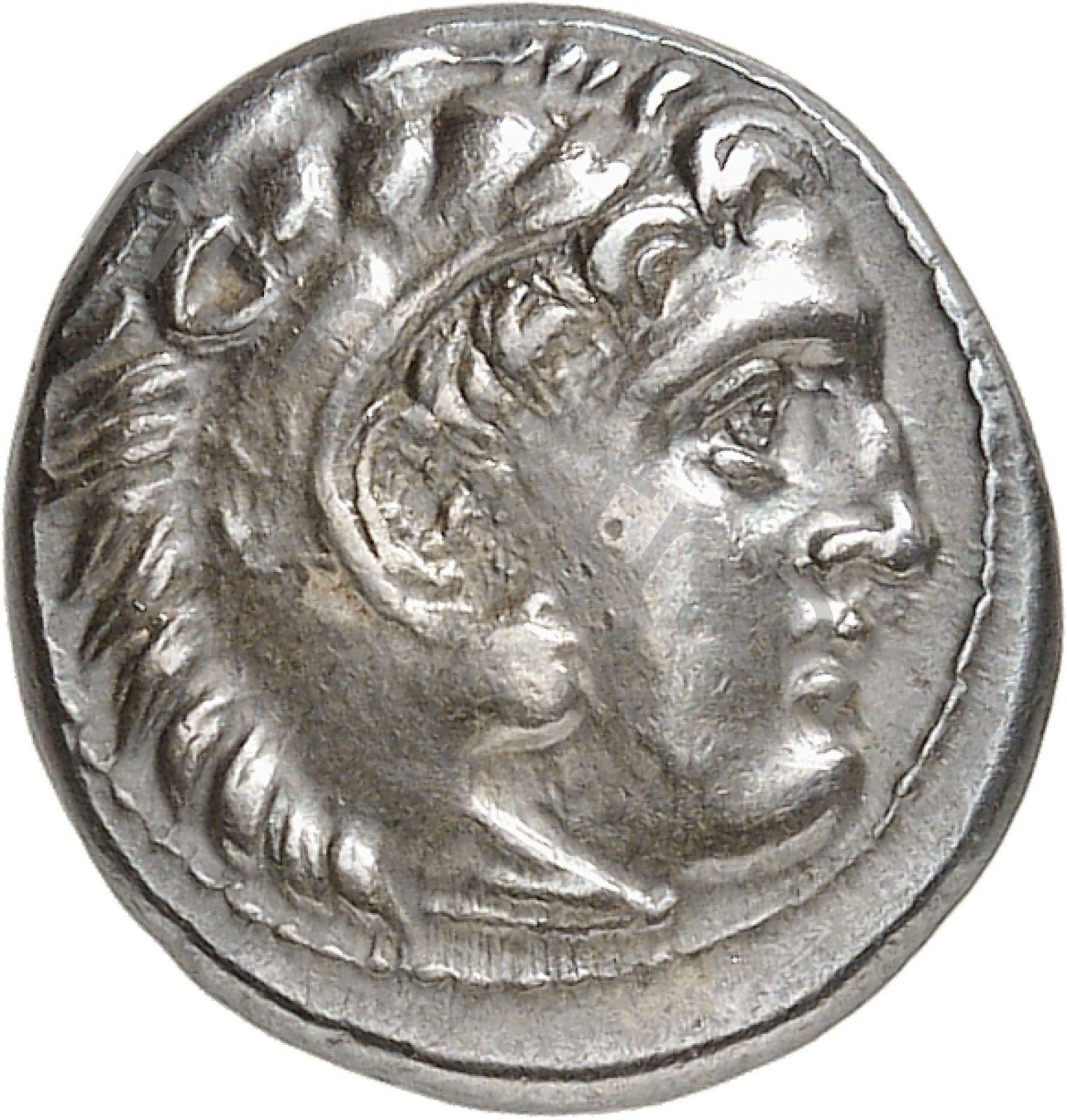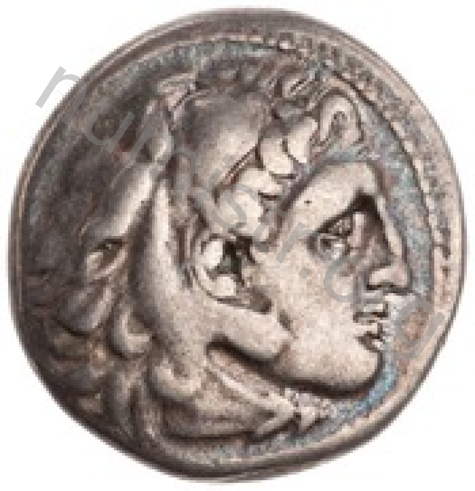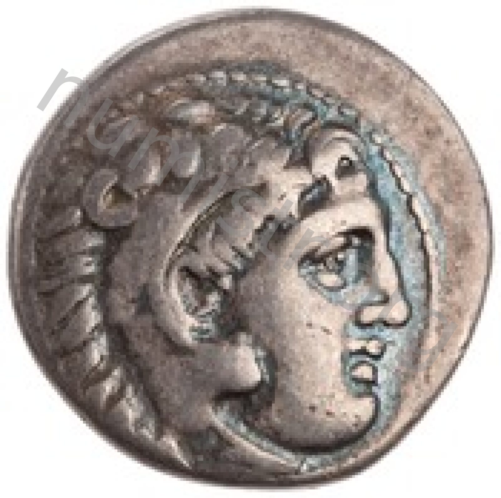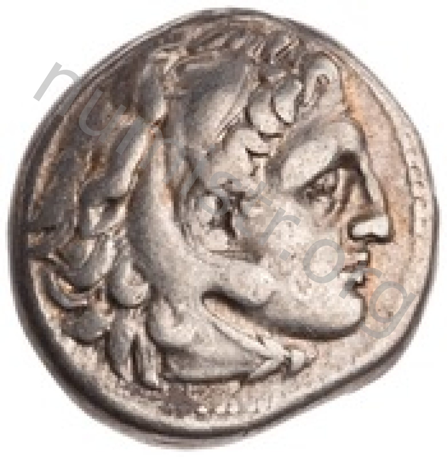Head of beardless Heracles right wearing lion skin headdress -[en]