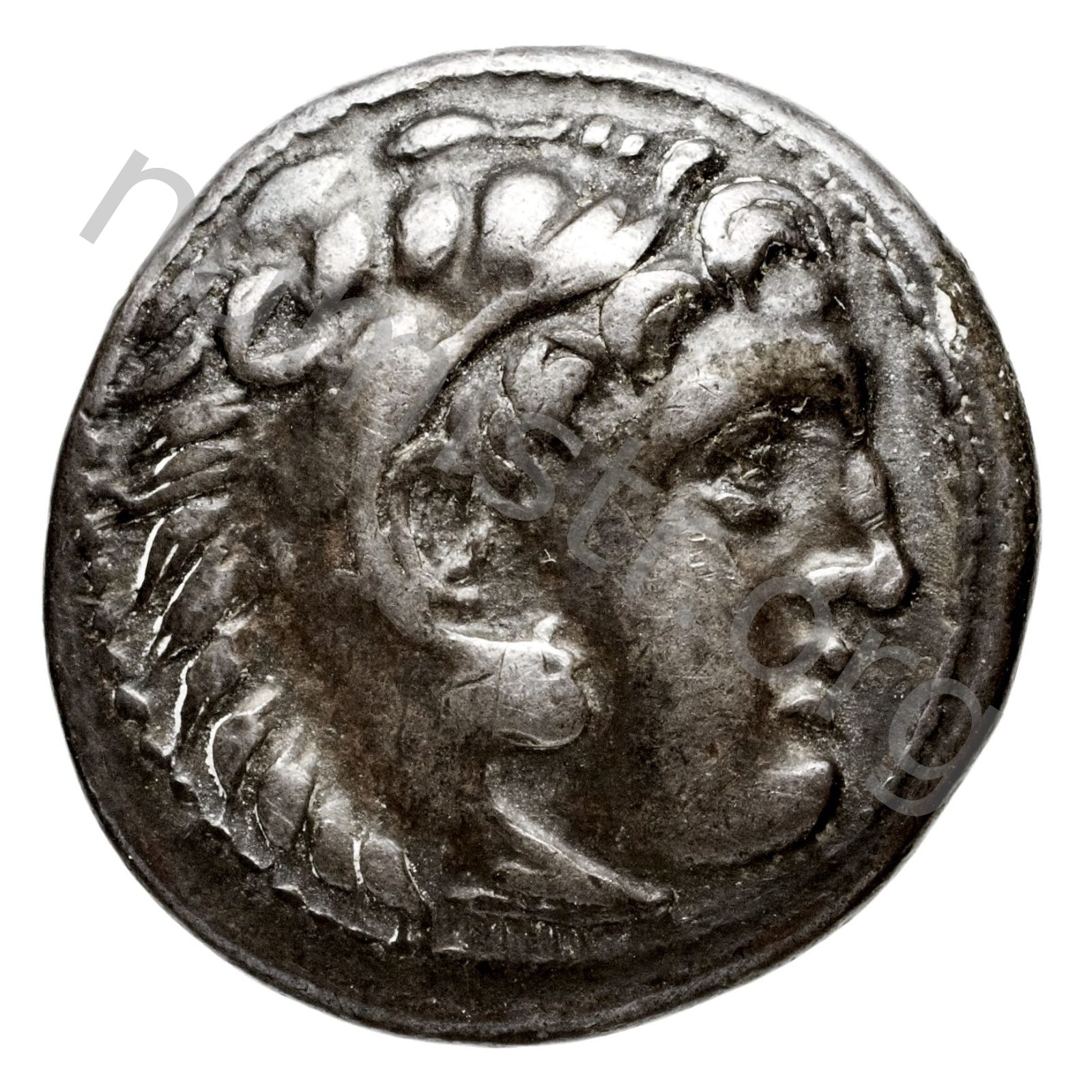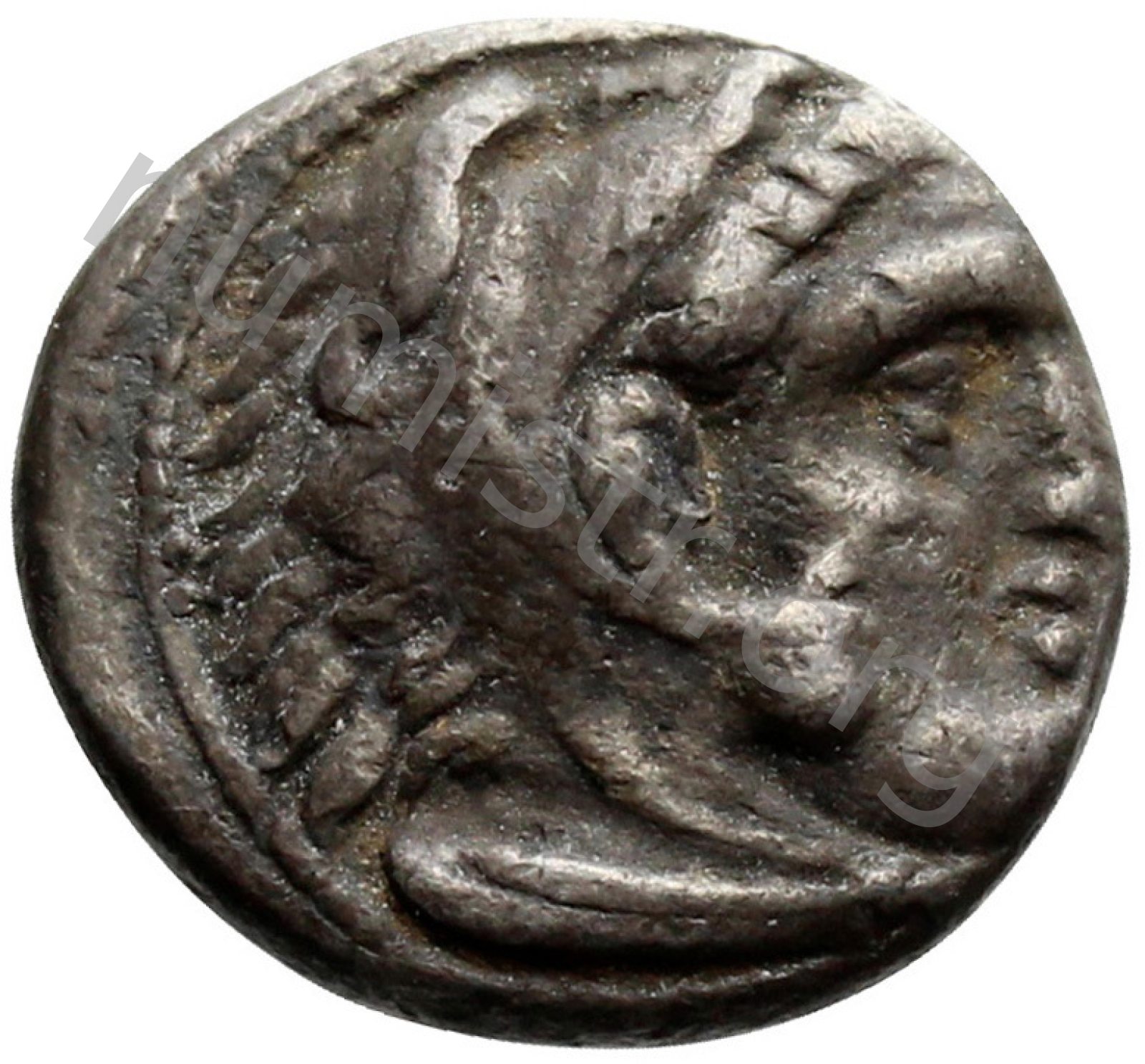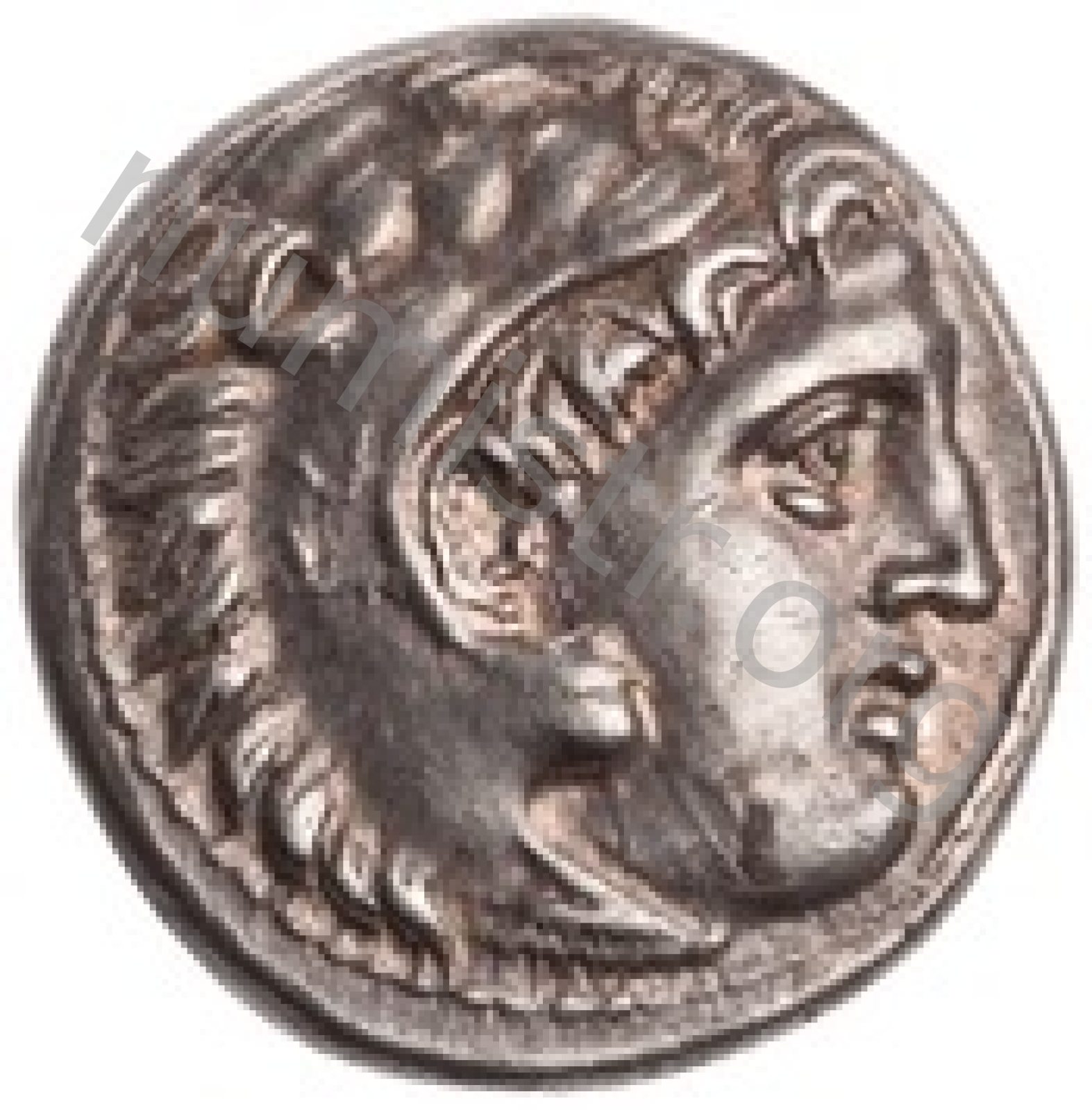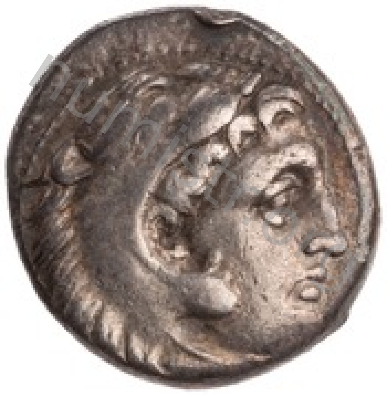 Head of beardless Heracles right wearing lion skin headdress -[en]