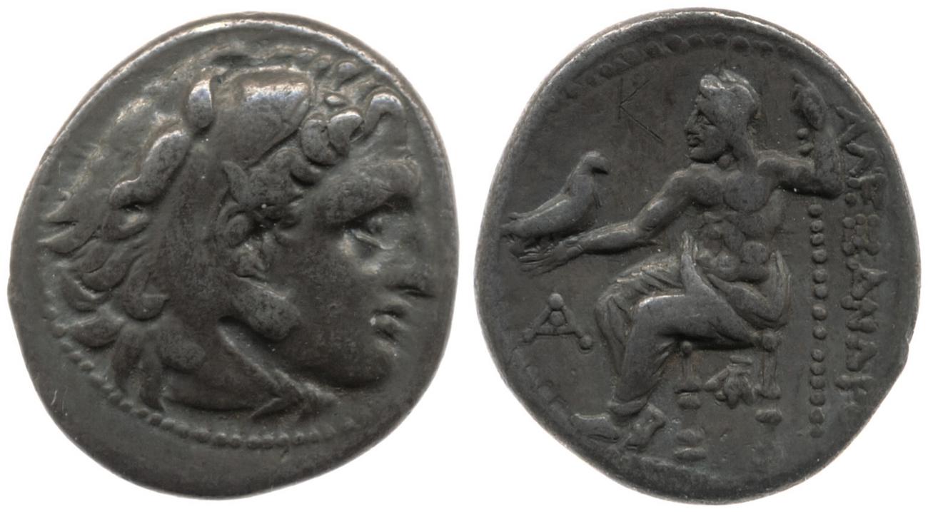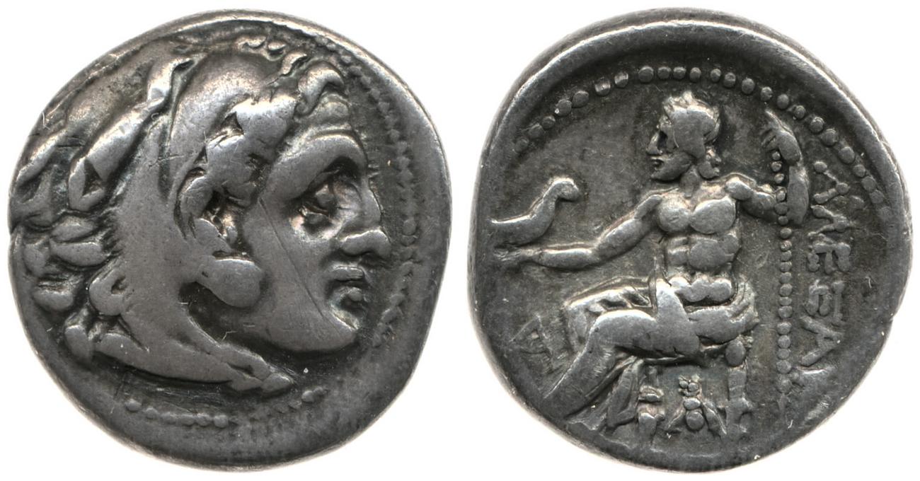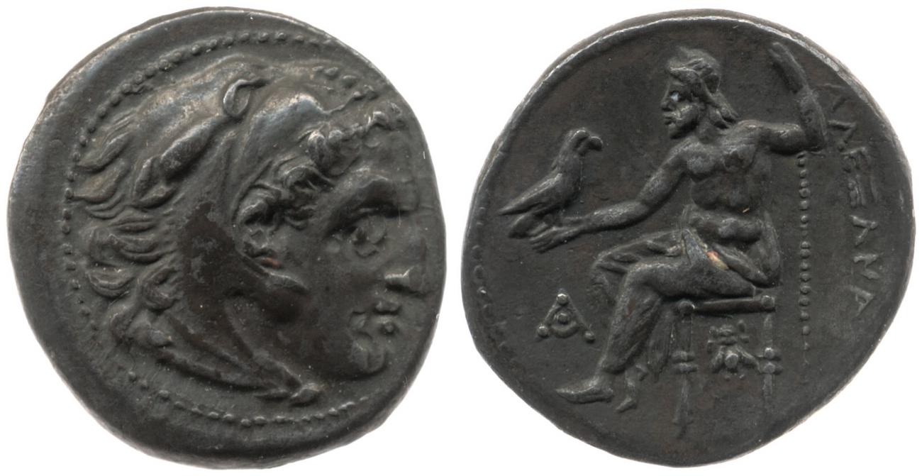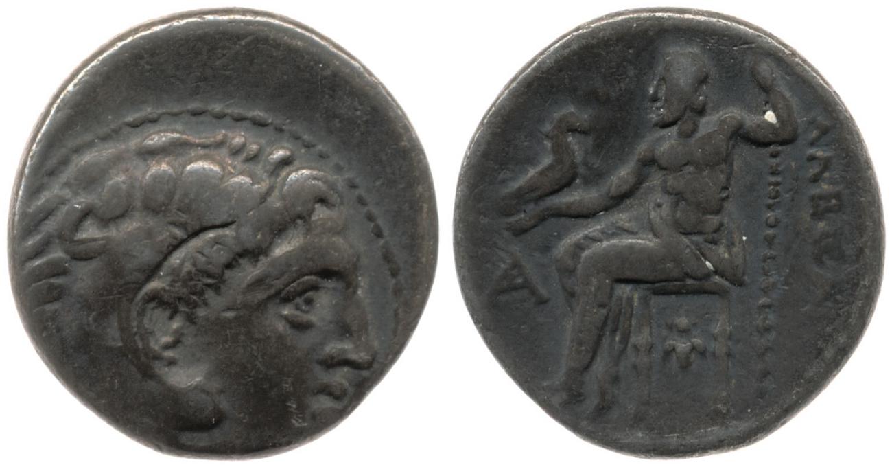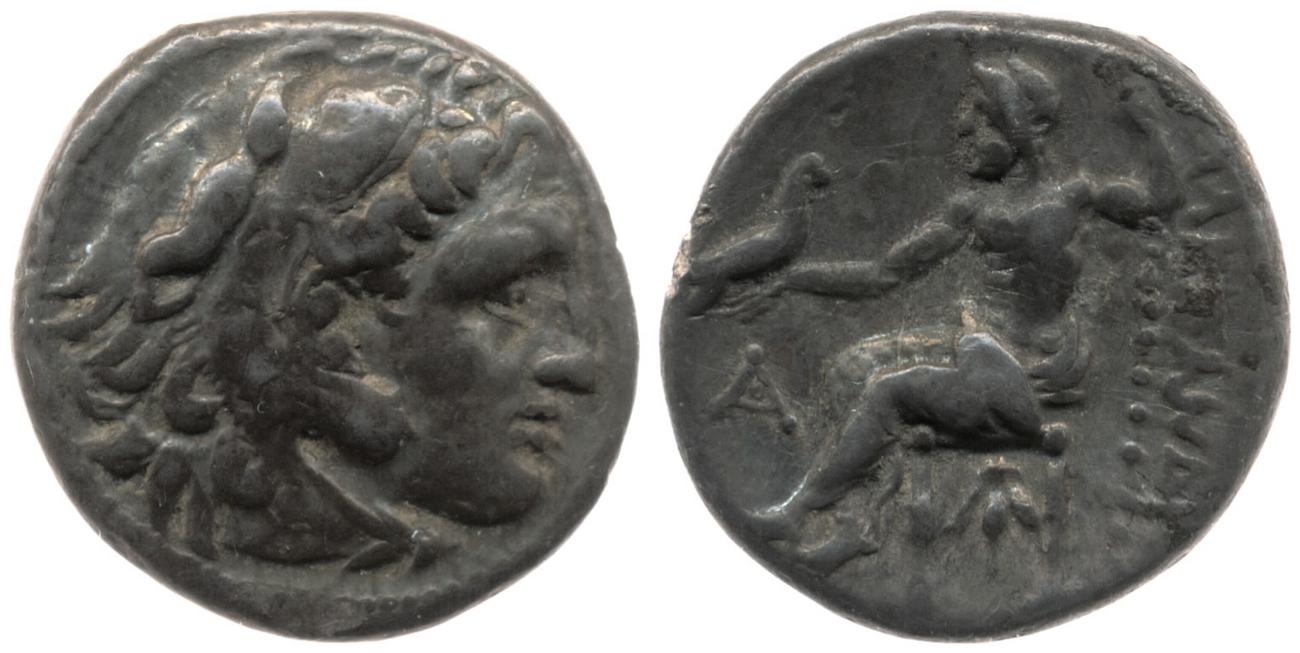 Head of beardless Heracles right wearing lion skin headdress -[en]