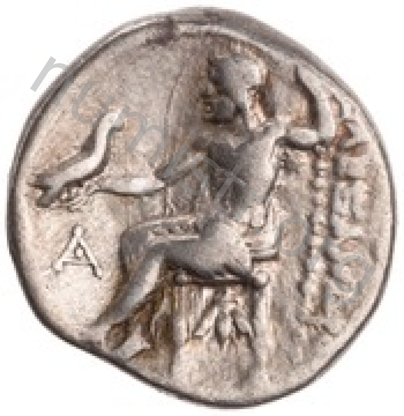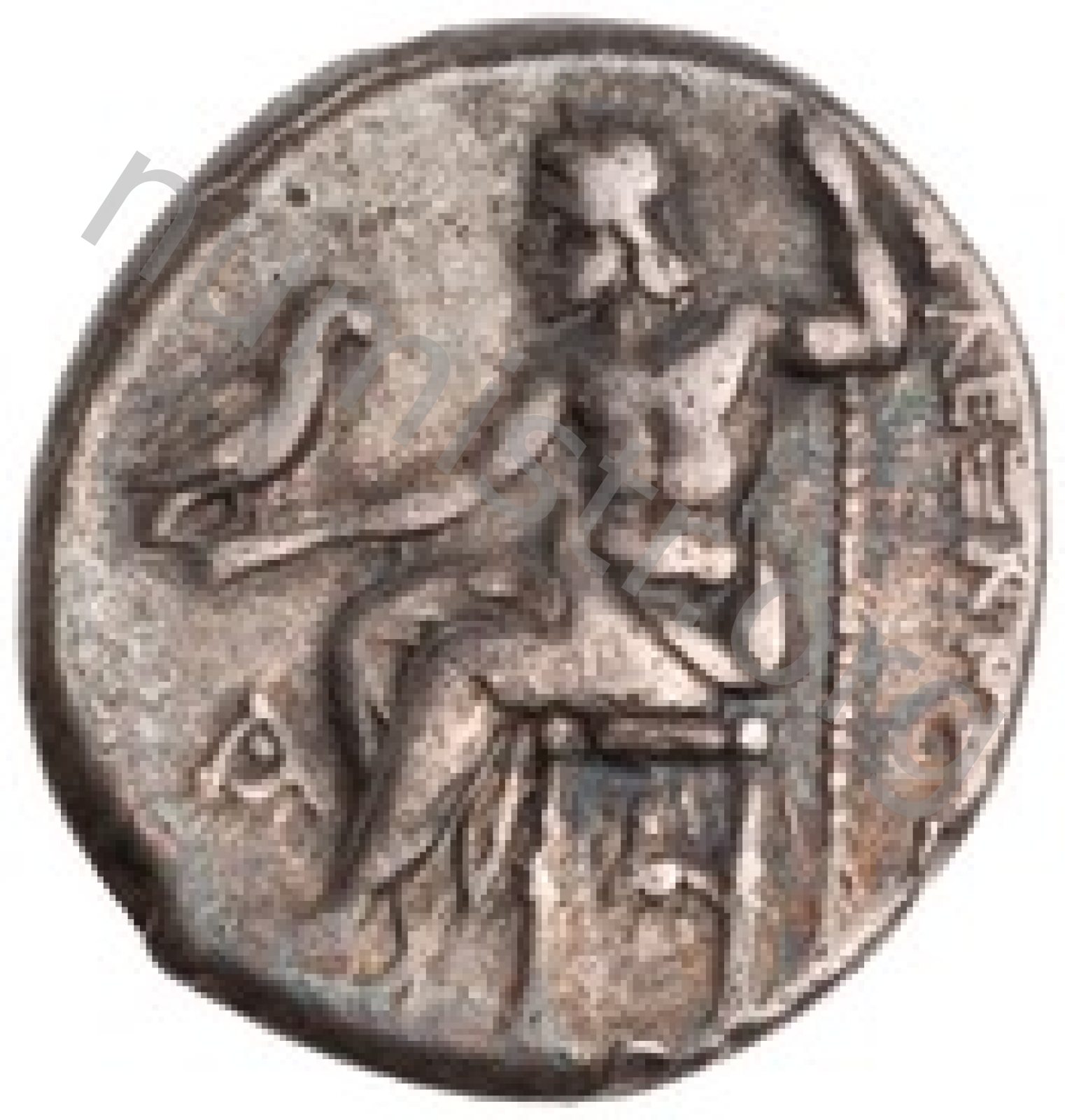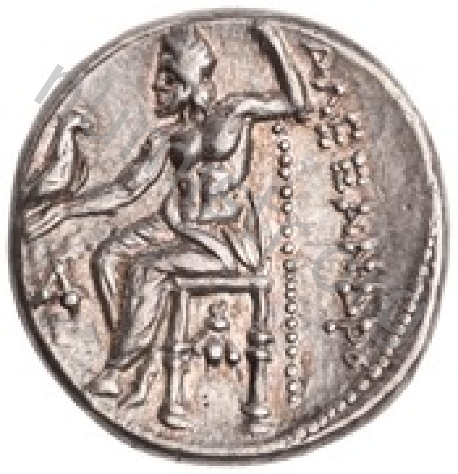 Zeus tabure-tahtta oturuyor sol elinde kartal sağ elinde asa var.