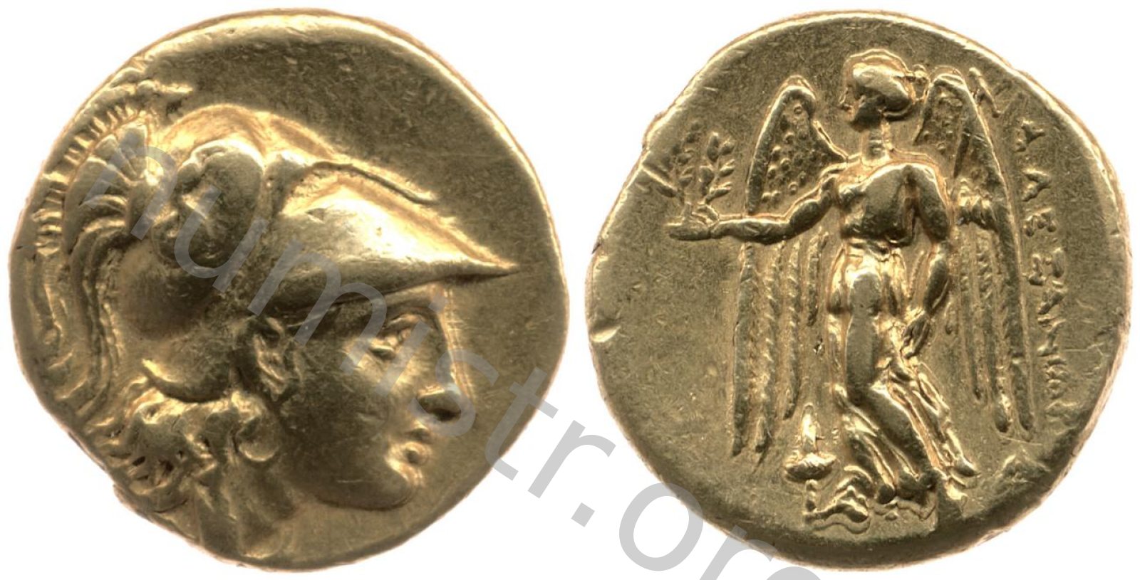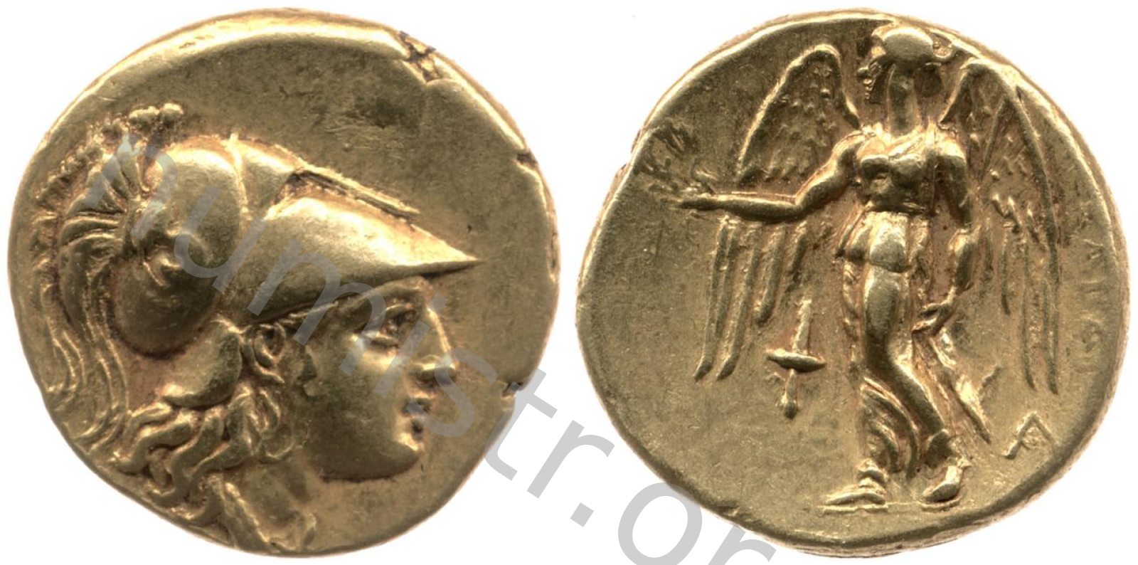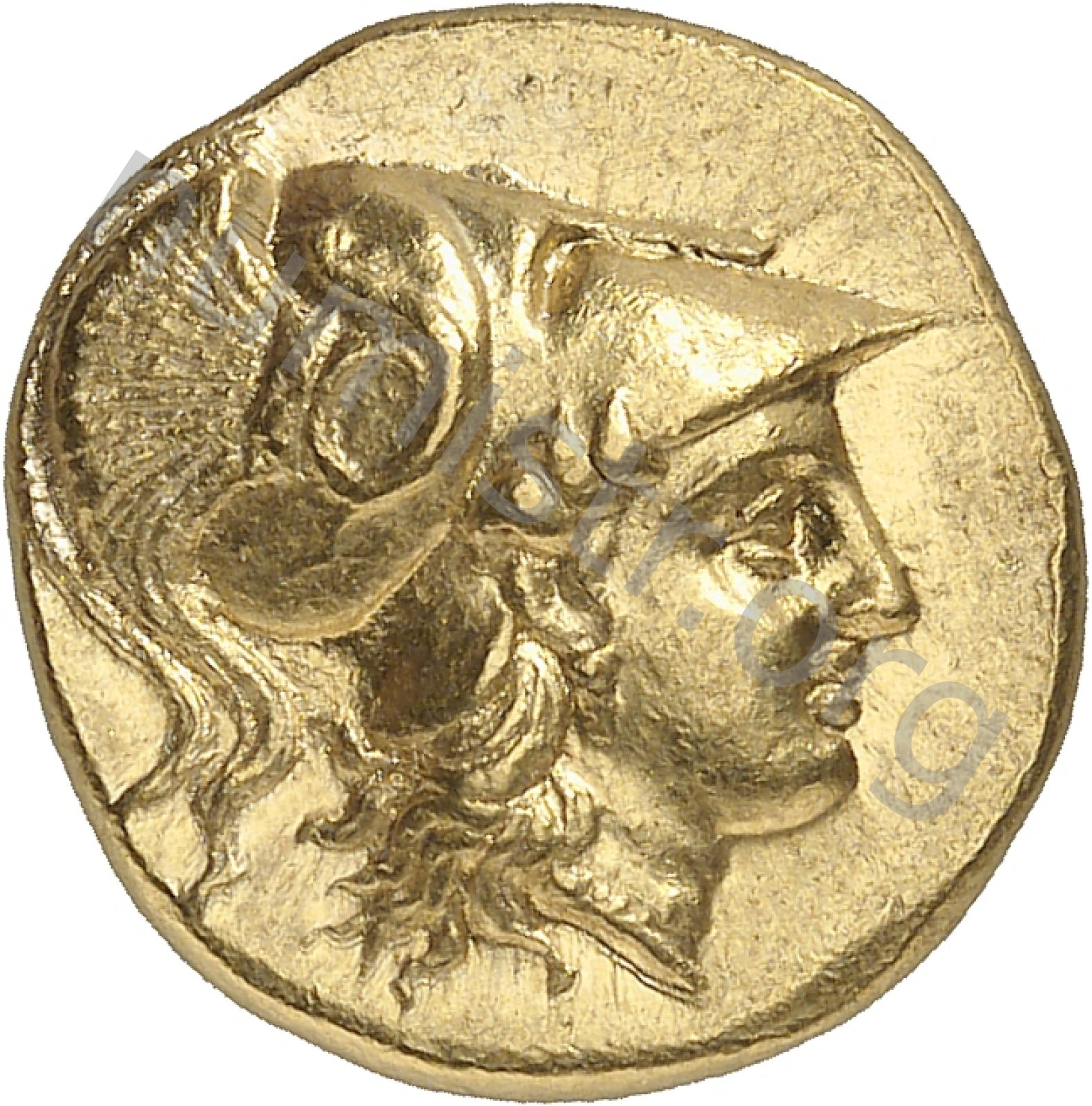 Head of Athena right wearing Corinthian helmet with crest -[en]