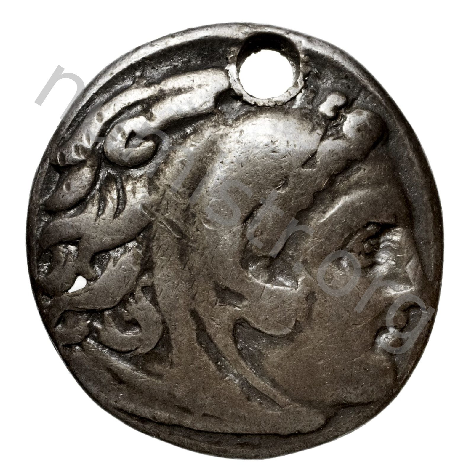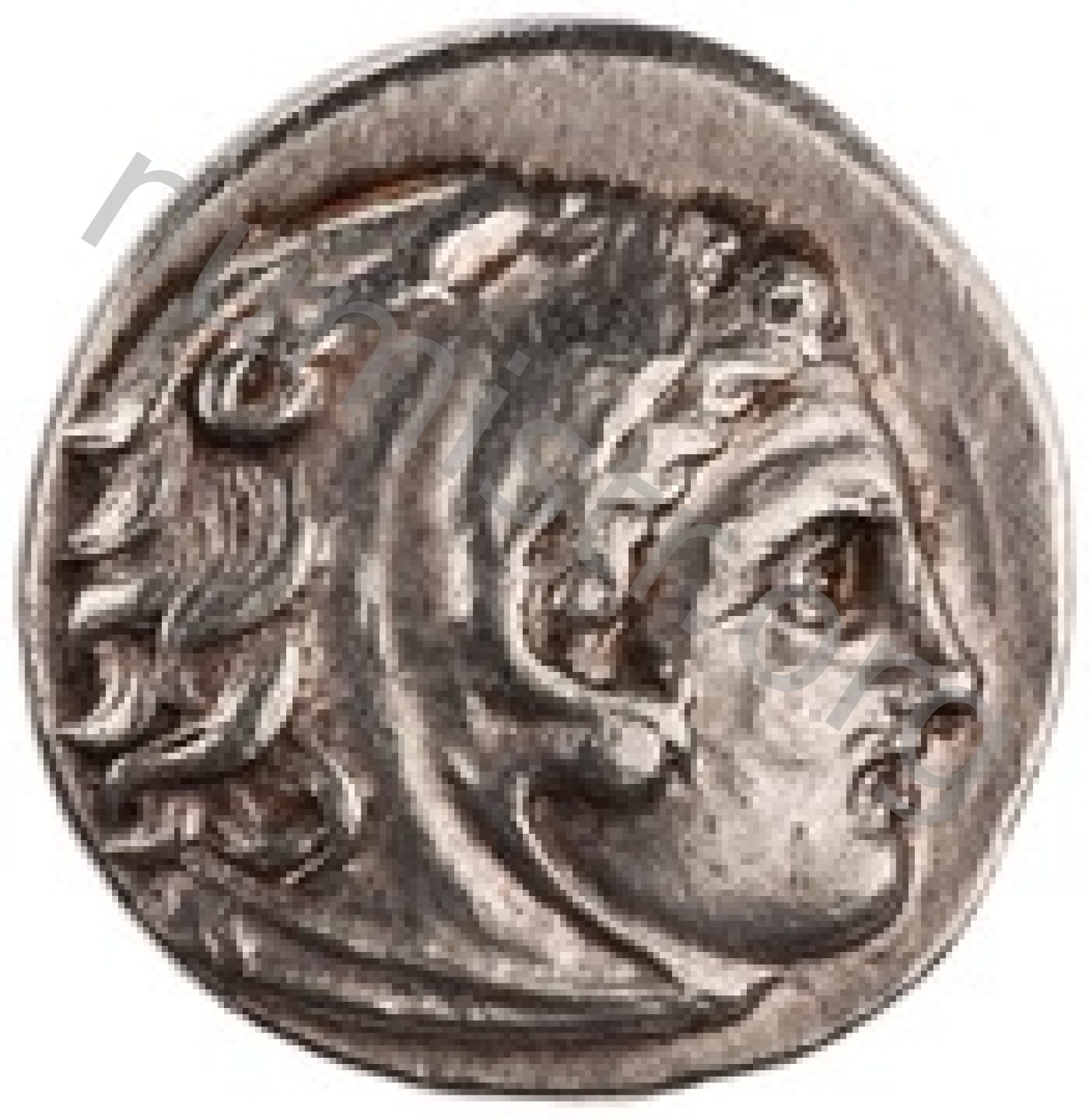 Head of beardless Heracles right wearing lion skin headdress -[en]