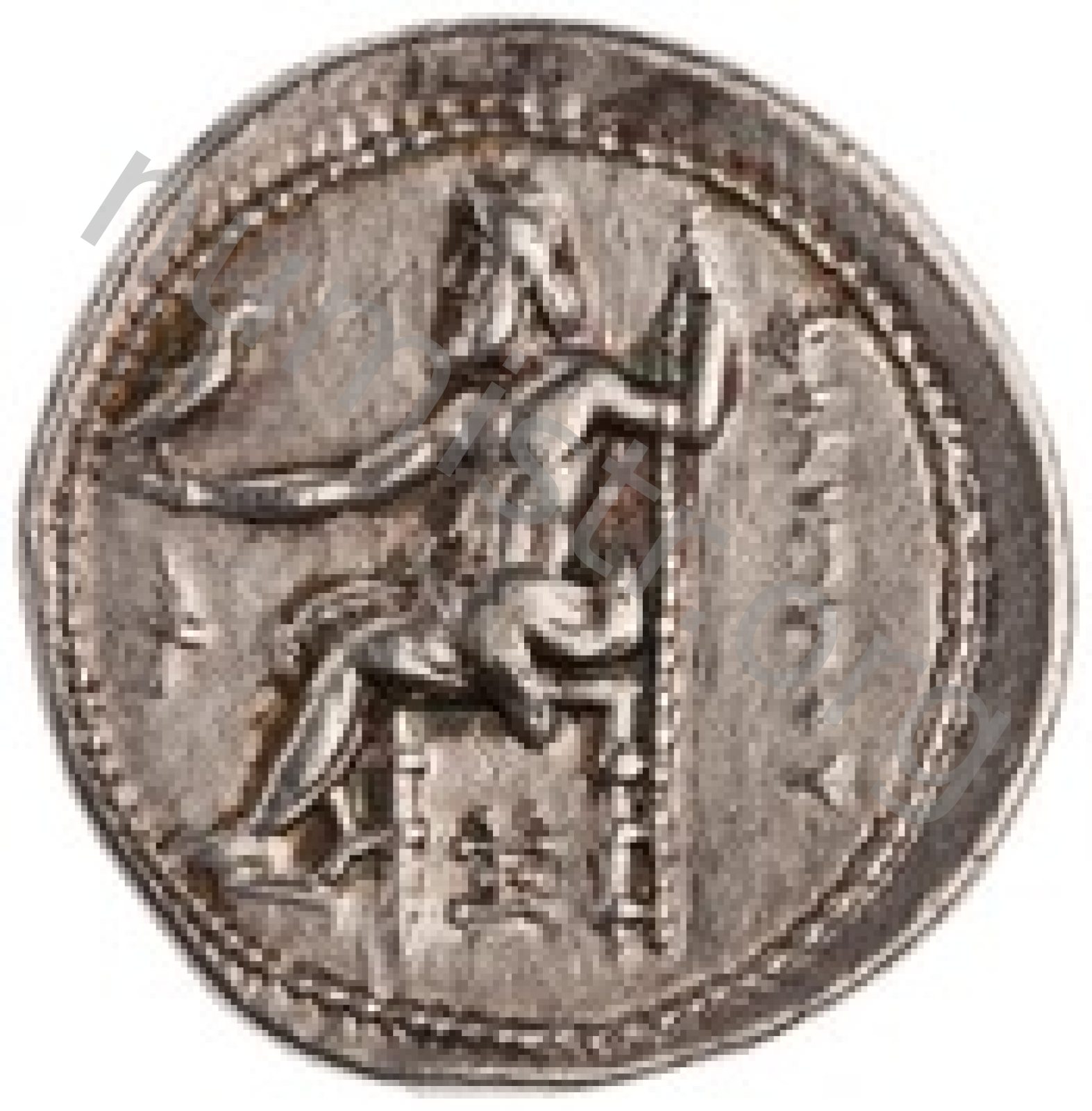 Zeus tabure-tahtta oturuyor sol elinde kartal sağ elinde asa var.