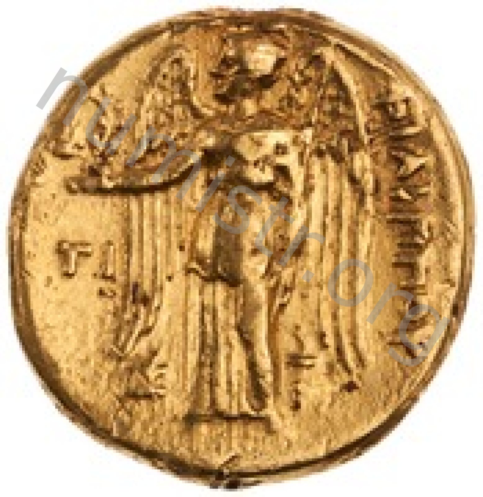 Nike standing left holding wreath in right hand and stylis in her left hand -[en]