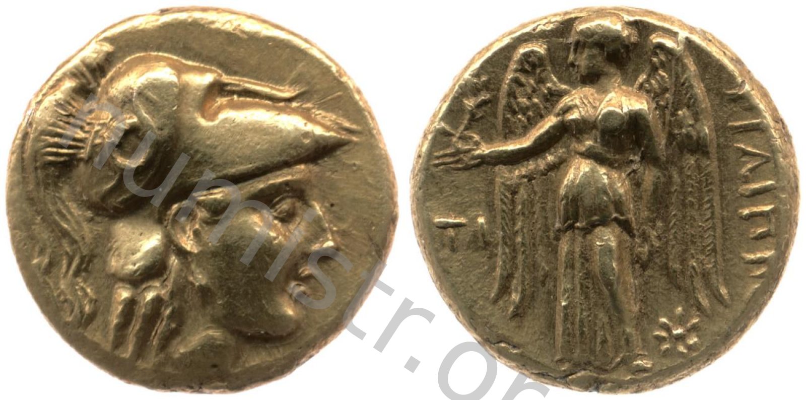 Head of Athena right wearing Corinthian helmet with crest -[en]
