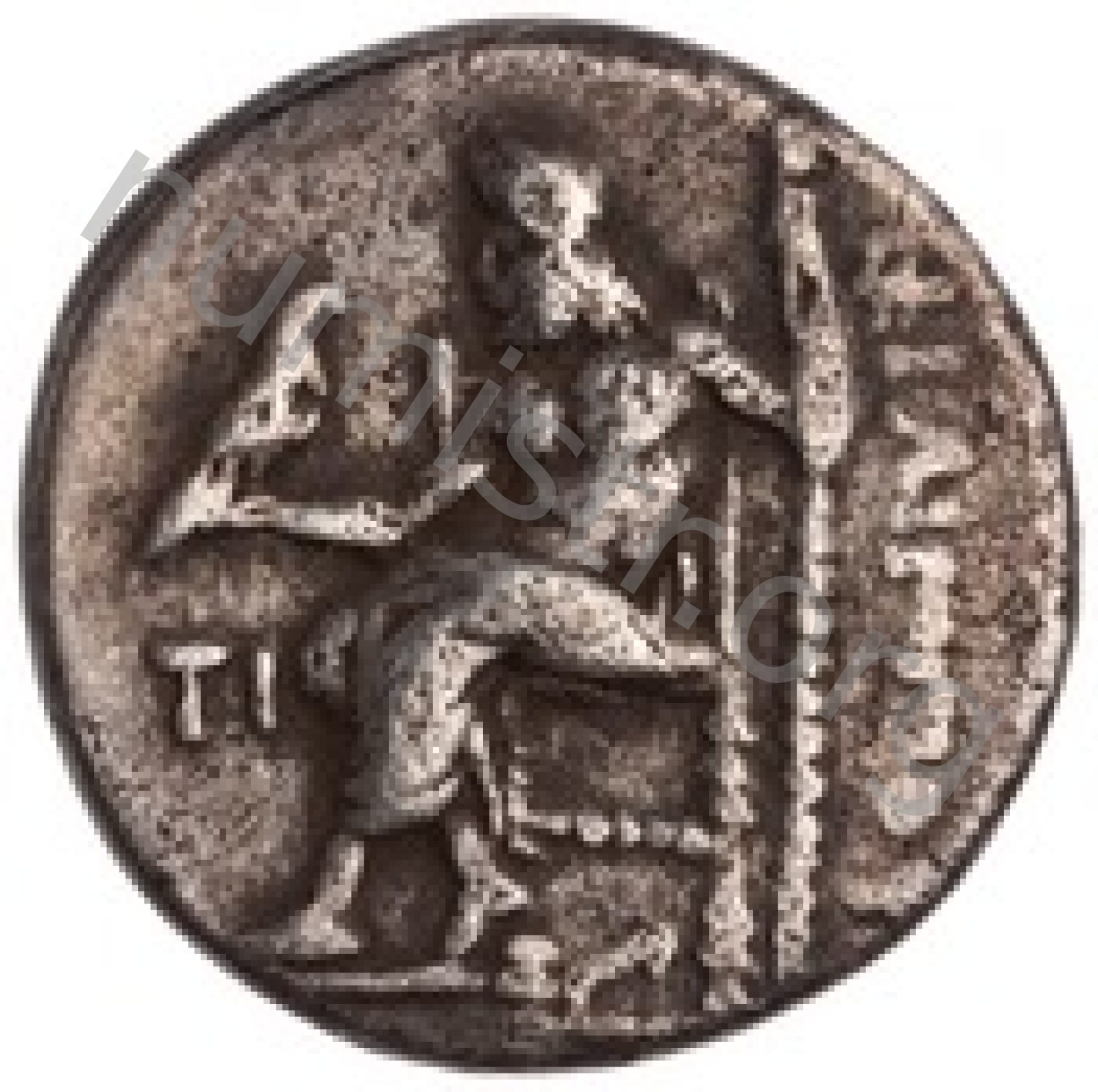 Zeus seated on stool-throne left eagle on outstretched right hand sceptre in left hand -[en]