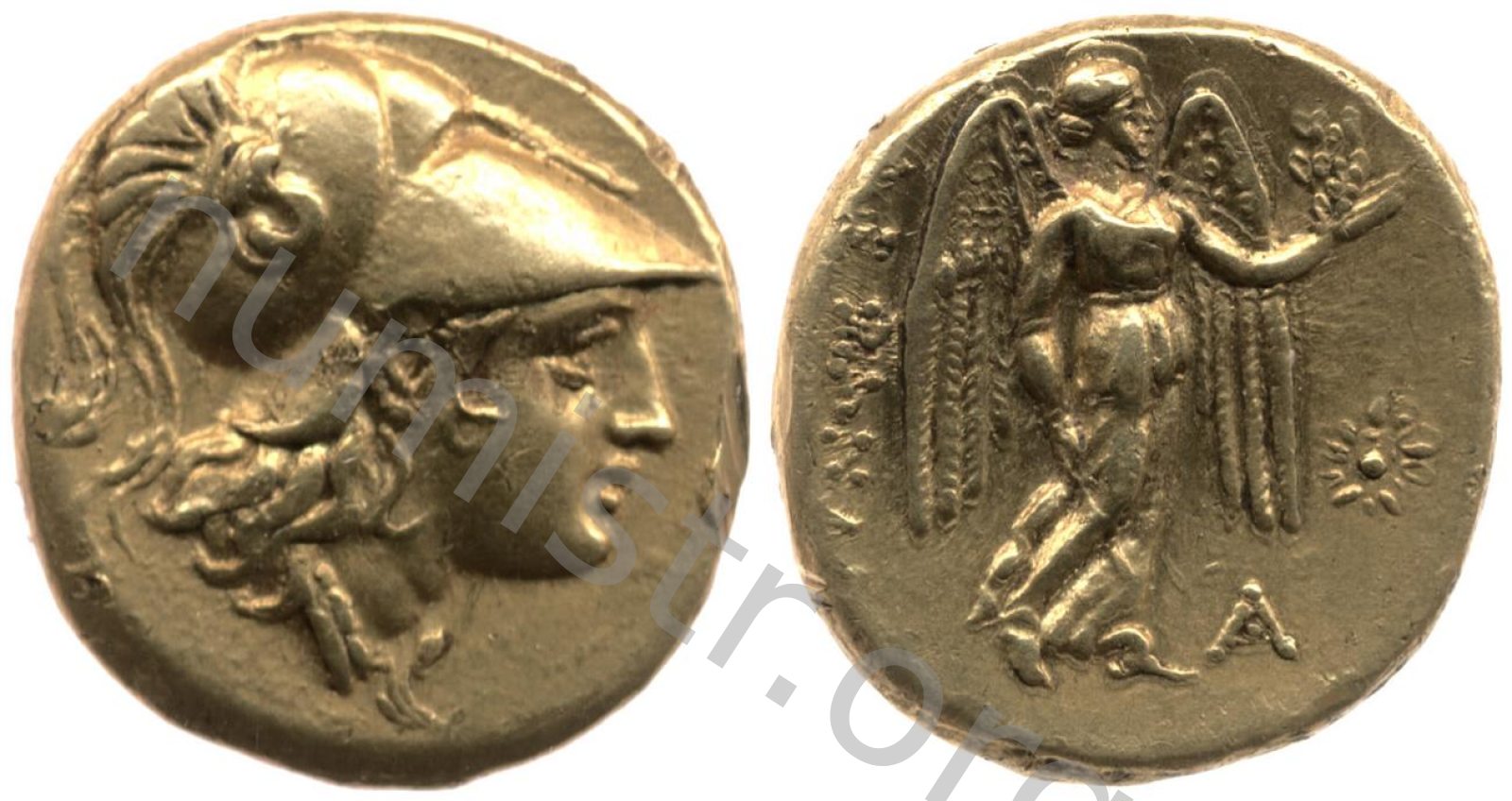 Head of Athena right wearing Corinthian helmet with crest -[en]