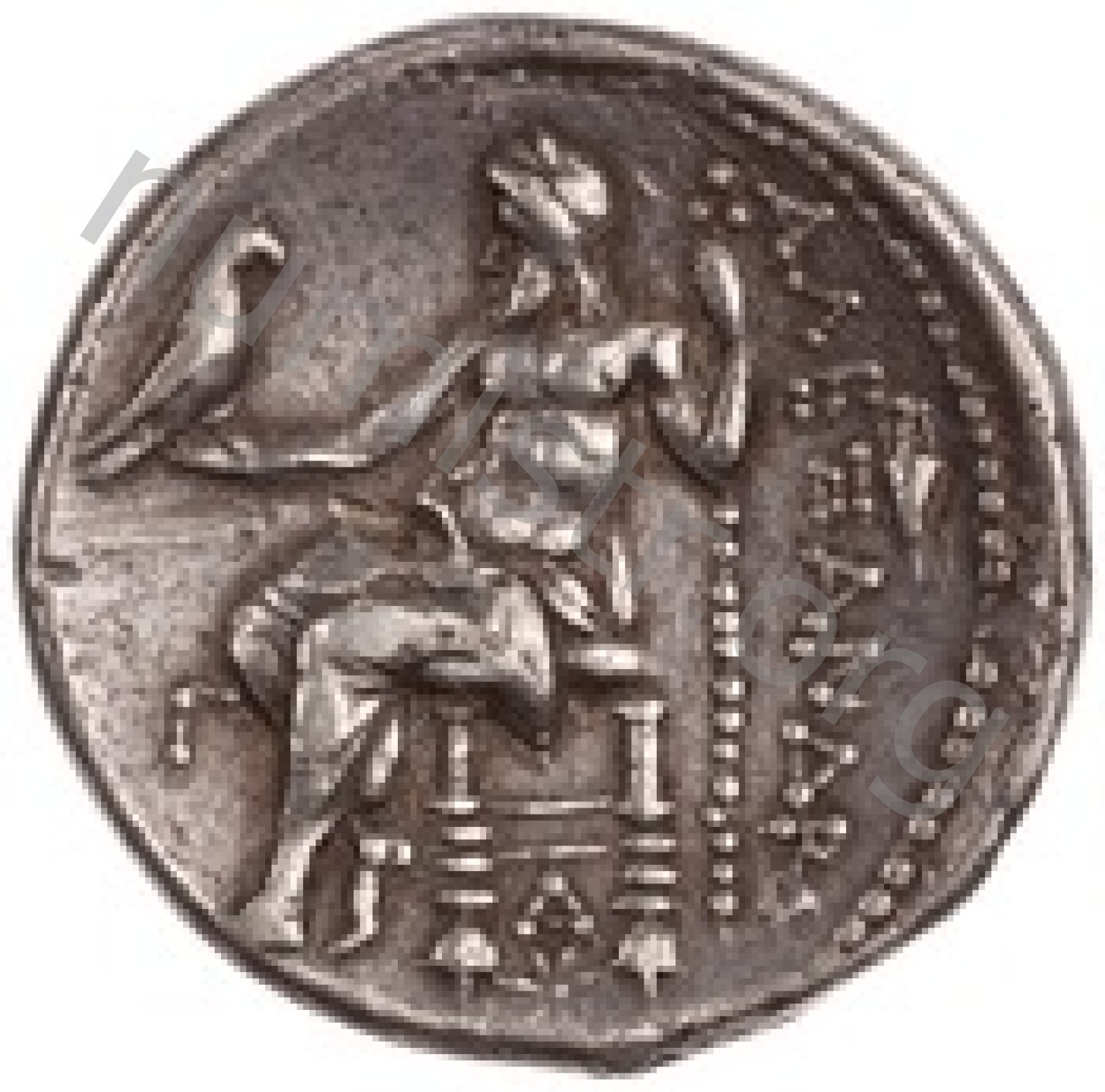 Zeus seated on stool-throne left eagle on outstretched right hand sceptre in left hand -[en]