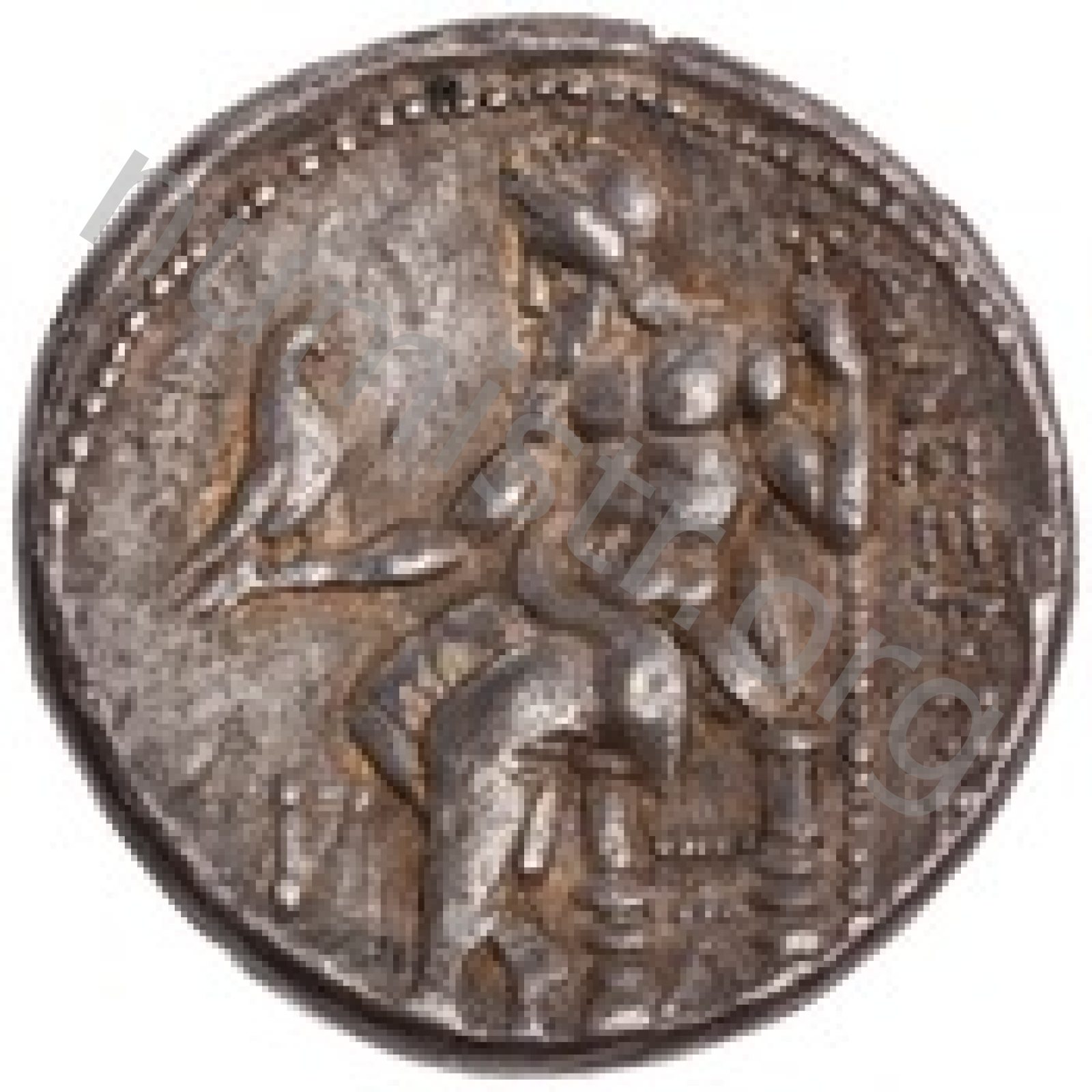 Zeus tabure-tahtta oturuyor sol elinde kartal sağ elinde asa var